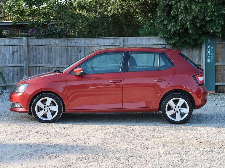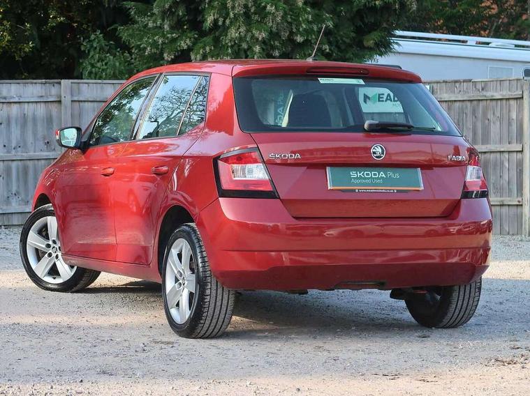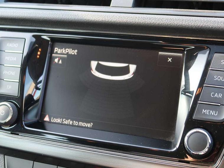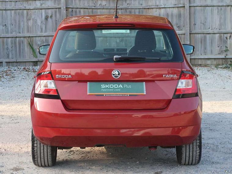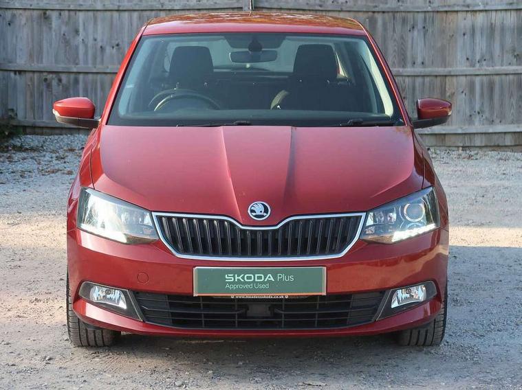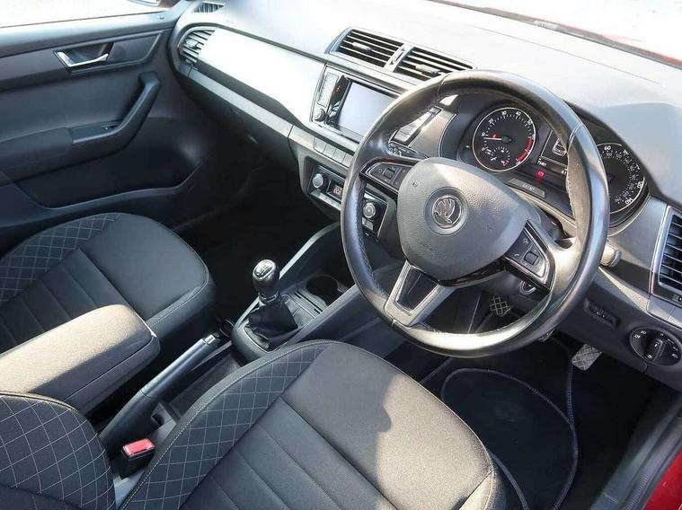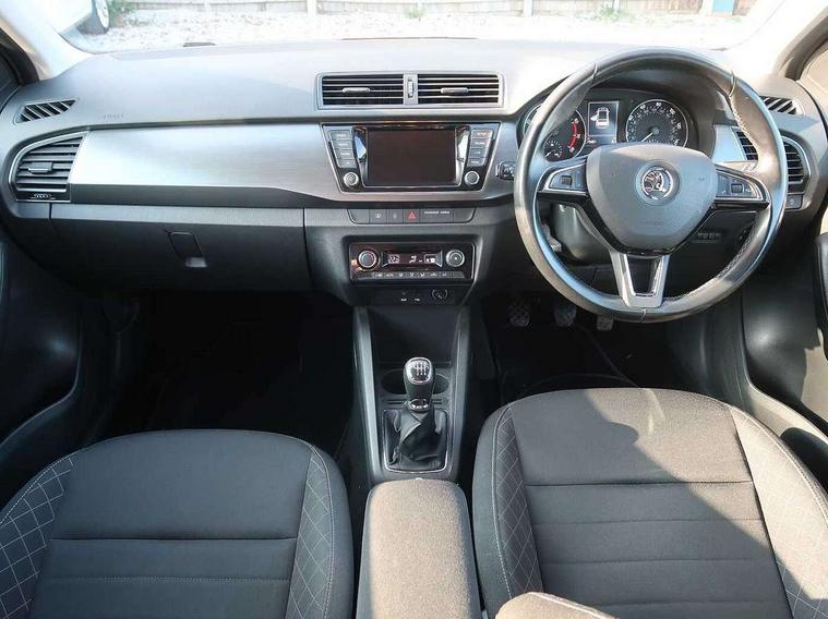 Bluetooth system, Cruise control, Exterior temperature gauge, Front assistant collision mitigation, Maxi dot trip computer, PAS, Service interval indicator, Speed limiter, Auxiliary socket for external MP3 player, Bolero radio with telephone control, Mirror Link, USB and SD card, DAB Digital radio, Body colour bumpers, Body colour door handles, Chrome grille surround, Electric front windows, Electrically adjustable and heated door mirrors, Heated rear window, Height adjustable headlamps, Intermittent rear wash/wipe, LED daytime running lights, Tinted rear windows, Tinted windscreen, 1.5L bottle holder in front door panels, 2 height adjustable rear headrests, 60/40 split folding rear seat, Boot stowage box, Cargo area storage tray, Climate control air conditioning, Cloth upholstery, Driver + passenger vanity mirrors, Folding grab handles, Front centre armrest, Front reading lights, Front/rear floor mats, Height adjustable driver's seat, Height adjustable front headrests, Height adjustable passenger seat, Height/reach adjust steering wheel, Interior light with delay, Leather gearshift, Leather handbrake, Lower glovebox cover, Luggage load hooks, Parcel shelf, Pollen filter, Rear courtesy light, Rear storage trays, Storage compartment under front seats, Ticket holder, Two rear outer seat isofix location points, Arkamys surround sound pack - Fabia, Chrome Pack - Fabia, 3x3 point rear seatbelts, ABS, Curtain airbags, Driver and passenger airbags, Driver and passenger side airbags, EDS, ESC with ASR, Front seatbelt pretensioners, Hydraulic Brake Assist (HBA), Passenger airbag deactivate switch, Seatbelt warning, Tyre pressure monitor, Alarm with interior monitoring, Immobiliser, Locking wheel bolts, Remote central locking,