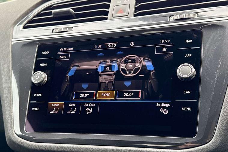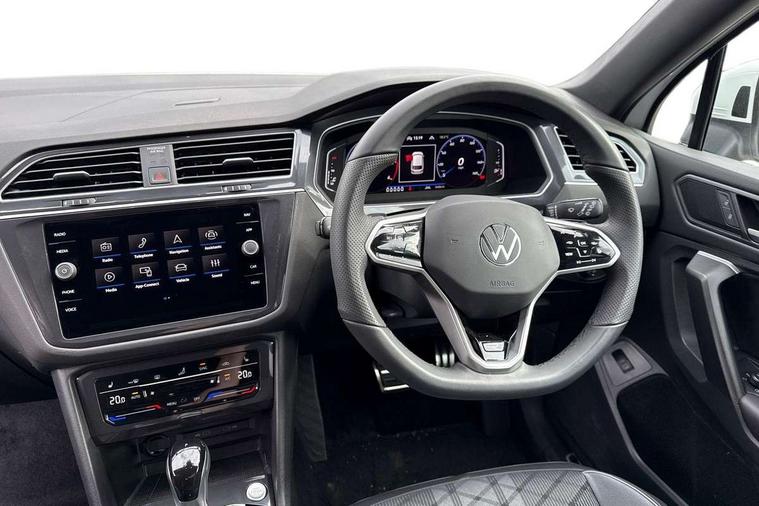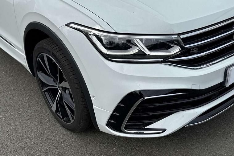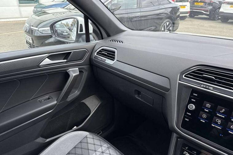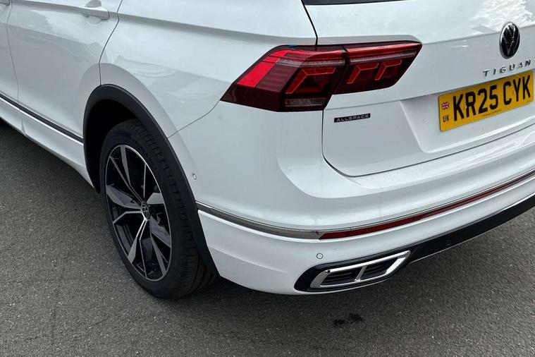 Adaptive cruise control, Advanced driver attention and drowsiness monitor, App-Connect, Digital cockpit pro, Driver profile selection, eCall emergency call service, Electric boot lid, Lane change assist, Lane keeping system Lane Assist, Mobile phone interface comfort with inductive charging feature, Multifunction front facing camera, Progressive steering, Speedo and rev counter, electronic odometer, trip, service interval display and exterior temperature gauge, Diesel particulate filter, Front wheel drive, Start-stop system with battery regeneration (recuperation - energy recovery during braking), 2 USB-C ports in the front, 1 USB-C charging socket on the center console in the rear, DAB Digital radio, Diversity antenna for FM reception, Auto dimming interior rear view mirror, Automatic headlight control system, Chrome mouldings on side window, Coming/leaving home lighting function, Exterior badge deletion, Rain sensor, Rear fog light, Rear side wing doors, Rear spoiler in R style, Rear wiper, Silver roof rails, Third brake light, 12-volt outlet in centre console rear and luggage compartment, 12V socket in centre console, 3 head restraints in rear, 3 individual folding 2nd row seats, 3rd row 2 individual seats, Air Care Climatronic 3 zone automatic climate control with enhanced air filter and controls in the rear, Black roof lining, Door and side trim panel with leatherette insert, Drawers under front seats, Driver + front passenger lumbar support, Driver and front passenger seat height adjustment, Foldable front passenger seat backrest, Front + rear carpet mats, Front centre armrest, Front footwell illumination, Illuminated scuff plates, ISOFIX anchorage points for mounting 2 child seats on rear seats and i-Size child seats, Leather gearshift handle, Leather wrapped multi function sports steering wheel with touch control and shifting paddles, LED interior light with switch off delay/dimmer and 2 front/rear LED reading lights, Stainless steel pedals, Sun visors with illuminated vanity mirrors, Top comfort sports seats in front with 'R' Logo, Ambience pack - Tiguan Allspace R Line, Driver assistance plus package - Tiguan Allspace, Park assist pack - Tiguan Allspace, 3 point seat belt for centre rear seat, 3 rear three point seatbelts, ABS+EBD+Brake assist, Driver and front passenger safety-optimised head restraints, Driver's and front passenger's airbag with front passenger's airbag deactivation switch, Electronic parking brake, Electronic Stability Control (ESC) inc EDL (Electronic Differential Lock) and ASR (Traction Control), Height adjustable front 3 point seatbelts + pretensioners, Manual rear child locks, Pedestrian monitoring, Rear disc brakes, Side airbag in front and rear with curtain airbag, Two tone horn, Warning buzzer for seatbelts if unfastened, Anti theft alarm system with interior monitoring, backup horn and towing protection, Anti-theft wheel bolts, Remote central locking with 2 remote folding keys,