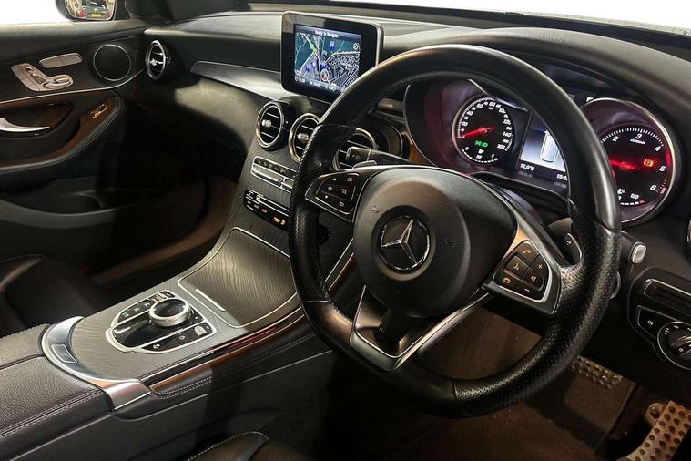7" colour screen, Active park assist with parktronic system, Attention assist, Bluetooth interface for hands free telephone, Collision prevention assist plus, Crosswind Assist, DYNAMIC SELECT with a choice of driving modes (ECO, Comfort, Sport, Sport+ and Individual), Garmin Map Pilot navigation system with SD card, touchpad and voice control, Instrument cluster with 5.5-inch TFT multi-function display, Multi function trip computer, Outside temperature gauge, Power opening/closing tailgate, Remote boot release, Service indicator (ASSYST), Diesel particulate filter, 5 speakers, DAB Digital radio, Frontbass loudspeakers, Mercedes Audio 20 radio/single CD + telephone keypad, USB connection, Adaptive brake lights, Aerodynamic rear spoiler, AMG bodystyling, Automatic headlights, Body coloured bumpers, Chrome exterior trim, Electric panoramic sunroof with sunblind, Electric windows one touch open/close, Electrically adjustable and heated door mirrors, Exhaust tailpipe finisher, LED daytime running lights, LED rear lamps, Privacy glass (to rear of B post), Rain sensor windscreen wipers, Range adjustable headlights, Rear wiper, Tinted glass all round, 2 cupholders in front centre console, 2 way rear head restraints, 3 spoke flat bottom AMG steering wheel in nappa leather, 4 way adjustable front head restraints, 4 way electric lumbar support for driver and front passenger, 40:20:40 split folding rear seats, Ambient lighting, AMG floor mats, AMG sports seats, Auto Mercedes-Benz child seat recognition sensor, Automatic climate control, Black roof lining, Dividing net - rear, Electric front seat height adjustment, Front armrest with storage box, Front door sills with Mercedes Benz lettering, Gearshift paddles, Heated front seats, Height/reach adjustable steering column, Lockable/illuminated glovebox, Multifunction steering wheel, Rear top tether child seat ISOFIX attachment, Sports pedals with stainless steel surfaces and rubber studs, Sunvisors with illuminated vanity mirrors, Easy-pack load compartment cover, Interior lighting pack - GLC, Memory pack - GLC, Mirror pack - GLC, Storage pack - GLC, 3 rear 3 point seatbelts, ABS with Brake Assist, Active bonnet, Adaptive brake system, Brake calipers with Mercedes-Benz lettering + perforated brake discs, Child proof door locks, Drivers knee airbag, Dual stage driver/passenger airbags, Electronic parking brake, ESP with ASR, Front and rear seatbelt reminder, Front passenger seat occupancy sensor, Front side airbags, Hill hold function, Tyre pressure monitoring system, Warning triangle and first aid kit, Window airbags, Alarm system/interior protection/immobiliser, Automatic door locking, Keyless entry and keyless start, Remote central locking, Tyre inflation kit,