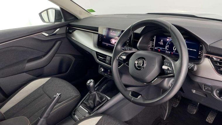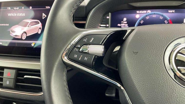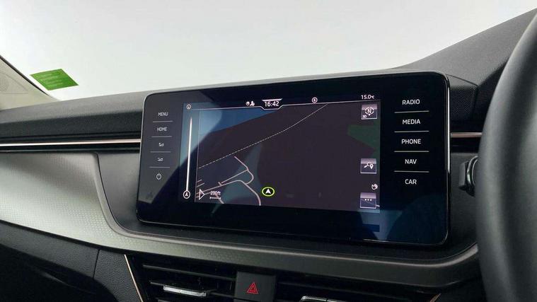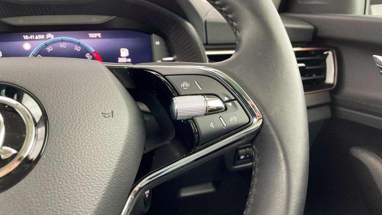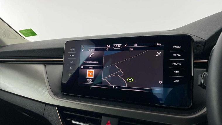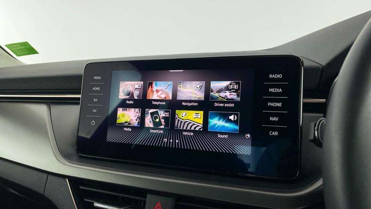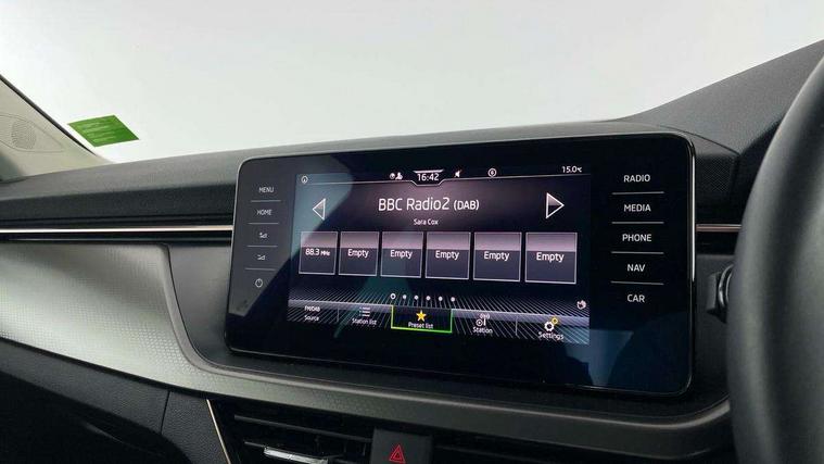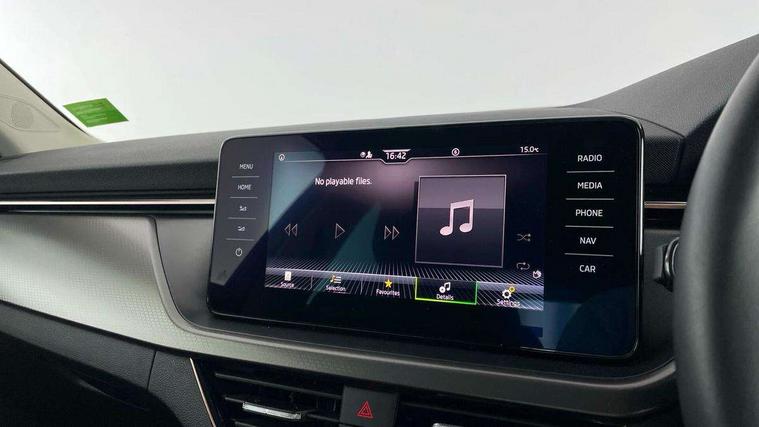 Amundsen satellite navigation with 9.2" glass colour touchscreen display, web radio, voice control and traffic sign recognition, Bluetooth system, E-call, Front assist system, Gesture control, PAS, Rear view camera, Service indicator, Speed limiter, Wireless SmartLink for apple car play, android auto and mirrorlink, 8 Speakers, Auxiliary input socket, DAB Digital radio, Body colour bumpers, Body colour door mirrors and handles, Chrome grille surround, Dimming rear view mirror with black surround, Electric folding door mirrors, Electrically adjustable and heated door mirrors, Front and rear electric windows, Headlight range control, Heated rear window, LED rear lights with dynamic indicators, LED third brake light, Light sensors, Privacy glass, Rain sensor, Rear fog lights, Rear side wing doors, Rear wiper, 12V Accessory socket in centre console, 3 seat bench in 2nd row, Chrome inner door handles, Dual zone climate control, Front head restraints, Glove compartment with illumination, Ice scraper, Isofix child seat fittings on outer rear seats, ISOFIX on front passenger seat, Manual lumbar support for front seats, Rake/reach adjustable steering wheel, Reading lights, Single front passenger seat, Sun visors with illumination on front passenger, Textile floor mats, Third rear headrest, Top tether for front passenger seat, Umbrella in driver's door, 3x3 point rear seatbelts, Airbags - driver and front passenger, ESP, Front passenger airbag deactivation switch, Front side airbags with curtain airbags, Hill hold control, Manual parking brake, Manual rear child locks, One tone horn, Rear disc brakes, Seatbelt reminder for driver an co-driver, Traction control, Tyre pressure monitor, Anti-theft alarm system with interior monitoring, backup horn, towing protection and remote central locking with SAFE system, Anti-theft wheel bolts, Electronic engine immobilizer, Latice curved decorative insert on the dashboard with hot stamping in copper and white ambient lighting white,