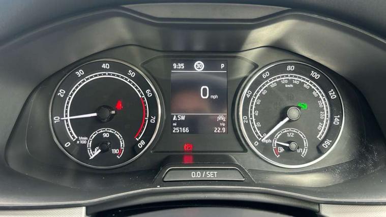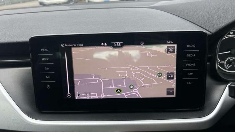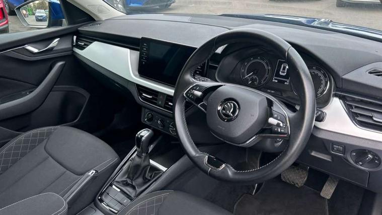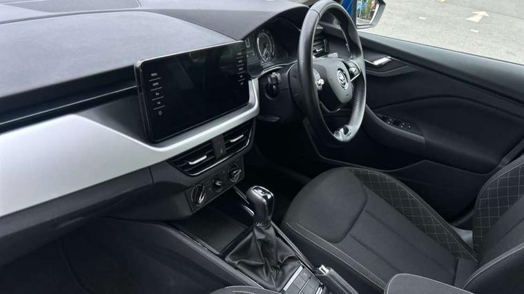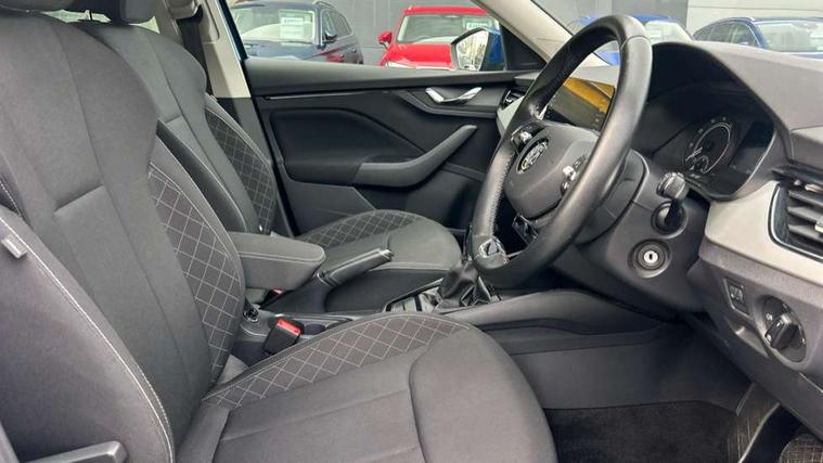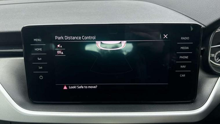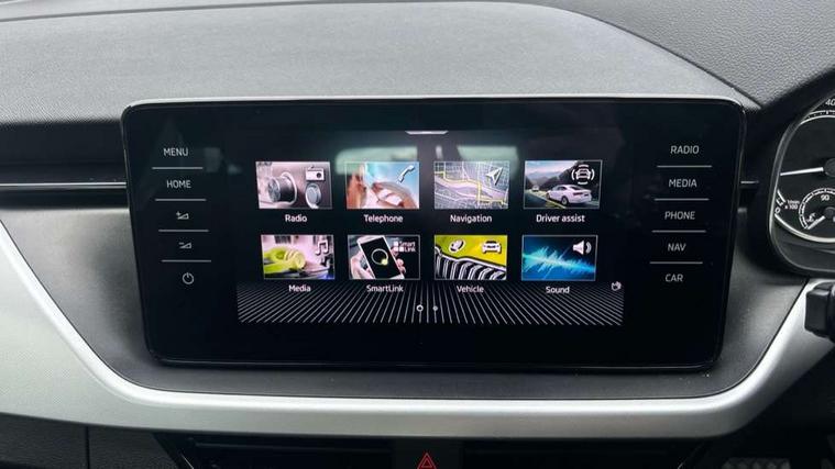 Silver haptic decorative insert on the dashboard with hot stamping in glossy black, Anti-theft alarm system with interior monitoring, backup horn, towing protection and remote central locking with SAFE system, Anti-theft wheel bolts, Electronic engine immobilizer, 8 speakers, Auxiliary input socket, DAB Digital radio, 3x3 point rear seatbelts, Airbags - driver and front passenger, ESP, Front passenger airbag deactivation switch, Front side airbags with curtain airbags, Hill hold control, Manual parking brake, Manual rear child locks, One tone horn, Rear disc brakes, Seatbelt reminder for driver an co-driver, Traction control, Tyre pressure monitor, Body colour bumpers, Body colour door mirrors and handles, Chrome grille surround, Dimming rear view mirror with black surround, Electrically adjustable and heated door mirrors, Front and rear electric windows, Headlight range control, Heated rear window, LED rear lights - low functionality, LED third brake light, Light sensors, Privacy glass, Rain sensor, Rear fog lights, Rear side wing doors, Rear wiper, 12V Accessory socket in centre console, 3 seat bench in 2nd row, Chrome inner door handles, Cloth upholstery, Front head restraints, Glove compartment with illumination, Height adjustable driver and front passenger seats - manual, Ice scraper, Isofix child seat fittings on outer rear seats, ISOFIX on front passenger seat, Manual lumbar support for front seats, Rake/reach adjustable steering wheel, Reading lights, Single front passenger seat, Sun visors with illumination on front passenger, Textile floor mats, Third rear headrest, Top tether for front passenger seat, Umbrella in driver's door, Amundsen satellite navigation with 9.2" glass colour touchscreen display, web radio, voice control and traffic sign recognition, Bluetooth system, E-call, Front assist system, Gesture control, PAS, Service indicator, Speed limiter, Wireless SmartLink for apple car play, android auto and mirrorlink,