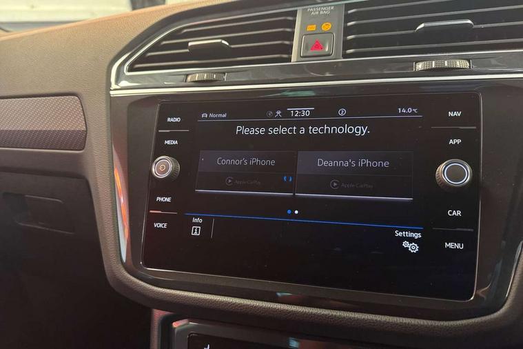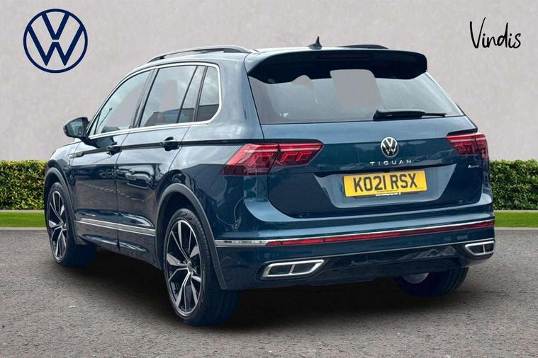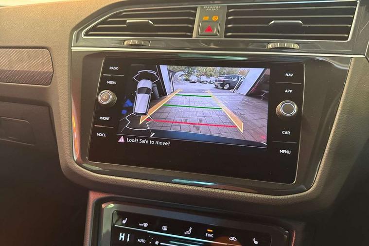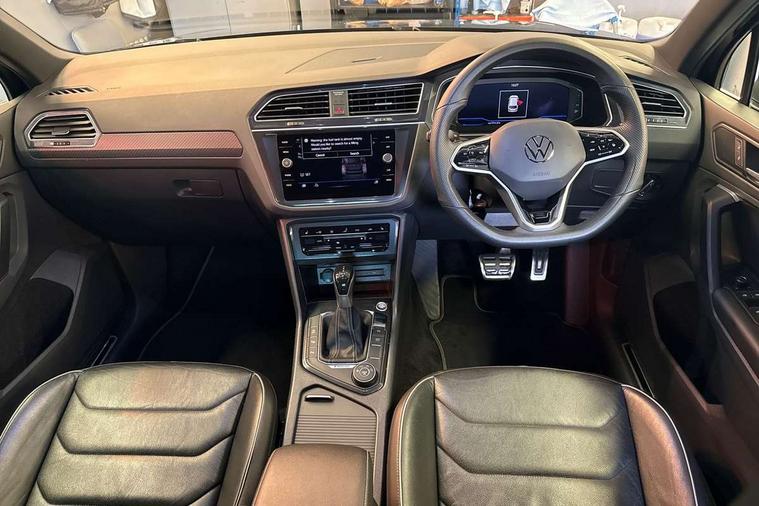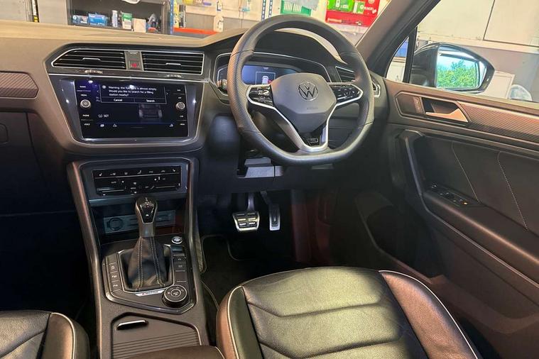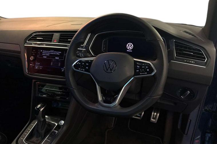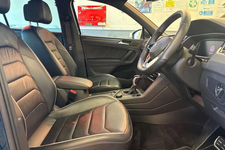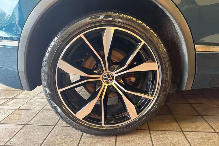 Adaptive cruise control ACC stop and go including speed limiter, App-Connect incl. App-Connect Wireless for Apple CarPlay and Android Auto, Bluetooth phone integration system, Digital Cockpit Pro - Active info display, Distance control assist, Driver alert system, Driver profile selection, Dynamic road sign display, eCall emergency call system, Electromechanical speed sensitive power steering, Lane keeping system Lane Assist, Lights on warning, Multifunction front facing camera, Outside temperature display, Premium multifunction display with multi colour display, Revision / skills operating concept travel assistant, Service interval indicator, Start/stop system with regenerative braking, Warning sound and light for doors and tailgate open, Battery regeneration during braking, Diesel particulate filter, Misfuel prevention device for diesel engine, XDS electronic differential lock for improved traction and handling, 2 USB-C ports in the front, 1 USB-C charging socket on the center console in the rear, Diversity antenna for FM reception, Radio, SD card slot, Simultaneous pairing of 2 compatible mobile devices, SMS functionality - read, compose and send SMS messages using touch-screen display, Title and cover art display, Auto dimming interior rear view mirror, Automatic headlight control system, Black roof rails, Body colour door handles, Body coloured bumpers in R Line style, Chrome moldings on the side windows, Coming/leaving home lighting function, Dynamic headlight range control, Front and rear electric windows, Heated rear window, High level 3rd brake light, Laminated safety glass windshield, heat and sound insulating, LED rear number plate lights, License plate carrier in front and rear, Poor weather light and cornering light, Privacy glass for rear side windows and rear window, R Line body kit, R Line side sills, Rain sensor windscreen wipers, Rear exhaust tailpipe, Rear fog lamp, Rear spoiler in R style, Rear windscreen washer and wiper with interval delay, Side and rear windows in heat insulating glass, Trailer Stability Programme, Unique R Line badging, Windscreen wipers/ intermittent wipe + 4 position delay, 12V outlet in center console rear and in luggage compartment, 2 cup holders in front, 2 LED front reading lights, 2 LED rear reading lights, 3 rear headrests, 4 load lashing points, 40:20:40 split folding rear seats, Air Care Climatronic 3 zone automatic climate control with enhanced air filter and controls in the rear, Backrest release for left front seat, Black headlining, Brushed stainless steel pedals and footrest, Carpet mats in front and rear with decorative stitching in Gray, Climate control unit rear with touch function, Door and side trim panel in foam film, insert in leatherette, Front footwell illumination, Front seats head restraints (x-adjustment), Height adjustable front seats, Height/reach adjust steering wheel, Instrument lighting white adjustable panel illumination, Interior light with delay, Isofix Preparation 2 Rear child seats, Leather gear knob, Lockable cooled glovebox, Luggage compartment lighting, Rear bench seat asymetrically split folding, longitudinally movable and folding with load-through hatch and center armrest, Remote unlocking for rear seat backrest, Removable luggage cover, Safety optimised front head restraints, Sliding/reclining rear seats, Standard rear seat release, Storage compartment in driver's door, Storage compartment in passenger's door, Storage compartment in rear doors, Storage compartments in luggage area left and right, Storage tray on dashboard, Sun visors with illuminated vanity mirrors, Tool kit, Top front comfort seats, Variable boot floor, height adjustable and removable, Ambience pack - Tiguan R Line, Driver assistance pack plus - Tiguan, 3 point seat belt for centre rear seats, 3 point seat belts with seat belt pretensioners for the outer rear seats, Active bonnet, Curtain airbags for front and rear passengers, Driver/Front Passenger airbags, Drivers knee airbag, Electronic parking brake with auto hold, Electronic Stability Control with driver steering recommendation, ABS, ASR, EDL, EDTC and trailer stabilization, Front assist with autonomous emergency braking (for Adaptive Cruise Control ACC up to 130 mph), Front disc brakes, Front passenger airbag deactivation, Front side airbags, Height adjustable front 3 point seatbelts + pretensioners, Hill hold control, Pedestrian monitoring system, Proactive passenger protection system in combination with front assist, Rear disc brakes, Rigid safety cell with front and rear crumple zones, Two tone horn, Warning sound and light for front seat belts if unfastened, Anti theft alarm system with interior monitoring, backup horn and towing protection, Anti theft wheel bolts, Electronic engine immobiliser, 20" Misano black with diamond turned surface alloy wheels with Airstop tyres,