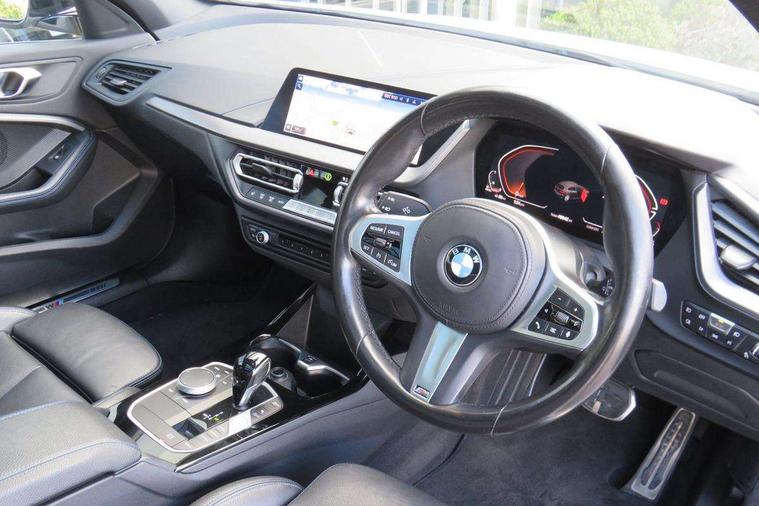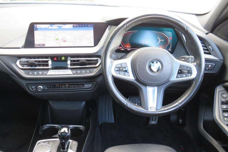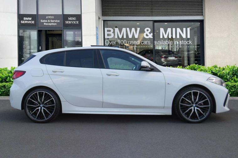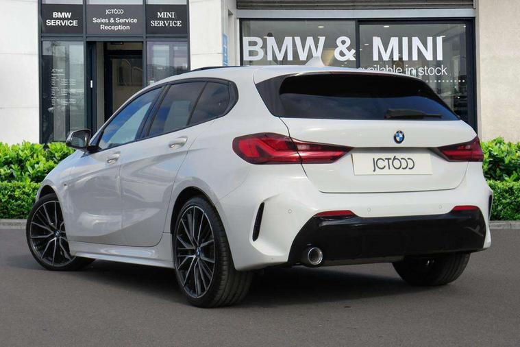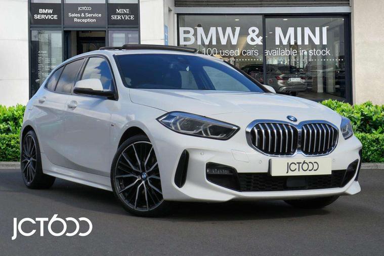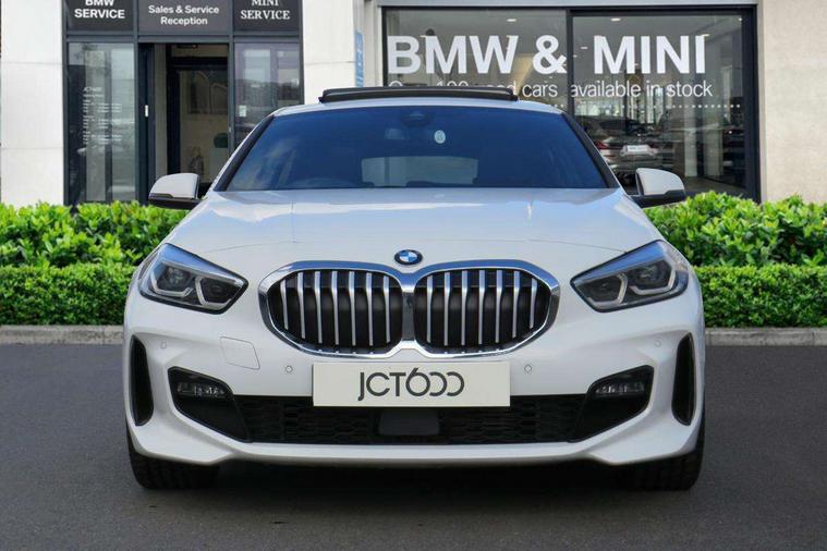 Active guard plus, Attentiveness assist, BMW Online services, BMW Teleservices, Check Control warning system for monitoring of lights and door/luggage compartment open warning, Connected eDrive Services, Eco pro mode, Integrated owners handbook, Oil sensor for level and grade, On board computer, Optimum shift indicator, Personal Profile, Pull away assistant, Speed limiter, Aluminium lightweight construction, Anti roll bar front and rear, Balancer shaft, Diesel particulate filter, Drive Performance Control, Electronic differential lock, M sport suspension, Bluetooth audio streaming, DAB Digital radio, Auto dimming rear view mirror, Automatic headlight beam throw control, Automatic windscreen wipers and automatic headlight, Body colour door handles, Body colour mirror caps, Chrome 'M' logo side designation, Chrome exhaust tailpipe in single, round (Exhaust tailpipe, stainless steel - single, round), Chrome kidney grille frame with Satin Aluminium struts, Direction indicator side lights in exterior mirrors, Electric folding and anti dazzle exterior mirrors, Fading support, Follow me home headlights, Front and rear bumper system with replaceable deformation elements, Front and rear electric windows with open and close fingertip control, anti trap facility and comfort closing, Front door sill finishers in black plastic with M designation in metallic look, Green tinted heat protection glazing, Heated, electrically adjustable exterior mirror aspheric on driver side, convex on passenger side, High gloss shadowline window frame, Recess cover mirror frames and B/C pillar embelisher trim, High level third brake light, LED daytime running lights, LED eyebrow turn indicators, LED front fog lights, Lightweight engineering, Matt black air guide grilles, Model designation on right side of tailgate, Nearside reverse light in rear light cluster, Preparation for high beam assistant, Rain sensor including auto headlights activation, Rear fog lights, Rear window wiper, Shark fin antenna, Visible VIN plate, Welcome lighting, 12V power socket in centre console, 3 rear seat head restraints, 3 spoke M sports design leather steering wheel finished in nappa leather with specific M badge, Anthracite headlining, Anthracite Velour floor mats, Child seat ISOFIX attachment for two outer rear seats and front passenger seat with anchorage points, Conditioned based service, Dakota leather upholstery with perforation and contrast stitching, Driver and front passenger seat heating, Folding rear clothes hook, Four grab handles integrated in roof lining, Front and rear door pockets, Front and rear door pockets with bottle holders, Front and rear side armrest integrated into door trim, Front armrest foldable with integrated storage compartment, Front sports seats with electric side bolster adjustment, Glove compartment, Height adjustable front head restraints, Manual adjust steering wheel, Multi-function controls for steering wheel, Storage compartment in centre console, Sun visors with vanity mirrors and insert tab, Two zone automatic air conditioning, Additional interior lighting pack - 1 Series, Connected pack professional - 1 Series, Extended storage pack - 1 Series, Interior lights pack - 1 Series, Luggage compartment pack - 1 Series, M Sport exterior styling aerodynamics pack - 1 Series, 2 tone horn, 3 point seatbelts on all seats, front pyrotechnic belt tensioners, stopper and belt force limiters, rear coded belt buckles, Airbags - front driver/passenger, front & rear curtain, front side, Anti lock braking system (ABS) with brake assist, BMW emergency call, Brake drying, Braking readiness, Crash sensor activating central locking release, hazard warning lights, fuel cut off, interior lighting + activation of safety battery terminal clamp, Driver and front passenger seat belt security check, Dynamic stability control + (DSC+), Dynamic Traction Control - DTC, Electrically operated hand brake, Front and rear disc brakes, Front passenger manual airbag deactivation, Seatbelt warning, Side impact protection, Tyre pressure monitoring system, Warning triangle and first aid kit, Automatic drive away locking facility, Central locking switch for all doors, fuel filler cap and luggage compartment, Deadlocking function system to all doors, Incorrect fuel protection system, Locking wheel bolts, Remote control with integrated key with High-gloss Black inlay and M designation and 1 button for open/ close lock, window, open luggage compartment, Start/stop button with comfort go keyless engine start and auto start stop deactivation button, Thatcham Cat.1 alarm and immobiliser, Contrast stitching on instrument panel, Reduced rolling resistance tyres,
