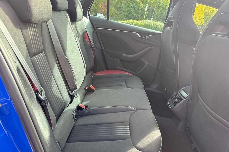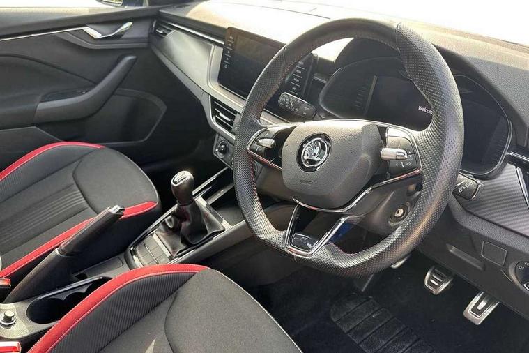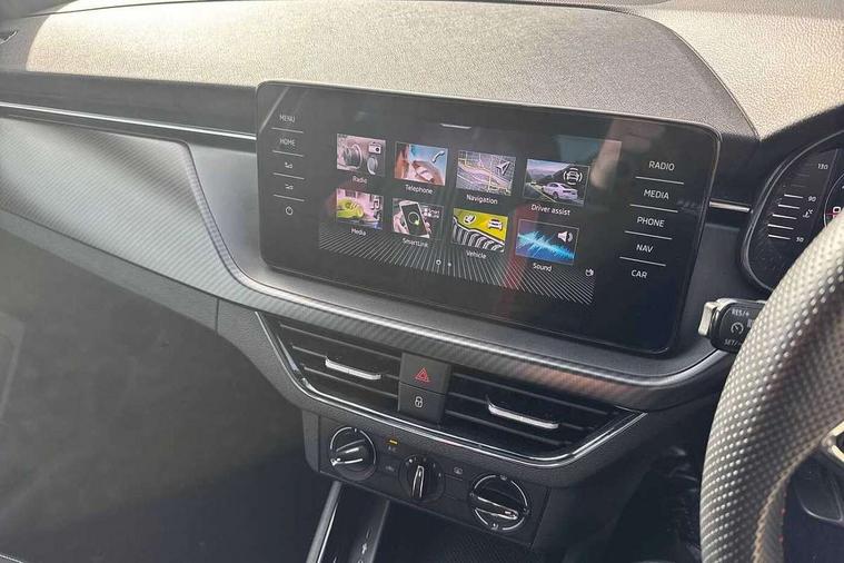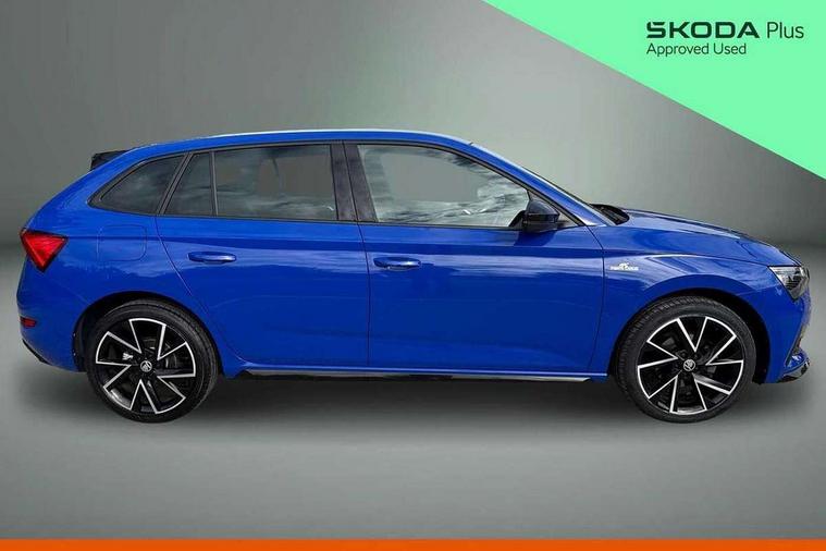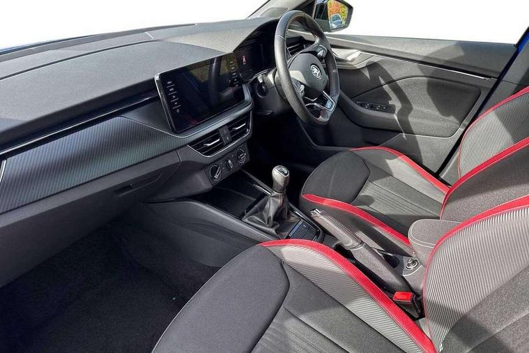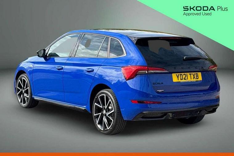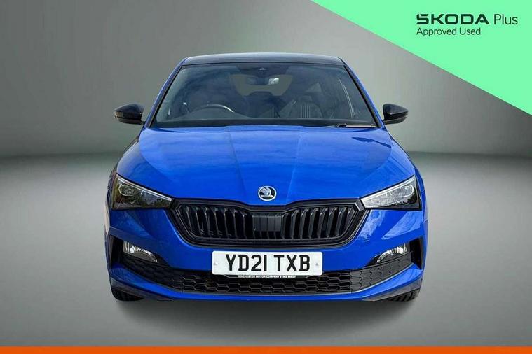 Amundsen satellite navigation with 9.2" glass colour touchscreen with virtual cockpit, web radio and traffic sign recognition, Bluetooth system, Easy light assist, Front assist system, Lane assist, Monte carlo instrument cluster, PAS, Rain and light assist with auto dimming rear view mirror, Speed limiter, 2 USB - C ports, 8 loudspeakers, DAB Digital radio, Black door mirrors, Black radiator grille, Black rear diffuser, Black roof spoiler, Black sill cover, Body colour door handles, Boot lettering in black, Electric folding door mirrors, Electrically adjustable and heated door mirrors, Front and rear electric windows, Front fog lights, Front sport bumper, LED daytime running lights, Monte carlo plaque, Privacy glass, Skoda across tailgate in black, Tinted windows, 12V Accessory socket in centre console, Aluminium pedals, Black roof lining, Chrome inner door handles, Cloth upholstery, Decor strip on dashboard and door panel, Door sills with lettering, Front centre armrest with stitching, Front gesture control, Front head restraints, Front sport seats, Glasses storage in roof liner, Height adjustable passenger seat, ISOFIX for rear passenger seat, Leather gearknob and handbrake lever, Manual lumbar support for front seats, Reading lights for driver and front passenger, Sun visor with make up mirror for front passenger, Textile floor mats, Third rear headrest, Umbrella, Exterior design pack - Scala, 3x3 point rear seatbelts, Curtain airbags, Emergency call and proactive services, Front head and side airbags, Hill hold control, One tone horn, Passenger airbag switch off function, Seat belt reminder for all seats, Alarm, Anti-theft wheel bolts, Remote central locking with 2 remote folding keys, SAFE function for remote central locking, Chrome air vent surrounds, 18" Vega alloy wheels in black, Temporary space saver wheel,