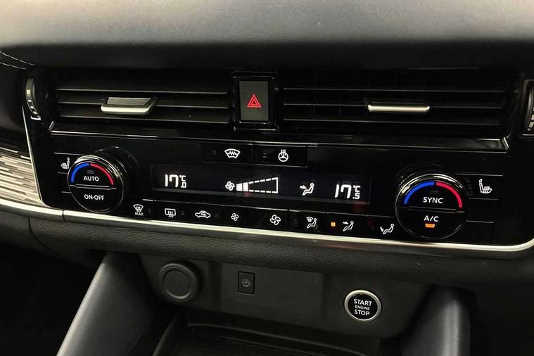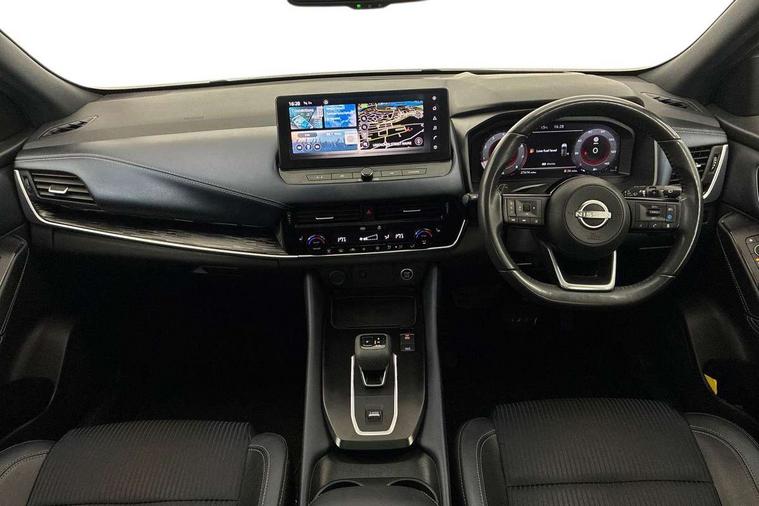 Advanced windscreen head up display, Android auto/Apple CarPlay (Wired), Blind spot warning, Drive modes (sport, normal, eco), Electric speed sensitive power steering, Emergency and breakdown call, Front and rear parking sensors, Full Digital 12.3" TFT Digital Combimeter, Google maps services - search, weather, 3D maps and Google street view, Hands free power tailgate, Idle stop/start system, Intelligent around view monitor, Intelligent Cruise control (ICC), Intelligent driver alert system, Intelligent forward collision warning, Intelligent lane intervention, Lane departure prevention, Lane departure warning system, Lane keep assist, Moving object detection, Nissan connect 12.3 inch touchscreen infotainment system, Nissan connect navigation, ProPilot, Push button starter, Rear cross traffic alert, Rear view camera, Remote control services - door locks, lights, horn and car locator, Telematics - notifications and connectivity services, TomTom live traffic services, Traffic jam pilot, Traffic sign recognition with legal speed adjustment, Trip computer, Virtual personal assistant and firmware over the air capability, Wireless apple carplay, Wireless charging pad, 6 speakers, AM/FM audio system with DAB, Bluetooth audio streaming, Front USB connections (Type-A and Type-C), Rear USB charging only ports (Type-A and Type-C), Auto dimming rear view mirror, Auto rear wiper when reversing, Automatic hazard signal with emergency stop signal, Body colour mirror caps, Body coloured door handles, Bodyside mouldings, Chrome side window finisher, Door handle with button, Electric auto folding door mirrors, Electrically adjustable and heated door mirrors with LED turn indicator, Follow me home headlights, Front and rear LED turning signals, Headlights auto levelling system, Intelligent auto headlights, LED daytime running lights, LED headlights with adaptive driving beam, LED rear lights, One touch front and rear electric windows with remote opening and closing, Partially body coloured bumpers, Privacy glass, Rear bumper with graphite insert, Rear reversing light (bulb lighting), Rear roof spoiler, Rear side wing doors, Rear styling plate, Shark fin antenna, Splash free rain sensing wipers, Super UV and infrared cut glass, Thermaclear heated windscreen, Three blink turn signal, 12v power socket in dashboard and luggage, 2x Rear coat hooks, 3 bench rear seats in 2nd row, 3 rear headrests, 4 folding assist grip, 6 Luggage hooks - 4 on floor, 2 on side, 60/40 split folding rear seat bench, Ambient lighting around centre console, Ambient lighting in front doors, Centre console storage tray, Chrome interior door handles, Cloth/syntech leather monoform upholstery, Dark black/blueish PVC wrapping, Dark headlining, Driver and front passenger sunvisors with illuminated vanity mirrors, Driver seat back pocket, Dual zone automatic climate control with pollen filter, Electrically adjustable driver seat, Electrically adjustable lumbar support for driver, Front and rear door storage, Front centre console and armrest, Front cupholders x 2, Front door with bottle holders, Glovebox with light, Hard trunk cover, Heated front seats, Heated steering wheel, Height adjustable driver's seat, Height adjustable front headrests, Height adjustable passenger seat, Leather steering wheel, Luggage board system, Luggage space lighting, Manual lumbar support on passenger seat, Manually adjustable passenger (slide recline + lifter), Multifunction steering wheel, Passenger seat back pocket, Rear armrest with 2 cupholders, Rear door bottle holders, Single front passenger seat, Soft PVC kneepad, Steering wheel gearshift paddles, Steering wheel switches, Tilt/telescopic adjustable steering wheel, Two rear isofix child seat anchorage points with top tether, Welcome light and doors with console tray ambient lighting, Glass roof pack with roof rails - Qashqai, 3x3 point rear seatbelt pretensioners + load limiters, ABS with EBD and brake assist, Active brake limited slip, Auto hold function, Child locks on rear doors, Curtain and front side, far side airbags, Driver and passenger airbags, Driver, passenger and 2nd row rear seat belt reminder, Electronic parking brake, Front seatbelt pretensioners + load limiters, Height adjustable front seatbelts, Hill start assist, Intelligent blind spot intervention, Intelligent front emergency braking with pedestrian, cyclist recognition and junction assist, Intelligent rear automatic braking, Tyre pressure monitoring system, Vehicle dynamic control, Capless fuel filler, Engine immobiliser, Intelligent Key, Remote central door locking with deadlocking, Thatcham Cat.1 alarm, Interior instrumental panel C finisher, 19" Alloy wheels, Tyre puncture repair kit,
