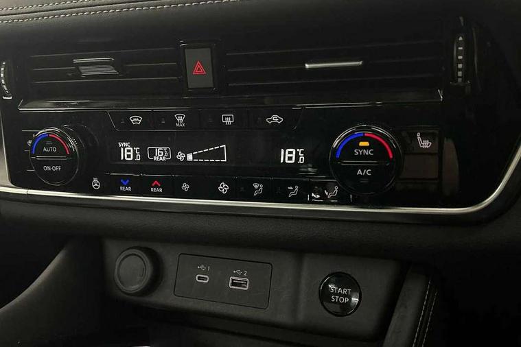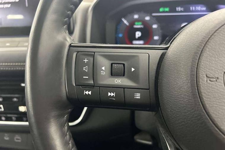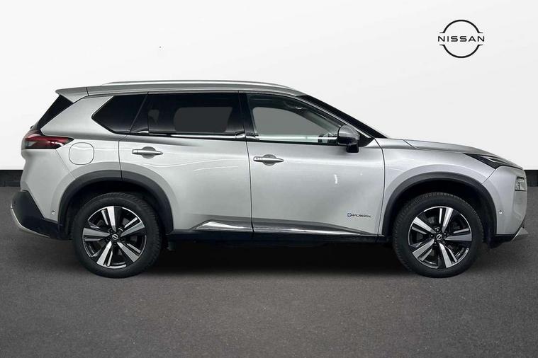 Advanced 10.8" head up display, Android auto/Apple CarPlay (Wired), Blind spot warning, Drive modes (sport, normal, eco, snow, off-road), e-Pedal step, Electric speed sensitive power steering, Emergency and breakdown call, Front and rear parking sensors, Full Digital 12.3" TFT Digital Combimeter, Google maps services - search, weather, 3D maps and Google street view, Hands free power tailgate, Idle stop/start system, Intelligent around view monitor, Intelligent driver alert system, Intelligent forward collision warning, Intelligent lane departure warning, Intelligent lane intervention, Intelligent lane keep assist, Lane departure prevention, Maximum speed limiter, Moving object detection, Nissan connect 12.3 inch touchscreen infotainment system, Nissan connect nav with TomTom traffic, Pro pilot and head up display, ProPilot park, Push button starter, Rear cross traffic alert, Rear view camera, Remote control services - door locks, lights, horn and car locator, Telematics - notifications and connectivity services, TomTom live traffic services, Traffic jam pilot, Traffic sign recognition with legal speed adjustment, Trip computer, Virtual personal assistant and firmware over the air capability, Wireless apple carplay, Wireless charging pad, 6 speakers, AM/FM audio system with DAB, Bluetooth audio streaming, Front USB connections (Type-A and Type-C), Rear USB charging only ports (Type-A and Type-C), 3rd brake light, Auto dimming rear view mirror, Auto rear wiper when reversing, Body colour mirror caps, Body coloured door handles, Bodyside mouldings, Chrome side window finisher, e-4ORCE badging, e-POWER badging, Electric auto folding door mirrors, Electrically adjustable and heated door mirrors, Follow me home headlights, Headlights auto levelling system, High beam assist, Intelligent auto headlights, LED daytime running lights, LED headlights with adaptive driving beam, LED rear lights, One touch front and rear electric windows with remote opening and closing, Openable glass roof with electric sunshades and roof rails, Partially body coloured bumpers, Rain sensing wipers, Rear privacy glass, Rear reversing light (bulb lighting), Rear roof spoiler, Rear side wing doors, Rear styling plate, Shark fin antenna, Splash free wipers, Super UV and infrared cut glass, Thermaclear heated windscreen, Three blink turn signal, 12v power socket in dashboard and luggage, 3 bench rear seats in 2nd row, 3 rear headrests, Butteryfly console, Chrome interior door handles, Driver and front passenger sunvisors with illuminated vanity mirrors, Driver seat back pocket, Electric adjustable 2 way lumbar support for driver, Electric adjustable 2 way lumbar support for passenger seat, Electrically adjustable driver seat, Front and rear heated seats, Front centre console and armrest, Front cupholders, Front door with bottle holders, Heated steering wheel, Height adjustable driver's seat, Height adjustable front headrests, Height adjustable passenger seat, Leather shift knob, Leather steering wheel, Luggage board system, Luggage space lighting, Multifunction steering wheel, Passenger seat back pocket, Rear armrest with 2 cupholders, Rear door bottle holders, Single front passenger seat, Sliding second row seats, Split folding 2nd row - 40/20/40, Steering column mounted gear shift paddles, Synthetic leather monoform upholstery, Tilt/telescopic adjustable steering wheel, Tri zone automatic climate control with pollen filter, Two rear isofix child seat anchorage points with top tether, 3x3 point rear seatbelt pretensioners + load limiters, ABS with EBD and brake assist, Active brake limited slip, Auto hold function, Child locks on rear doors, Curtain and front side, far side airbags, Driver and passenger airbags, Driver, passenger and 2nd row rear seat belt reminder, Electronic parking brake, Front seatbelt pretensioners + load limiters, Height adjustable front seatbelts, Hill start assist, Intelligent blind spot intervention, Intelligent front emergency braking with pedestrian, cyclist recognition and junction assist, Intelligent rear automatic braking, Tyre pressure monitoring system, Vehicle dynamic control, Engine immobiliser, Intelligent Key, Remote central door locking with deadlocking, Thatcham Cat.1 alarm, 19" Diamond cut alloy wheels, Tyre puncture repair kit,