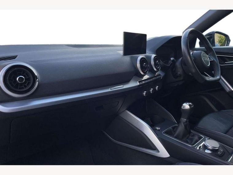 Audi connect navigation and infotainment includes innovative services, Audi connect remote and control connects your vehicle to your smartphone, Audi drive select, Audi drive select with efficiency, Audi smartphone interface, Audi virtual cockpit, Automatic start/stop system with recuperation, Bluetooth interface includes bluetooth audio streaming, Cruise control, E-call, MMI navigation plus with MMI touch, Power operated tailgate, Progressive steering, Rear parking sensors, 2 x SDXC card reader, 8 passive loudspeakers, DAB Digital radio, DVD Drive, Auto dimming rear view mirror, Black window trims, Bumper in full body colour paint finish, Electrically adjustable, folding, auto dimming and heated door mirrors with integrated LED side indicators, Front windscreen with grey tinted sunband, LED daytime running lights, LED headlights with LED rear lights, LED third brake light, Privacy glass - dark tinted rear and rear side windows from B-pillar backwards, Rear side wing doors, Rear wiper, Variable front intermittent wipers, Wheel arch trims in manhattan grey, 12v socket in front, 3 seat bench in 2nd row, 3 spoke flat bottomed multi-function leather sport steering wheel, 4-way electric lumbar support for front seats including seat height adjustment for both front seat, 60/40 split folding rear seat bench, Black cloth headlining, Front and rear head restraints, Front centre armrest, Front/rear floor mats, Height/reach adjust steering wheel, Illuminated door sill trims with S logo, ISOFIX child seat mounting for front passenger with airbag deactivation and outer rear seat including top tether attachment point for outer rear seats, Single front passenger seat, Stainless steel pedals, Black styling pack - Q2, 3x3 point rear seatbelts, 6 airbags - Front, curtain and front side airbags, Electromechanical parking brake, Electronic stabilisation control including ABS, ASR and EDL, Hill hold assist, Pre-sense front with pedestrian recognition, Seatbelt monitoring, Tyre pressure warning light, Warning triangle and first aid kit, Anti theft alarm, Anti theft wheel bolts, Electronically operated child locks, Remote central door locking, Aluminium interior element, Matt brushed aluminium trim inlays, Tool kit,