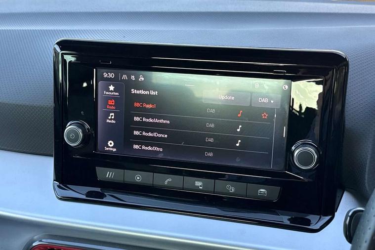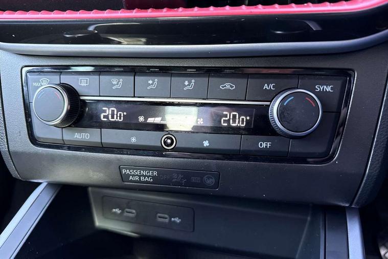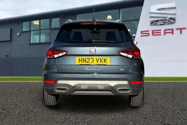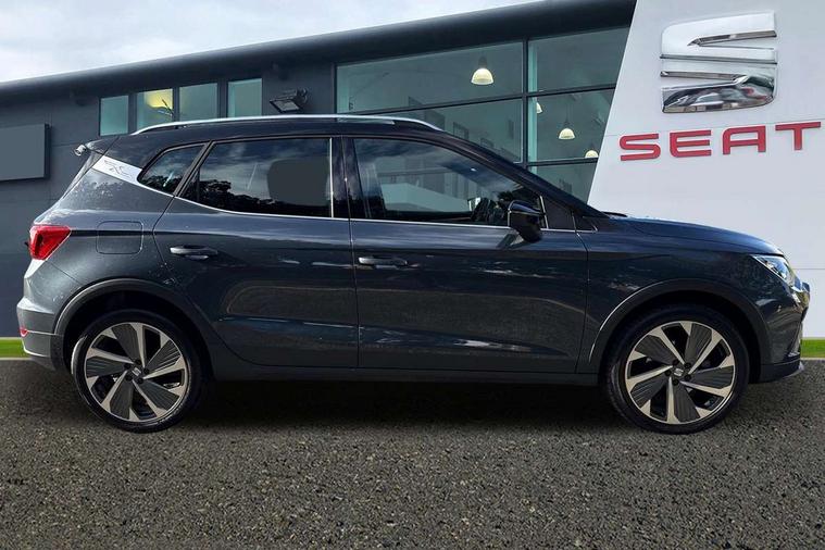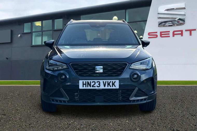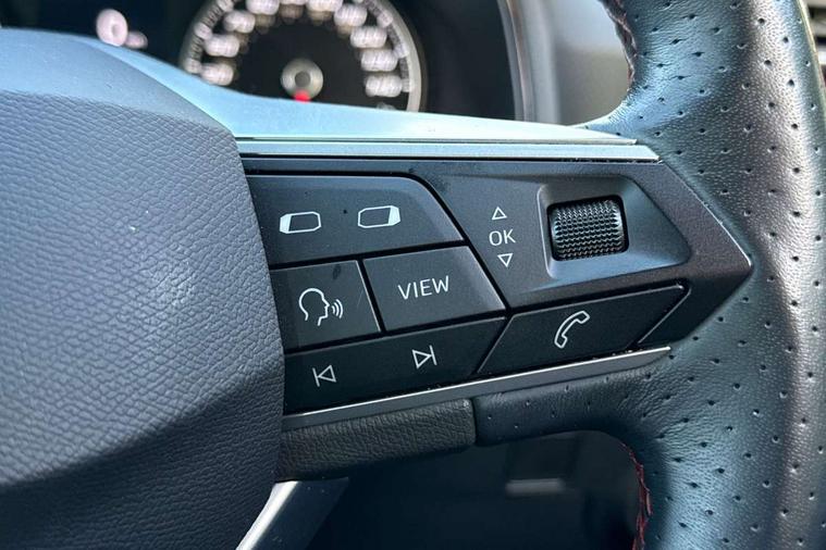 'Lights On' Reminder warning buzzer, Analogue cockpit with physical dials, Digital clock, E-call, Electric speed sensitive power steering, Full Link Smartphone Integration with Mirror Link, Apple Car Play, Google Android Auto with USB Type C cable for Apple and Android compatibility, Lane keeping system, Low fuel warning light, Outside temperature display, Rear parking sensor, RPM counter, Seat connect with safety, service and remote, SEAT Drive profile - Four different models normal-sport-eco-individual, steering response, throttle response, Trip computer, Wireless phone charger, Bluetooth interface for hands free and audio streaming, DAB digital radio and AM/FM radio, Media system with 8.25" colour touchscreen with USB port (type c), Steering wheel mounted audio controls, Anti theft roof antenna, Automatic activation of hazard warning lights, Body coloured bumpers, Body coloured door handle inserts, Chrome roof rails and window surrounds, Dark tinted rear windows, Dimming rear view mirror, Electric front/rear windows, Electrically adjustable and heated door mirrors, Front fog lights with cornering function and rear fog light, FULL LED automatic headlights with dynamic headlight range control, coming and leaving home, LED daytime running lights, LED rear tail lights and licence plate lights, Protective side mouldings, Rear side wing doors, Rear spoiler, Rear window wash/wipe, Roof colour door mirrors, Third brake light, Twin exhaust pipe styling hidden exhaust pipe, Visible VIN plate, Windshield wiper with intermittent control and potentiometer, 2 cupholders, 3 seat bench in 2nd row, 60/40 split folding rear seat, Aircare filter, Black interior roof, Double boot floor, Driver sunvisor with covered mirror + card holder, Dual zone climate control, Front comfort seats, Front courtesy light with 2x front and 2x rear reading lights, Gear shift indicator, Height adjustable front seats, Height/reach adjustable steering column, Illuminated boot, Instrument lighting with brightness control, Interior ambient lighting, Interior light in footwell, central console and door panel, ISOFIX points in outer rear seats with top tether anchorage points, Microsuede cloth upholstery, Passenger sunvisor with vanity mirror, Perforated flat bottomed leather steering wheel/gear knob/handbrake with red stitching and FR logo, Single front passenger seat, Two front and three rear height adjustable headrests, Interior chrome pack - Arona, 3 point seatbelts on all rear seats, ABS, Active front headrests, Child locks on rear doors, Driver and front passenger airbags with front passenger airbag de activation, front side and curtain airbags, Electronic stability control, Emergency Brake Assist (EBA) and front assist, Front and rear seatbelt reminder, Hill hold control, Multi-Collision braking, Tiredness recognition system, Traction control, Tyre pressure monitoring system, Alarm with back-up horn, Electronic engine immobiliser, KESSY Keyless entry and go, Locking wheel bolts, Remote central locking + deadlocks, Tow away protection, Titan black dashboard,