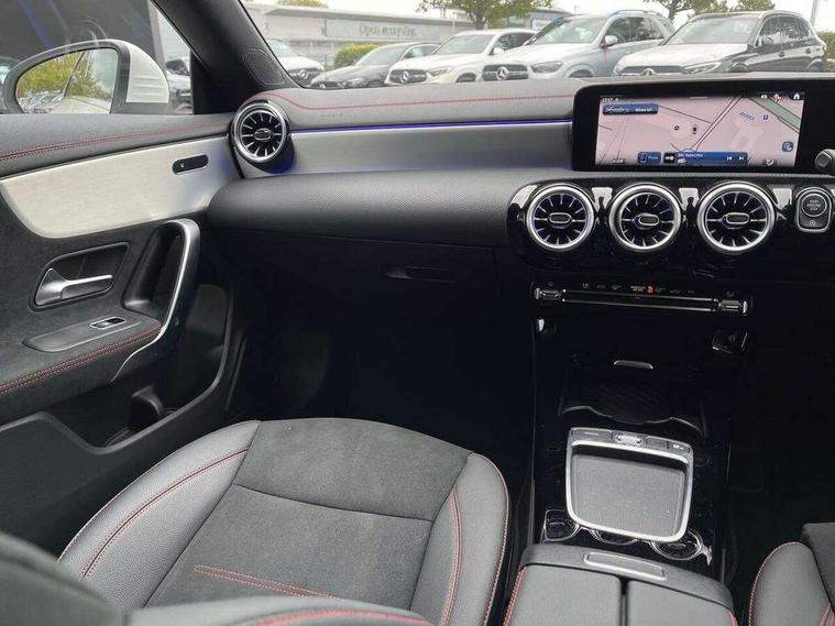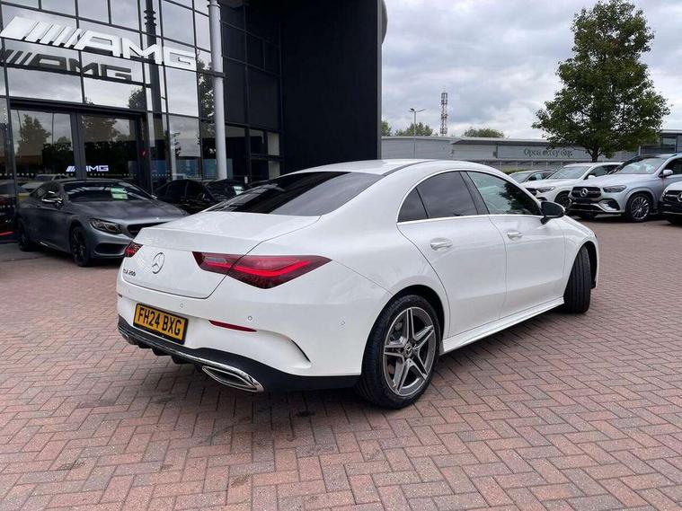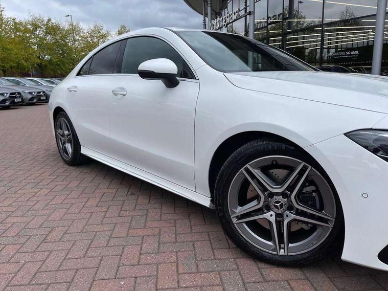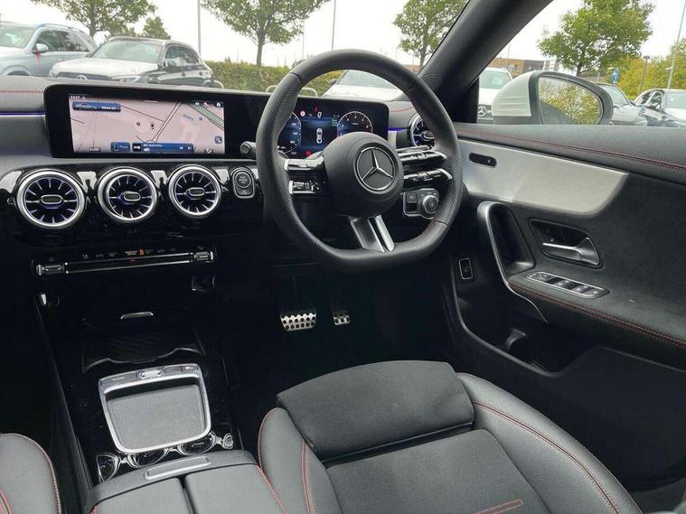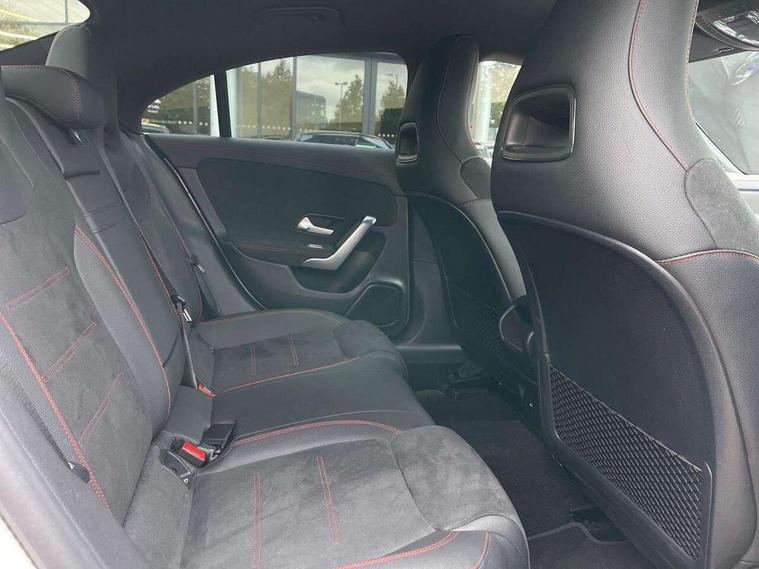 10.25 inch Instrument display with digital cockpit, 10.25 inch touchscreen central media display, Active lane keeping assist, Attention assist - Monitors steering behaviour and long journey fatigue, Bluetooth connection, Car wash mode, Cruise control with limiter, Direct steer system, DYNAMIC SELECT with a choice of driving modes (ECO, Comfort, Sport and Individual), ECO start/stop function, Fluid level warning indicator for fuel, oil, coolant and washer fluid, Hard-disk navigation, Hey Mercedes Voice activation, Lamp failure indicator, Mercedes me connect including emergency call system, accident recovery, breakdown and maintenance management, Mercedes me remote services, Outside temperature gauge, Owners manual in English, Pre-installation of private car share, Radio aerial integrated into front and rear windshields, Service indicator (ASSYST), Smartphone integration with Apple CarPlay and Android auto, Speed limit assist, Trip computer in multifunction display with current consumption indicator, Wireless charging in the front centre console, Comfort suspension with ride height lowering, Rear axle multi-link, DAB digital radio tuner, MBUX multimedia system, Mercedes Benz sound system (100 W) with 6 speakers, Pre installation for Mercedes Benz Link, Adaptive brake lights, AMG body styling with AMG front apron and rear apron and visible exhaust tailpipe in chrome trim elements, Body colour door handles, Chrome beltline strips, Electric windows, Electrically adjustable and heated door mirrors with integrated LED indicators, Exhaust system with 2 Visible tailpipe trim elements and rear apron with trim in chrome, Hand free access, Headlamp assist automatic headlamp activation, Heated glass rear windscreen + timer control, High level LED third brake light, Interior mirror with black reading lamps and frameless, LED high performance headlamps with integrated LED daytime running lights and adaptive highbeam assist, LED tail lamp, Privacy glass with dark tinting on rear side windows and rear window, Radiator grille with Mercedes-Benz pattern in chrome with central Mercedes star and single louvre with chrome inserts, Rain sensing windscreen wipers with two sensitivity settings, Rear boot, Rear fog lamp, Rear side wing doors, Variable front intermittent wipers, Window line trim strip in high gloss aluminium, 3 seat bench in 2nd row, 3 twin spoke flattened multifunction steering wheel in nappa leather - horizontal twin spoke in high gloss black, vertical twin spoke in silver chrome, 4 way lumbar support, 40:20:40 split folding rear seat backrests, Air conditioning - One zone thermatic automatic climate control with automatically controlled air distribution, Air vents with surround in silver chrome, Artico man-made leather/Microcut microfibre upholstery, Automatic child seat recognition sensor, Black roof lining, Brushed stainless steel sports pedals with rubber studs, Floor mats with stitched AMG lettering, Fluorescent jacket, Front centre armrest with stowage, Galvanished gear shift paddles in silver chrome, Heated front seats, Interior lighting - 64 colour Ambient lighting, Luggage net on driver/front passenger seat backrest, Manually height and reach adjustable steering column, Rear head restraints, Single front passenger seat, Sport seats with fixed head restraints, Stowage compartment in centre console with retractable cover, Sunvisors with illuminated vanity mirrors, Twin front cupholders, Two outer rear seat isofix and top tether child seat fixing points, Keyless go comfort pack - CLA, Light and sight pack - CLA, Mirror pack - CLA, Parking pack with reversing camera - CLA, Seat comfort pack - CLA, USB package plus - CLA, Active bonnet pedestrain safety measure which detects an impact and raises bonnet by 65mm, Active brake assist includes forward collision warning system with autonomous braking, Adaptive brake assist with hold function and hill start assist, Anti lock braking system (ABS) with brake assist, Black seat belts, Bonnet with power domes, Brake calipers with Mercedes-Benz lettering, Brake pad wear warning indicator, Childproof locks manually operated for rear doors and electrically operated for rear power windows, Crash responsive emergency lighting, Driver and front passenger head and sidebags, Driver and front passenger windowbags, Drivers knee airbag, Dual stage driver and front passenger airbags, Electric parking brake, Electronic stability programme with acceleration skid control, ESP curve dynamic assist, Front and rear seatbelt reminder, Front passenger seat occupancy sensor, Perforated front brake discs, Sports braking system, Three point rear seat belts, Tyre pressure monitoring system, Warning triangle and first aid kit, Alarm system with immobiliser and interior protection -Thatcham category 1, Guard 360 deg vehicle protection - tow away protection with visual, acoustic warning, interior monitoring, preinstallation for parking damage, Remote central locking and crash sensor with emergency opening function, Light aluminium with longitudinal grain interior trim, 18" AMG 5 twin spoke light alloy wheels painted in termolite grey with high sheen finish, Summer tyres, Tirefit tyre sealant kit,