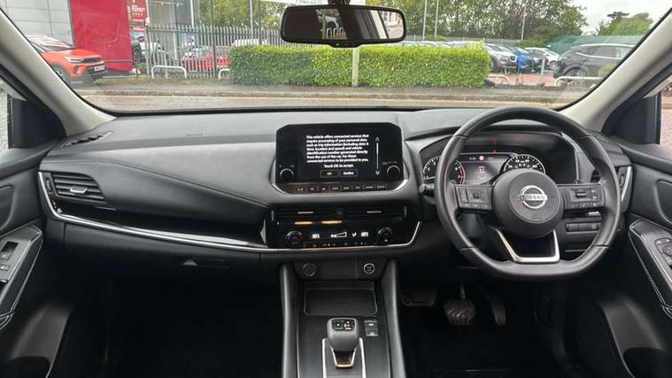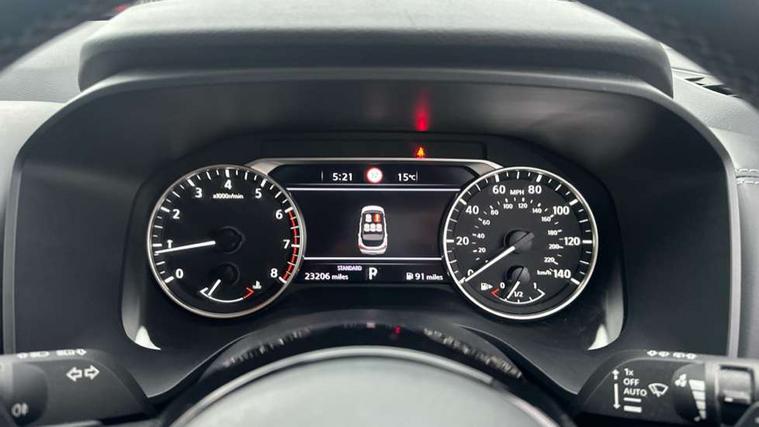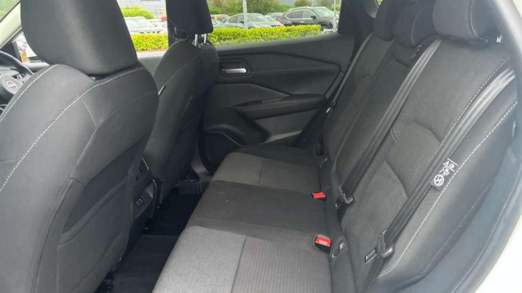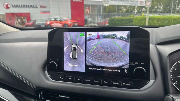Blind spot warning, Drive modes (sport, normal, eco), Electric speed sensitive power steering, Emergency and breakdown call, Front and rear parking sensors, Full Digital 12.3" TFT Digital Combimeter, Google maps services - search, weather, 3D maps and Google street view, Idle stop/start system, Intelligent around view monitor, Intelligent Cruise control (ICC), Intelligent driver alert system, Intelligent forward collision warning, Intelligent lane intervention, Lane departure prevention, Lane departure warning system, Maximum speed limiter, Moving object detection, Nissan connect 12.3 inch touchscreen infotainment system, Nissan connect navigation, Push button starter, Rear cross traffic alert, Remote control services - door locks, lights, horn and car locator, Telematics - notifications and connectivity services, TomTom live traffic services, Traffic sign recognition with legal speed adjustment, Trip computer, Virtual personal assistant and firmware over the air capability, Wireless Apple CarPlay and wired Android Auto, 6 speakers, AM/FM audio system with DAB, Bluetooth audio streaming, Front USB connections (Type-A and Type-C), Rear USB charging only ports (Type-A and Type-C), Auto dimming rear view mirror, Auto rear wiper when reversing, Automatic hazard signal with emergency stop signal, Body colour mirror caps, Body coloured door handles, Bodyside mouldings, Chrome side window finisher, Door handle with button, Dusk sensor, Electric auto folding door mirrors, Electrically adjustable and heated door mirrors with LED turn indicator, Follow me home headlights, High beam assist, Intelligent auto headlights, LED daytime running lights, LED Headlights, LED rear lights, One touch front and rear electric windows with remote opening and closing, Partially body coloured bumpers, Privacy glass, Rain sensor, Rear bumper with graphite insert, Rear reversing light (bulb lighting), Rear roof spoiler, Rear side wing doors, Rear styling plate, Shark fin antenna, Splash free rain sensing wipers, Super UV and infrared cut glass, Three blink turn signal, 12v power socket in dashboard and luggage, 2 way electrical driver lumbar adjustment, 2x Rear coat hooks, 3 bench rear seats in 2nd row, 3 rear headrests, 4 folding assist grip, 6 Luggage hooks - 4 on floor, 2 on side, 6-way manually adjustable driver's seat, 60/40 split folding rear seat bench, Ambient lighting around centre console, Centre console storage tray, Chrome interior door handles, Cloth monoform upholstery, Driver and front passenger sunvisors with illuminated vanity mirrors, Driver seat back pocket, Dual zone automatic climate control with pollen filter, Front and rear door storage, Front cupholders x 2, Front door with bottle holders, Glovebox with light, Hard trunk cover, Height adjustable front headrests, Leather steering wheel, Luggage board system, Luggage space lighting, Manually adjustable passenger (slide recline + lifter), Multifunction steering wheel, Passenger seat back pocket, PVC front centre console and armrest, Rear armrest with 2 cupholders, Rear door bottle holders, Single front passenger seat, Soft PVC kneepad, Steering wheel gearshift paddles, Steering wheel switches, Sunglasses holder, Tilt/telescopic adjustable steering wheel, Two rear isofix child seat anchorage points with top tether, Welcome light and console tray ambient lighting, 3x3 point rear seatbelt pretensioners + load limiters, ABS, ESP, EBD and brake assist, Active brake limited slip, Auto hold function, Child locks on rear doors, Curtain and front side, far side airbags, Driver and passenger airbags, Driver, passenger and 2nd row rear seat belt reminder, Electronic parking brake, Front seatbelt pretensioners + load limiters, Height adjustable front seatbelts, Hill start assist, Intelligent blind spot intervention, Intelligent front emergency braking with pedestrian, cyclist recognition and junction assist, Intelligent rear automatic braking, Tyre pressure monitoring system, Vehicle dynamic control, Capless fuel filler, Engine immobiliser, Nissan i-key, Remote central door locking with deadlocking, Thatcham Cat.1 alarm, Interior instrumental panel B finisher, 18" Diamond cut alloy wheels, Tyre puncture repair kit,