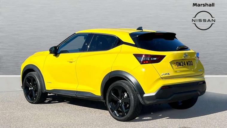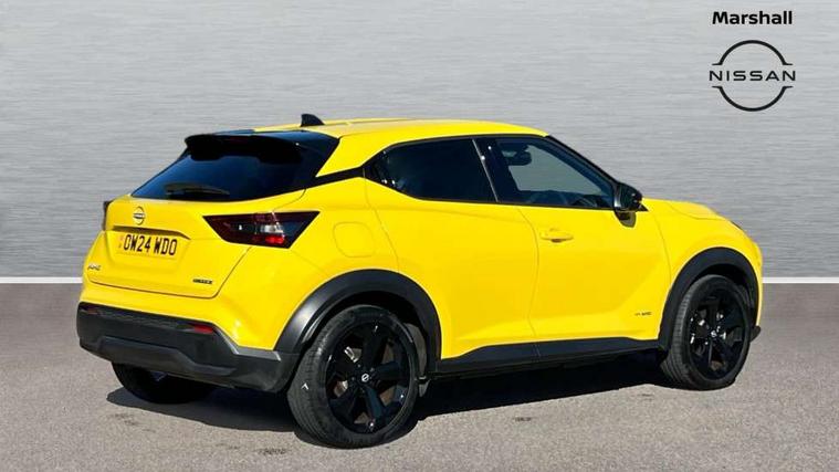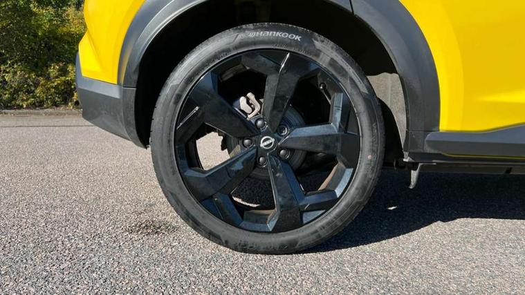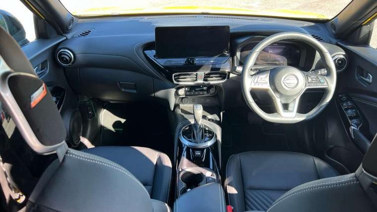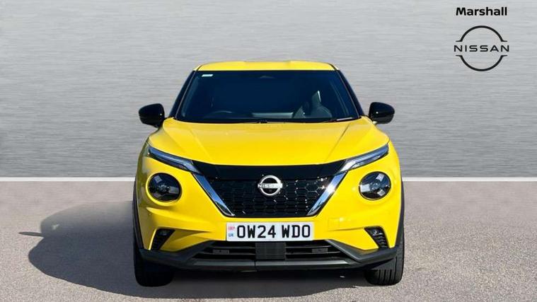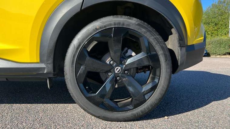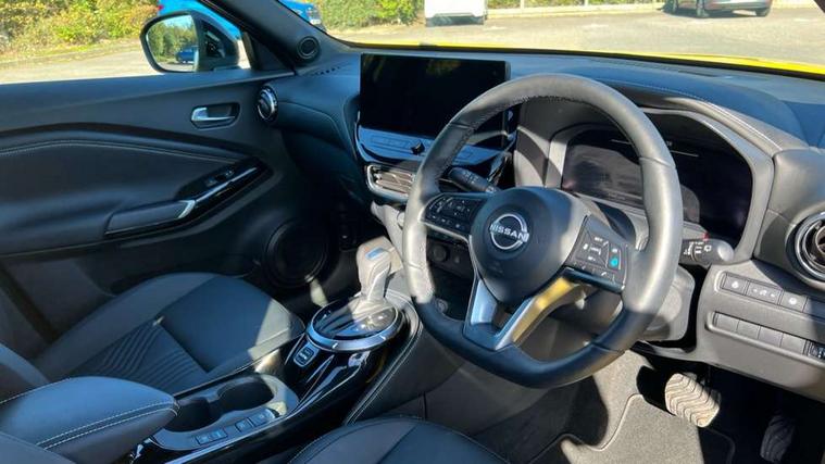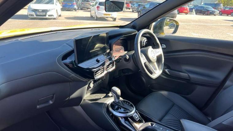 12.3" full colour TFT screen combimeter, Drive modes select (Eco, normal and sport), e-Pedal step, Emergency and breakdown call, EV mode selector, Front parking sensor, Intelligent driver alert system, Intelligent lane intervention, Lane departure warning system, Nissan connect 12.3" touch screen entertainment system, Nissan connect nav with TomTom traffic, Nissan connect services and Wifi connection, Outside temperature sensor, Power Steering, Rear parking sensor, Stop/start button, Traffic sign recognition, Trip computer, Voice recognition, Wireless Apple CarPlay and Google Android auto, Wireless Smartphone charger, 10 Bose speakers 6 speakers and 2 headrest speakers for driver/passenger seats, 2 X Rear console USB port, Bluetooth system, USB, Aux-in and 12V socket, Bose personal sound stage control, DAB Digital radio, Auto dimming frameless rear view mirror, Automatic hazard signal with emergency stop signal, Body colour door handles, Electrically adjustable door mirrors with integrated indicators, Follow me home headlights, Front and rear electric window with one touch driver window, Heated and auto folding door mirrors, High beam assist, LED 3rd brake light, LED daytime running lights, LED front fog lights, LED headlamps, LED rear fog lamp, LED rear lamps, One touch passenger window, Rain sensor windscreen wipers, Rear privacy glass, Rear side wing doors, Rear wiper, Roof spoiler, Shark fin roof antenna in solid Black, Three blink turn signal, 3 height adjustable rear headrests, 3 seat bench in 2nd row, 60/40 split folding rear seat, Automatic climate control, Card holder on driver sunvisor, Door ambient lighting, Driver seat back pocket, Driver side rear coat hanger, Driver/passenger sunvisors and vanity mirrors, Front and rear cabin lights, Front armrest, Front door pockets with bottle holders, Front head restraints, Front/rear passenger grab handles, Gear console ambient circle lighting, Height adjustable driver's seat, Internal chrome door handles, Leather gearshift knob, Leather steering wheel, Luggage space lighting, Monoform sporty seats, Multifunction steering wheel, Passenger seat back pocket, Rear door bottle holders, Single front passenger seat, Synthetic leather kneepad, Synthetic leather upholstery, Telescopic steering wheel adjustment, Two cupholders in front centre console, Two rear isofix child seat anchorage points with top tether, Welcome light and console tray ambient lighting, Heat pack with height adjustable passenger seats - Juke, ProPilot pack - Juke Auto, ABS with EBD and brake assist, Active ride control, Active Trace Control, Driver and passenger airbags, Driver and passenger side airbags, Electric handbrake with auto hold function, Electronic Stability Programme (ESP), Front and rear curtain airbags, Height adjustable seatbelts, Hill start assist, Intelligent emergency braking with pedestrian and cyclist recognition, Rear door child safety locks, Seatbelt reminder for driver/front passenger and rear seats, Three 3 point rear seatbelts, Traction control, Tyre pressure monitoring system, VDC Dynamic Vehicle Control, Alarm, Immobiliser, Intelligent key and start push button with walk away lock and approach unlock functions, Remote central locking, 19" Alloy wheels,