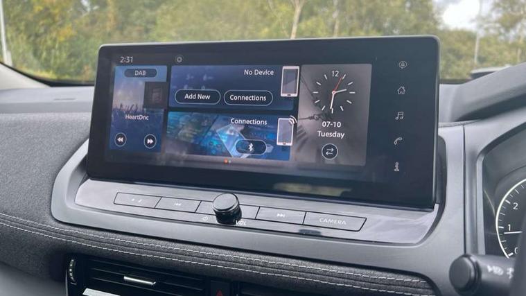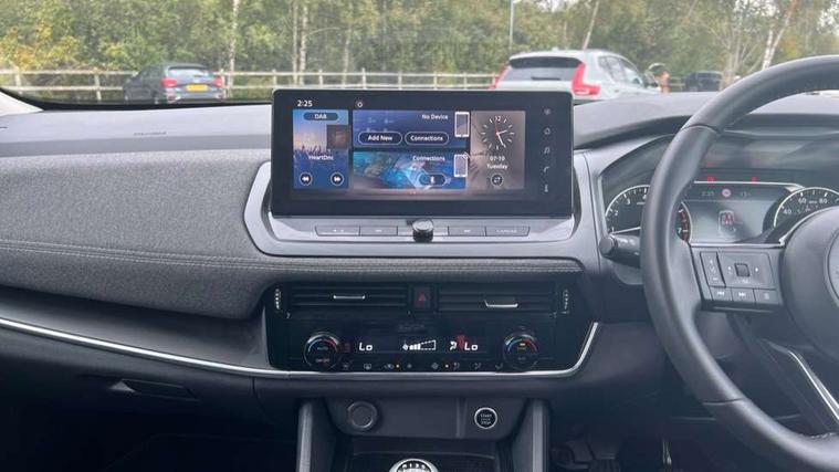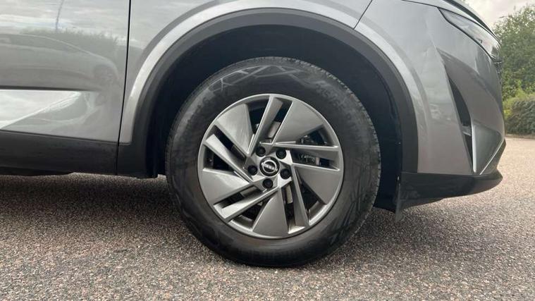 2 front USB-C ports, 7" High definition full colour TFT screen combimeter, Blind spot intervention, Blind spot warning, Drive assist custom mode, Drive modes (sport, normal, eco), Driver drowsiness and attention warning, Electric speed sensitive power steering, Emergency and breakdown call, Emergency lane keep assist, Emergency Stop Signal (ESS), Engine start/stop button, Event data recorder, Idle stop/start system, Intelligent Cruise control (ICC), Intelligent forward collision warning, Intelligent speed assist, Lane departure warning system, Nissan connect 12.3 inch touchscreen infotainment system, Outside temperature sensor, Rear cross traffic alert, Rear parking sensors, Rear view camera, Reversing detection, Wireless Apple CarPlay and wired Android Auto, Limited slip differential, 6 speakers, AM/FM audio system with DAB, Bluetooth audio streaming, Auto rear wiper when reversing, Body colour mirror caps, Body coloured door handles, Bodyside mouldings, Chrome side window finisher, Electric auto folding door mirrors, Electrically adjustable and heated door mirrors with LED turn indicator, Follow me home headlights, High beam assist, Intelligent auto headlights, LED 3rd brake light, LED daytime running lights, LED Headlights, LED rear lights, One touch front and rear electric windows with remote opening and closing, One touch passenger window, Partially body coloured bumpers, Rear roof spoiler, Rear side wing doors, Shark fin antenna, Splash free rain sensing wipers, Three blink turn signal, 3 bench rear seats in 2nd row, 3 rear headrests, 60/40 split folding rear seat bench, Chrome interior door handles, Cloth upholstery, Dark headlining, Dual zone automatic climate control with pollen filter, Front door with bottle holders, Height adjustable front headrests, Leather shift knob, Luggage space lighting, Multifunction steering wheel, Passenger seat back pocket, Rear door bottle holders, Single front passenger seat, TEP steering wheel, Tilt/telescopic adjustable steering wheel, Two rear isofix child seat anchorage points with top tether, White ambient light (Partial area coverage), 3x3 point rear seatbelt pretensioners + load limiters, Autonomous emergency braking, Child locks on rear doors, Curtain and front side, far side airbags, Driver and passenger airbags, Driver, passenger and 2nd row rear seat belt reminder, Electric handbrake with auto hold function, Front seatbelt pretensioners + load limiters, Height adjustable front seatbelts, Hill start assist, intelligent front emergency braking, Rear automatic braking, Tyre pressure monitoring system, Vehicle dynamic control, Engine immobiliser, Intelligent key with walk away lock and approach unlock functions, Remote central door locking with deadlocking, Thatcham alarm, 17" Alloy wheels, Tyre puncture repair kit,