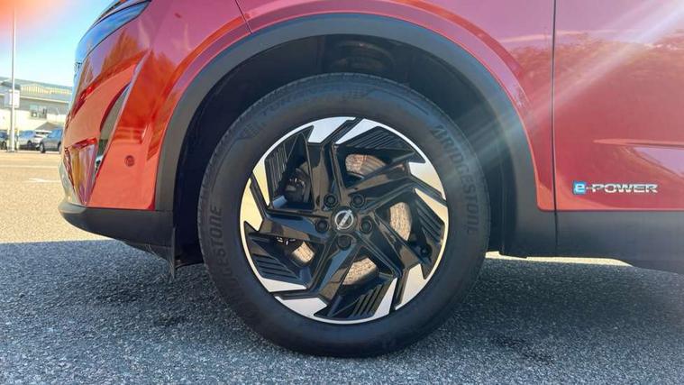 2 front USB-C ports, 2 rear USB-C ports, 360 degree Intelligent around view monitor with moving object detection, Blind spot intervention, Blind spot warning, Drive assist custom mode, Drive modes (sport, normal, eco), Driver drowsiness and attention warning, e-Pedal step, Electric speed sensitive power steering, Emergency and breakdown call, Emergency lane keep assist, Emergency Stop Signal (ESS), Engine start/stop button, EV mode switch, Event data recorder, Front and rear parking sensors, Full Digital 12.3" TFT Digital Combimeter, Google virtual personal assistance, Idle stop/start system, In-car WIFI hotspot, Intelligent Cruise control (ICC), Intelligent forward collision warning, Intelligent speed assist, Lane departure warning system, Nissan connect 12.3 inch touchscreen infotainment system, Nissan connect navigation with google maps, Nissan connect services 2.0 (Google Automotive System), Outside temperature sensor, Rear cross traffic alert, Reversing detection, Traffic jam pilot, Wireless Apple CarPlay/Android Auto, Wireless charging pad, Limited slip differential, 6 speakers, AM/FM audio system with DAB, Bluetooth audio streaming, Auto dimming frameless rear view mirror, Auto rear wiper when reversing, Body colour mirror caps, Body coloured door handles, Bodyside mouldings, Chrome side window finisher, e-POWER badging, Electric auto folding door mirrors, Electrically adjustable and heated door mirrors with LED turn indicator, Follow me home headlights, High beam assist, Intelligent auto headlights, LED 3rd brake light, LED daytime running lights, LED Headlights, LED rear lights, One touch front and rear electric windows with remote opening and closing, One touch passenger window, Partially body coloured bumpers, Rear privacy glass, Rear roof spoiler, Rear side wing doors, Rear styling plate, Shark fin antenna, Splash free rain sensing wipers, Super UV and infrared cut glass, Three blink turn signal, 3 bench rear seats in 2nd row, 3 rear headrests, 60/40 split folding rear seat bench, Chrome interior door handles, Cloth upholstery, Dark headlining, Driver seat back pocket, Dual zone automatic climate control with pollen filter, e-POWER shifter, Front door with bottle holders, Height adjustable front headrests, Luggage board system, Luggage space lighting, Multifunction steering wheel, Passenger seat back pocket, Rear door bottle holders, RGB ambient light (Full area coverage), Single front passenger seat, Smooth leather steering wheel, Tilt/telescopic adjustable steering wheel, Two rear isofix child seat anchorage points with top tether, 3x3 point rear seatbelt pretensioners + load limiters, Autonomous emergency braking, Child locks on rear doors, Curtain and front side, far side airbags, Driver and passenger airbags, Driver, passenger and 2nd row rear seat belt reminder, Electric handbrake with auto hold function, Front seatbelt pretensioners + load limiters, Height adjustable front seatbelts, Hill start assist, intelligent front emergency braking, Rear automatic braking, Tyre pressure monitoring system, Vehicle dynamic control, Engine immobiliser, Intelligent key with walk away lock and approach unlock functions, Remote central door locking with deadlocking, Thatcham alarm, 18" Diamond cut alloy wheels, Tyre puncture repair kit,