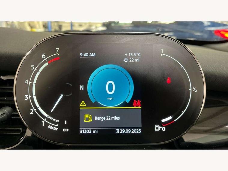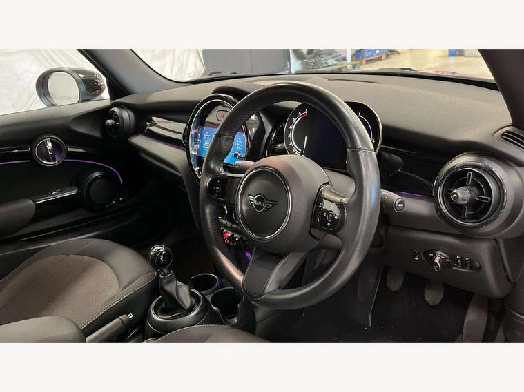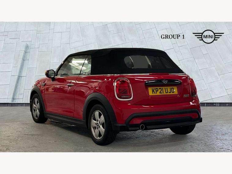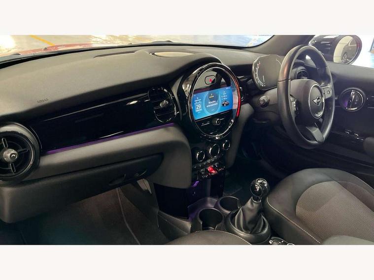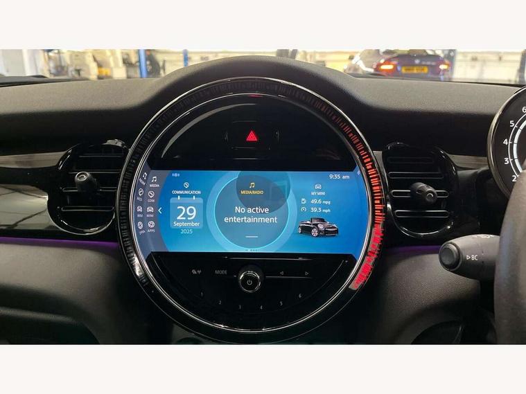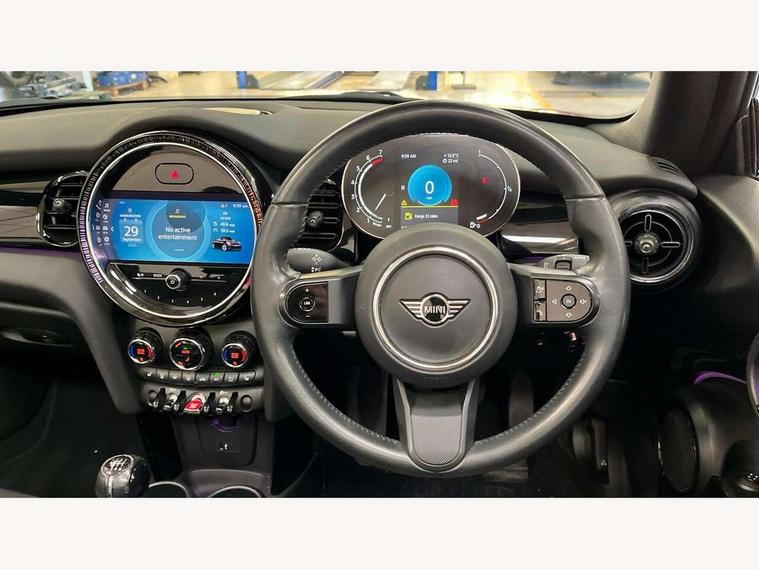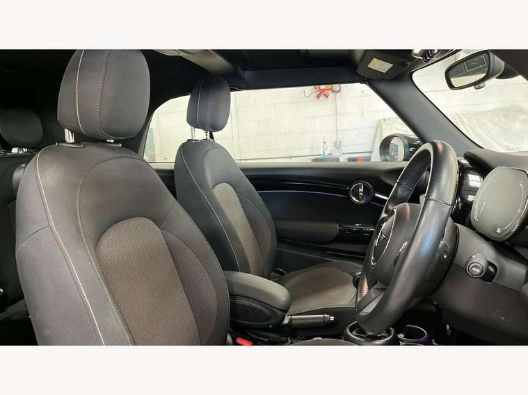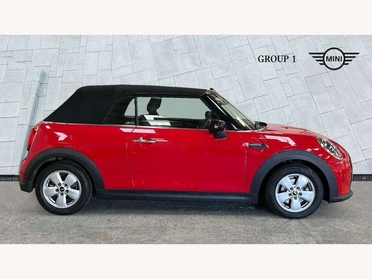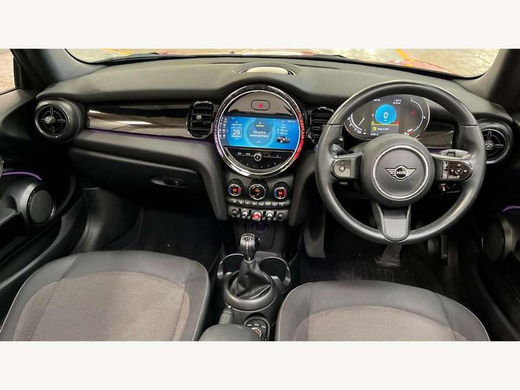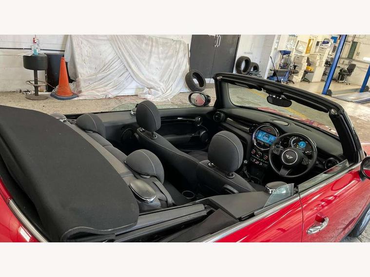 Automatic start/stop function with brake energy recuperation, Compatible mobile phone bluetooth with audio streaming, Electro-mechanical speed dependant steering assistance, Instrument cluster, Mini E-call, MINI TeleServices, On board computer, Rear park distance control, Service interval indicator, 6 Speed manual transmission including gear change indicator display, Double Vanos system, Fully variable valve control, High precision injection, Performance Control, 8.8" touchscreen with LED ring, FM tuner and DAB digital radio, Automatic headlight activation switch, Body colour fuel filler cap, Chrome border high gloss black slats radiator grille, Dynamic brake lights, Electric windows, Fully electric black softtop with integrated sunroof functionality, Heated rear window, Heated windscreen washer jets, LED headlight with closed ring and daytime driving lights, Left exhaust tailpipe with chrome finisher, Metal door sill strips with MINI imprint, Model logo Cooper on right of tailgate, Rain sensor window wipers, Rear fog lights, Rear LED lights with union jack design, Side scuttle panel with integrated indicator, Sun/heat protection glass, White indicator lenses, 12V Accessory socket in centre console, 4 lashing eyes in luggage compartment, 50/50 split folding rear seats, Chrome interior highlights, Colour line - Carbon black, Cupholders, Easy Load boot handles, Front and rear head restraints, Front and rear isofix with front passenger airbag deactivation, Glove compartment, Height and length steering column adjustment, Leather gearshift lever and handbrake gaiters, LED reading lights, vanity mirror lights, front foot well light and spotlight on front seats, Manual air conditioning, Mechanical seat adjustment, driver seat height adjust, forward/back and front seats backrest, Multifunction steering wheel, Storage compartments in doors, Sunvisors with vanity mirrors, Three spoke steering wheel with speed limiter and audio/communication controls, Velour floor mats, Convertible pack with comfort access - Mini Convertible, 3 point seatbelts on all four seats, 6 Airbags - front, side and seat belt tensioners, Active rollover protection, Anti-lock braking system (ABS), DSC - Dynamic Stability Control, Front and rear disc brakes, Hill start assist, Single tone fanfare horn, Tyre pressure monitoring system, Alarm system with tilt sensor, monitoring doors, bonnet interior and tailgate, Electronic vehicle immobiliser, Keyless Go, Piano black interior trim, Tool kit, Tyre repair kit,