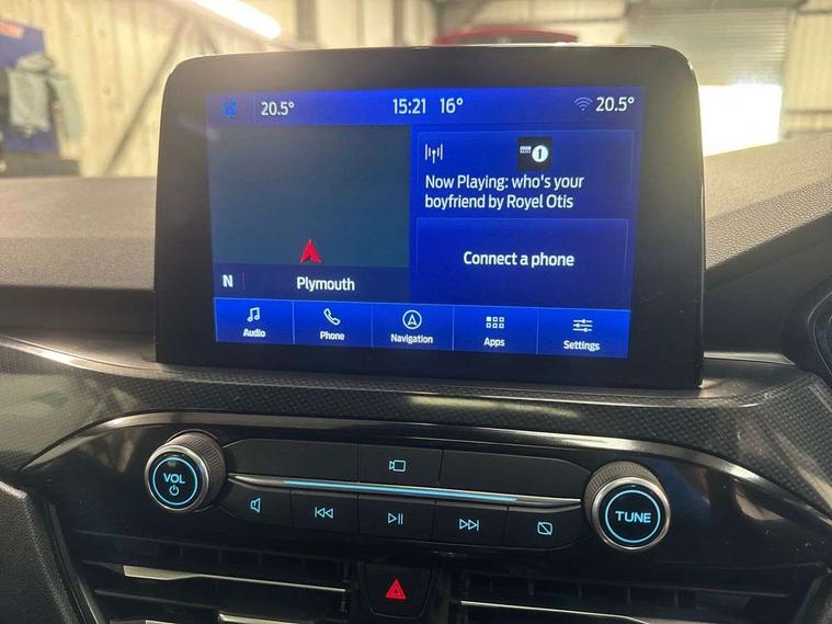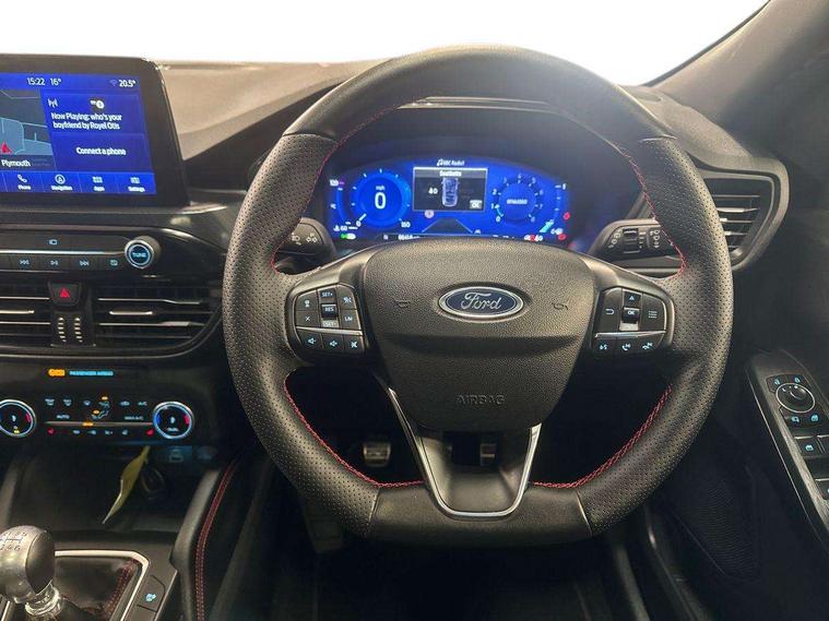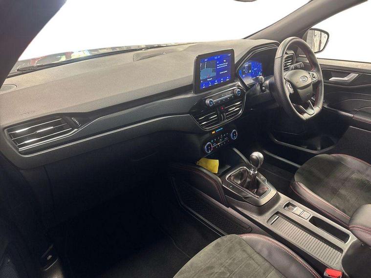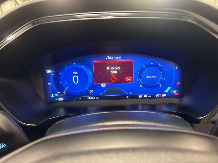 12.3" digital colour instrument cluster, Cruise control with adjustable speed limiter, Ford easy fuel, Ford SYNC 3 with 8" TFT LCD touchscreen, App Link, andriod auto/apple carPlay, emergency assistance and navigation with Ford pass connect, Front and rear parking sensors, Hands free power tailgate, Lane keeping aid with lane departure warning, Power assist steering, Rear view camera, Selectable drive modes, Service interval indicator, Sports suspension, Twist beam rear suspension, B&O premium audio system with 10 speakers and subwoofer, 2 USB ports, DAB radio/CD, Auto headlamps with high and low beam, Black roof rails, Body colour bumpers, Day/night rear view mirror, Front LED fog lamps, Large rear roof spoiler, LED daytime running lights, LED rear lights, Power folding, electrically adjustable and heated door mirrors with puddle lights, Power front/rear windows with global close, Power opening panoramic roof, Quickclear heated windscreen, Rain sensing wipers, Rear privacy glass, Rear side wing doors, Rear wiper, ST Line front scuff plates, Third brake light, Twin exhausts, 2nd row sliding seats with 60:40 split, Alloy pedals, Centre console with electronic parking brake, Dark headlining and pillars, Electronic automatic temperature control (EATC), Flat bottomed leather steering wheel in sensico with red stitching, Front and rear head restraints, Heated passenger and driver seats, Heated rear seats, Heated steering wheel, Partial premium touch Sensico with black cloth inserts and red stitching, Rear centre head restraint, Single front passenger seat, Sports seats, ST Line front and rear floor mats, ST Line gear knob, ST-Line body styling kit with black body styling elements pack, 3x3 point rear seatbelts, Airbags - front driver/passenger, front and rear curtain, Drivers knee airbag, Electronic stability control (ESC) and ABS, Ford MyKey Gen 2 safety system, Manual child proof rear door locks, Post collision braking, Pre collision assist with autonomous emergency braking, Rear seat Occupancy alert, Red brake calipers, Tyre pressure monitoring system, Engine immobiliser, Keyless entry and Ford power start button (Keyless start), Locking wheel nuts, Remote powered central double locking doors, Thatcham category 1 alarm, 20" Black Ford performance alloy wheels,