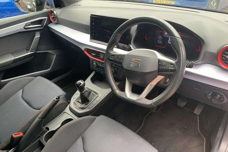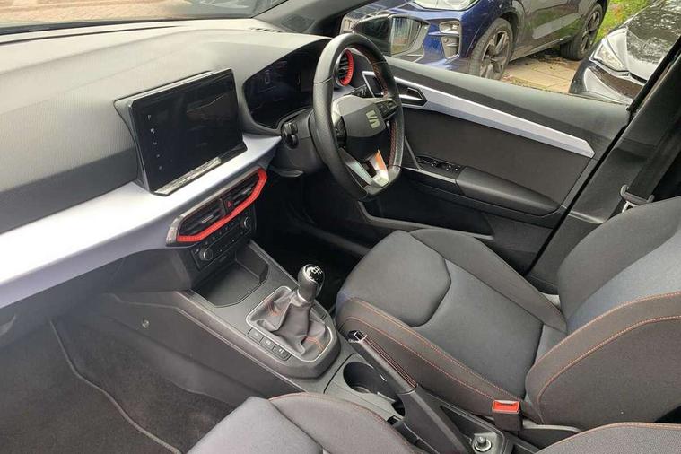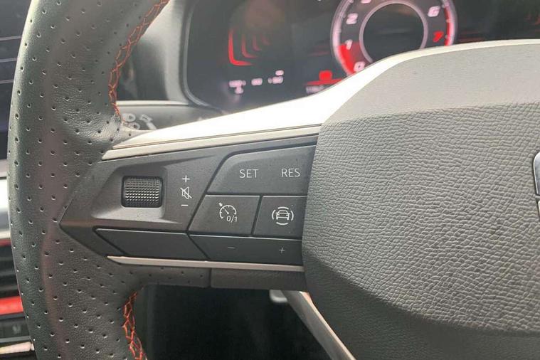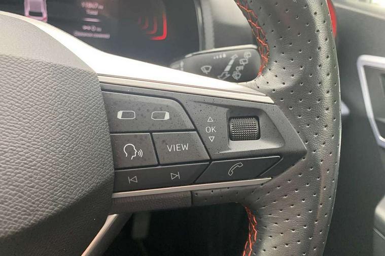 'Lights On' Reminder warning buzzer, 8" Digital cockpit, 9.2" touchscreen navigation system with type C USB socket, Voice control and DAB/AM/FM radio, Auto start and stop system, Bluetooth audio streaming with handsfree system, Digital clock, E-call, Full link smartphone integration with mirror link, wireless apple carplay, Google android auto + USB Type C cable for apple and android devices, Lane assist, Low fuel warning light, Outside temperature gauge, Power Steering, Seat connect with safety, service, remote and online, SEAT drive profiles and ECO function, SEAT logo boot release, Speed limiter, Trip computer, Sports suspension, Auxiliary input socket, Radio/MP3 player, SD card slot, Steering wheel mounted controls, Anti theft roof antenna, Auto dimming rear view mirror, Automatic rain sensing wipers, Black door mirrors, Body colour bumpers, Body colour door handles, Brilliant black window surrounds, Dark tinted rear windows, Electric adjustable/heated/folding door mirrors, Electric front windows, Electric headlight adjustment, Electric rear windows, Front/rear fog lights, FULL LED automatic headlights with dynamic headlight range control, coming and leaving home, LED daytime running lights, LED tail lights, Rear roof spoiler with FR twin exhausts, Rear side wing doors, Rear wiper, Third brake light, 3 seat bench in 2nd row, 60/40 split folding rear seat, Ambient interior lighting, Chrome detailing and black headlining, Cloth upholstery, Dual zone climate control with combination filter, Front courtesy lights, Front cupholders x 2, Front reading lights, Gear shift indicator, Glovebox, Height adjustable front and rear headrests (five), Height adjustable front seats, Height/reach adjust steering wheel, Illuminated air vent surrounds, Illuminated boot, Instrument lighting with brightness control, Isofix, Leather multifunction flat bottomed sports steering wheel, Passenger sunvisor, Single front passenger seat, Sports seats, Sunvisors with mirror and driver side card holder, 3 point seatbelts on all 3 rear seats, ABS, Active front headrests, Child locks on rear doors, Electronic stability control, Energy recovery system, Front assist forward collision warning and autonomous emergency braking, Front driver and passenger side airbags with curtain airbag and front passenger airbag deactivation, Hill hold control, Multi-Collision braking, Seat belt reminder for front and rear seats, Tiredness recognition system, Tyre pressure monitoring system, Electronic engine immobiliser, Locking wheel bolts, Perimeter alarm and interior monitoring with backup horn and tow away protection, Remote central locking + deadlocks, 17" Alloy wheels in Brilliant silver,