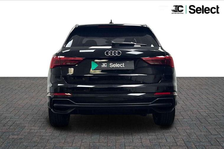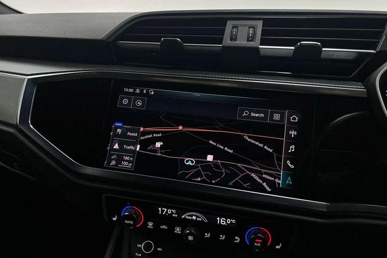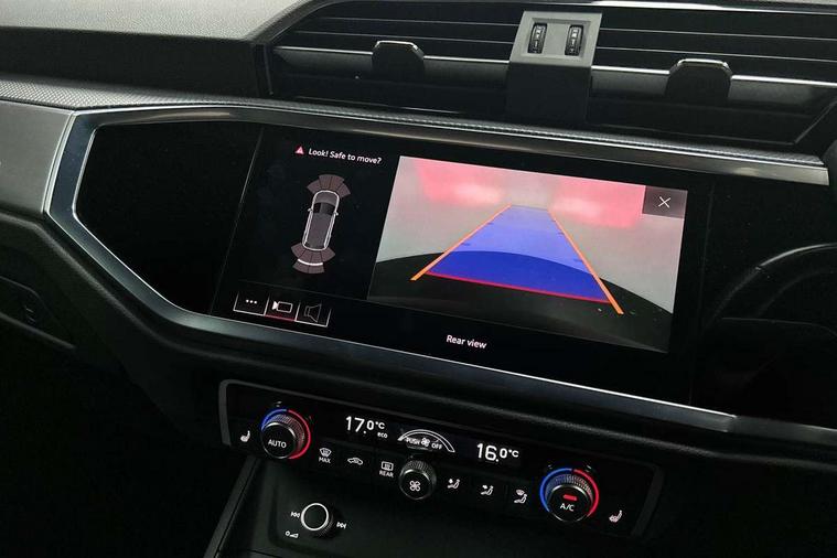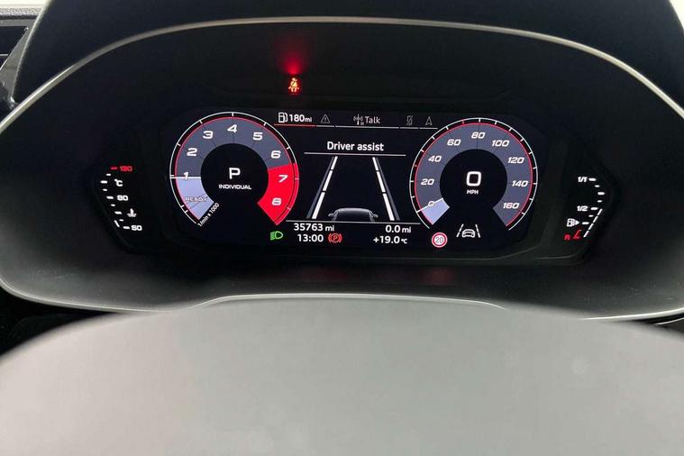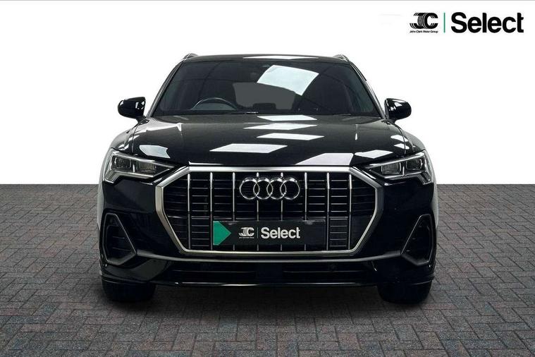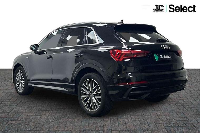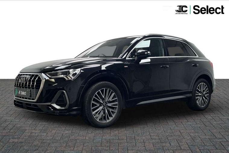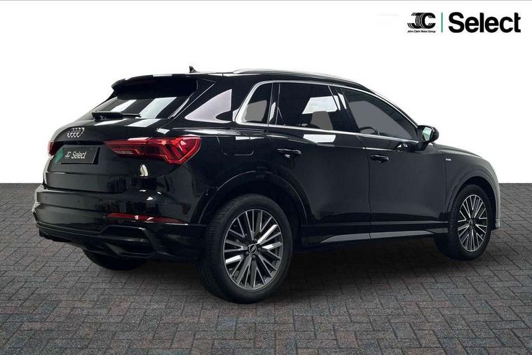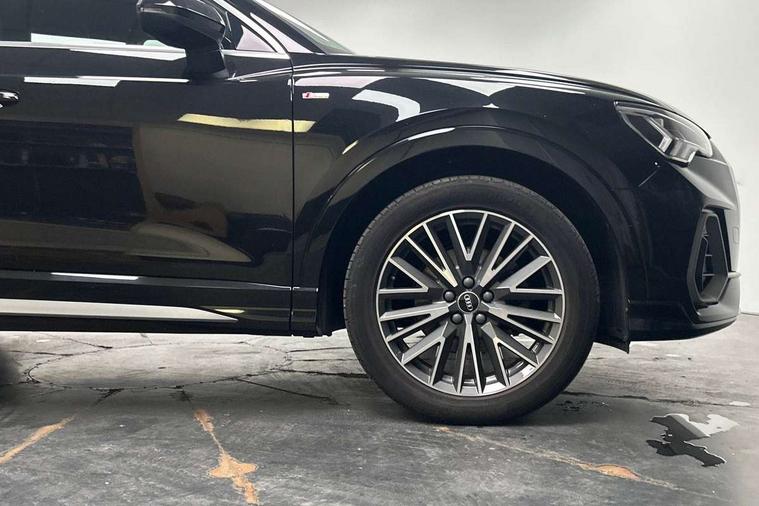 Audi connect safety and service (e-call), Audi drive select, Audi lane departure warning, Audi side assist, Audi Virtual Cockpit - 10.25" display, Bluetooth interface, Camera based traffic sign recognition, MMI Navigation Plus with high resolution 10.1 inch touchscreen colour display, Power operated tailgate, Progressive steering, Service interval indicator, Smartphone interface includes wireless Apple carplay/Android Auto, Start stop system with recuperation, Voice control system with natural language interaction, 48V Mild hybrid technology, Sports suspension, 1 x USB type C and 1 USB type A charging points, 6 passive loudspeakers, DAB digital radio module, Acoustic windscreen, Aluminium roof rails, Aluminium window trim, Auto dimming frameless rear view mirror, Body coloured bumpers, Electrically folding, adjustable and heated door mirrors with integrated LED side indicators and kerb view function for passenger side, Front and rear electric windows, Front fog lights, Front side air inlets in matt platinum grey, Front spoiler blade in matt platinum grey, Grille vertical bars in aluminium silver/Matt, High gloss black finish B and C pillars, LED headlights with LED daytime running lights and dynamic rear indicator, LED rear lights, Privacy glass dark tinted rear and rear-side windows (from B-pillar backwards), Rain and light sensors, Rear diffuser strip in matt titanium black, S line badges on front wings, S Line front and rear bumpers, Side skirt insert in matt Platinium grey, Silver chrome grille surround, Titanium black radiator grille, 12V socket in rear centre console, 40:20:40 folding with manual adjustment for 60:40 forwards/backwards position and backrest angle, Adjustable rear seat bench/backrest with centre armrest and cupholder, Black cloth headlining, Dual zone electronic climate control, Front and rear black floor mats with contrast stitching in rock grey, Front and rear headrests, Front and rear roof module including reading lights, Front centre armrest, Glove compartment lighting, Height and reach adjustable steering wheel, Illuminated door sill trims with S logo, ISOFIX child seat mounting for front passenger with airbag deactivation and outer rear seat including top tether attachment point for outer rear seats, Luggage compartment light, Manual front seats with height adjustment, Perforated leather gearknob, Stainless steel luggage compartment sill finisher, Stainless steel pedals, Non smoking pack - Q3, 3x3 point rear seatbelts, 6 airbags - Driver, front passenger, curtain and side windows, Audi pre-sense front with pedestrain and cyclist recognition, Electrically operated child locks on rear doors, Electromechanical parking brake, Electronic stabilisation control including ABS, ASR and EDL, Hill descent control, Hill hold assist, Pre sense basic, Seatbelt monitoring, Tyre pressure warning, Warning triangle and first aid kit, Anti theft alarm, Anti theft wheel bolts, Remote central locking, Dark matt brushed aluminium inlay, Detail dashboard around MMI touch colour display in glass look, black with surround in aluminium look, Leatherette door armrest, Tool kit, Tyre repair kit,