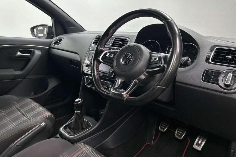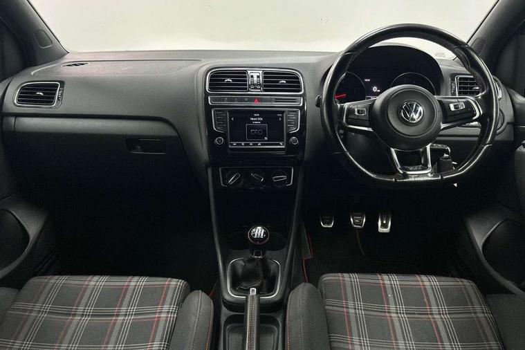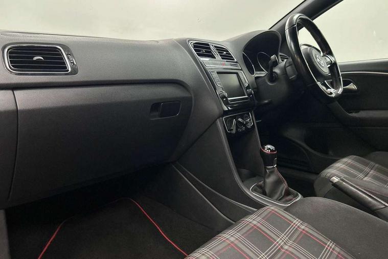 'Lights On' Reminder warning buzzer, Bluetooth Telephone preparation, Driver alert system, Multi function display, Multifunction computer, PAS - speed related, Service interval indicator, Warning buzzer and light for front seatbelts unfastened, XDS electronic differential lock, 6 speakers, Composition media system with radio, glovebox mounted CD, colour touch screen, SD card, aux-in, USB, multimedia interface, DAB Digital radio, Body colour bumpers, Body colour door handles, Body colour door mirrors, Body colour rear spoiler, Body coloured side sills, Electric front windows, Electric operated/heated door mirrors, Front fog lights with static cornering function, Front wash/wipe with interval delay, Heat insulated tinted glass 65% light absorbing from B pillar back, Heat insulating tinted glass, Heated rear window with auto timer, LED headlights with auto range adjustment, headlight wash, low washer fluid warning, LED daytime running lights, LED rear number plate lights, Rear windscreen washer and wiper with interval delay, Stainless steel door sill protection, Twin chrome exhaust tailpipes, 12V power socket in centre console, 2 bag hooks in luggage compartment, 2 cupholders, 3 rear head restraints, 3 spoke steering wheel, 4 grab handles, 60/40 split folding rear seat, Aluminium pedals, Black roof lining, Centre console storage, Driver and passenger sunvisors, Driver seat height adjust, Driver/front passenger seat height adjustment + underseat drawers, Dust/pollen filter, Easy entry slide seats (access to rear seats), Floor mats with red stitching, Front door pockets, Front passenger seat height adjust, Front seat backrest storage nets, Front sport seats, Front/rear reading lights, Glovebox, Height/reach adjustable steering column, Illuminated vanity mirror, Interior light with delay, Isofix Preparation 2 Rear child seats, Luggage compartment cover, removable, Luggage compartment lighting, Matt chrome gear lever gaiter surround, Matt chrome internal door handles, Multifunction leather steering wheel with leather gear knob/handbrake grip, Storage compartment in front doors, Sunglasses holder, Variable boot floor, GTI styling pack - Polo, 3 point height adj front seatbelts + pretensioners, 3x3 point rear seatbelts, Automatic post collision braking, Driver/front passenger airbag, Driver/Passenger whiplash optimised head restraints, ESC - Electronic Stability Control + traction control, ESP with EDL + ASR, Hill hold control, Hydraulic Brake Assist (HBA), Red brake calipers, Tyre pressure monitoring system, Alarm with interior protection, Electronic engine immobiliser, Remote central locking with 2 remote folding keys, Air vents in Matt chrome, Black high gloss trim, Space saver spare wheel,