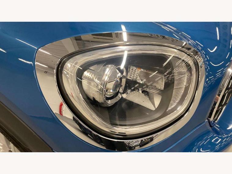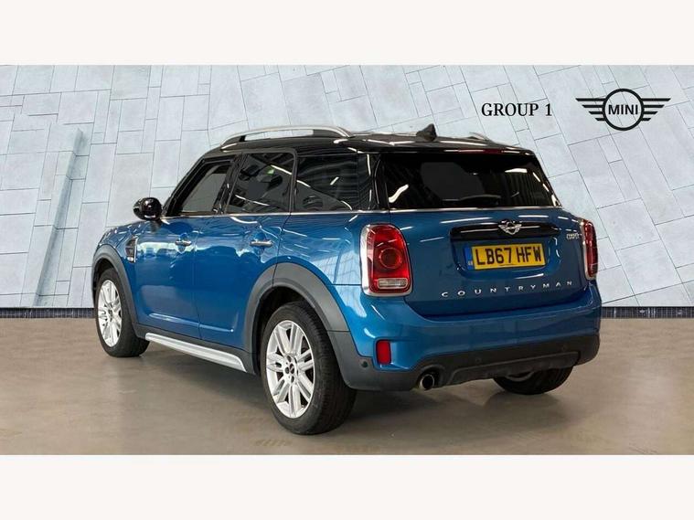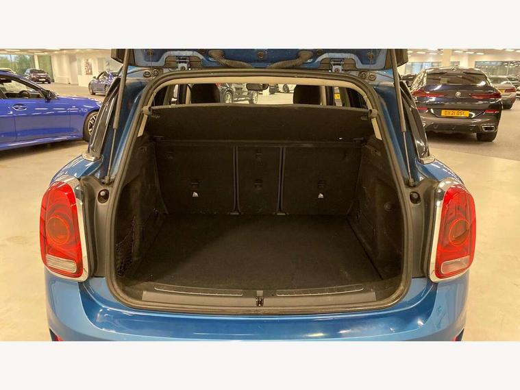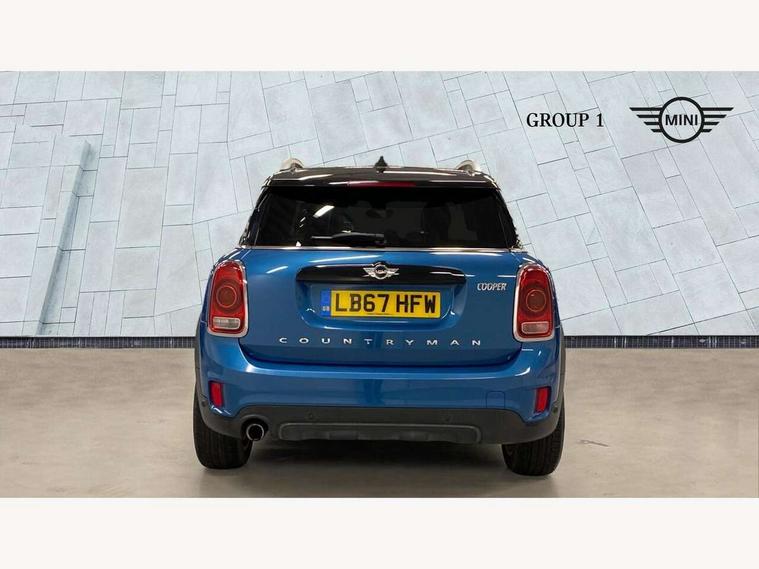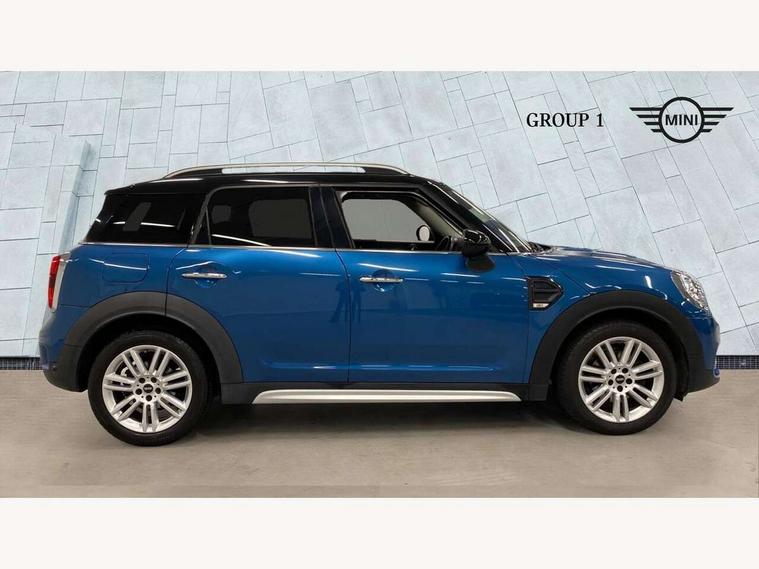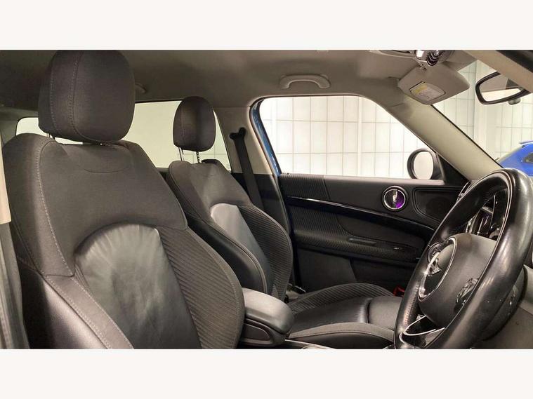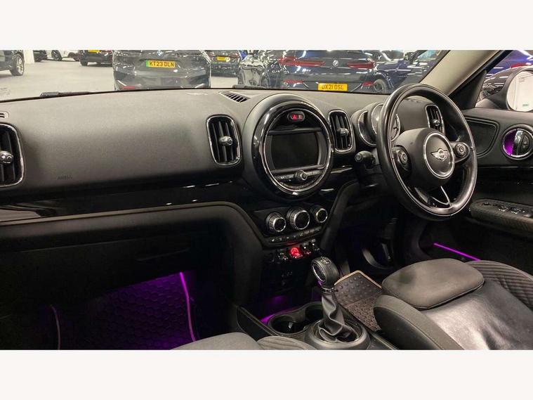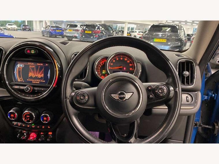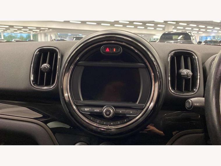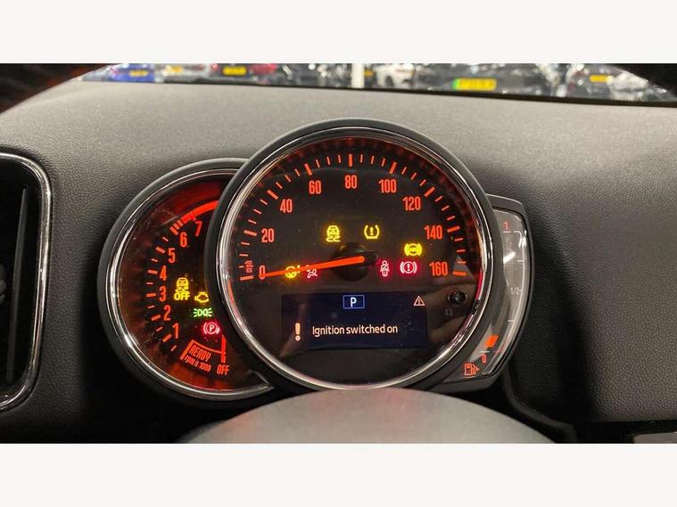 Brake pad wear indicator warning light, Central display with LED ring and 6.5" colour touch screen, DTC - Dynamic traction control, Exterior temperature gauge, Intelligent emergency call, MINI TeleServices, Navigation system, On board computer, Personal Profile, Service interval indicator, Servotronic speed sensitive power steering, Electronic differential lock, Auxiliary input socket, DAB digital radio module, MINI Connected, MP3 compatible radio/single CD player, Radio visual boost, Anti dazzle rear view mirror, Blue tinted glass, Chrome door handles, Chrome exhaust tailpipe, Chrome headlight surround, Chrome plated radiator grille, Chrome window surround, Electric front windows + one touch + anti-pinch, Electrically adjustable door mirrors, Follow me home headlights, Heated door mirrors/heated windscreen washers, Heated rear window with automatic switch off, Metal look door sill finishers, Rain sensor including auto headlights activation, Rear wiper, Roof spoiler, White indicator lights, 12V power point front, 2 cupholders in front centre console, 4 lashing points to secure luggage, 40:20:40 split folding rear seats, Centre console storage box, Chrome interior door handles, Driver/passenger sunvisors, Front and rear headrests, Front and rear Isofix child seat preparation, Front and rear velour floor mats, Front centre armrest with storage compartment, Front interior light, Front passenger grab handle, Front seat backrest storage nets, Heater with recirculation function, Height/reach adjust steering wheel, Luggage compartment lighting, Multifunction steering wheel, Rear grab handles, Sensatec gearshift and handbrake, Storage compartments in doors, Toolkit in luggage compartment, Interior lights pack - Countryman, MINI Excitement Pack - Countryman, 3 point automatic seatbelts, 3 point seatbelts on all rear seats, ABS, Cornering brake control (CBC), Crash Sensor - activates hazard/interior lighting + unlocks doors, Driver and passenger airbags, Driver and passenger side airbags, DSC - Dynamic Stability Control, Electronic brake force distribution, Electronic parking brake, Front curtain airbags, Front passenger airbag deactivation, Fuel cut off safety device, Hill start assist, Pyrotechnically pre-tensioned front seatbelts, Tyre pressure warning, Automatic door locking, Keyless Start, Locking wheel bolts, RF remote control central locking, Second remote key, Thatcham category 1 alarm + immobiliser,