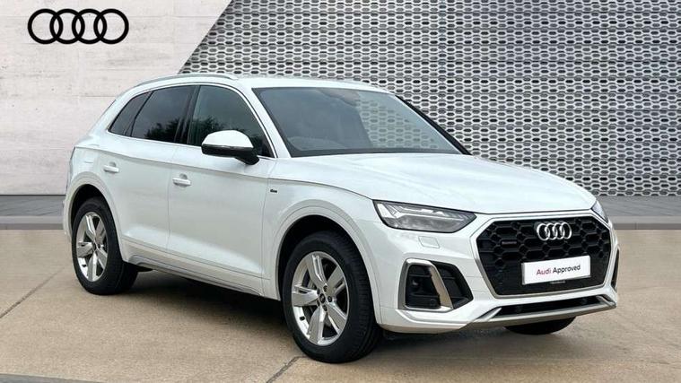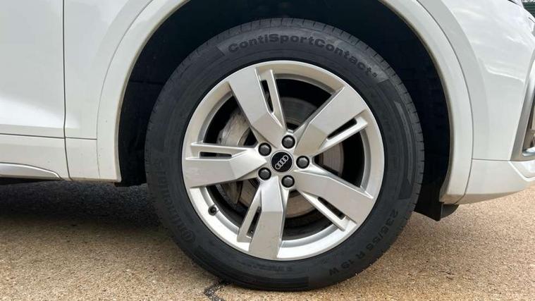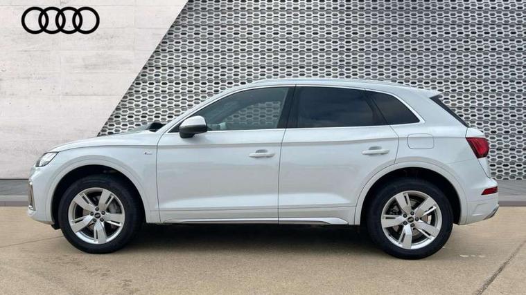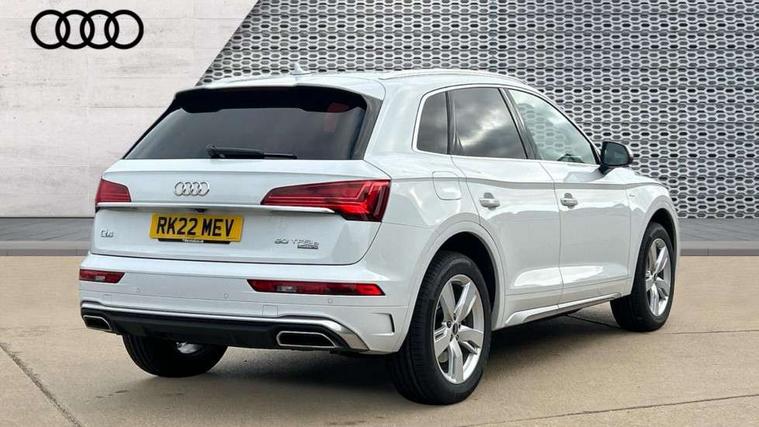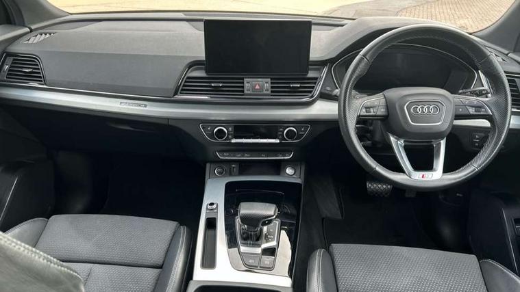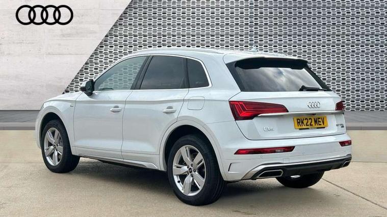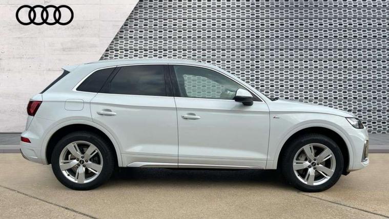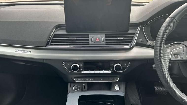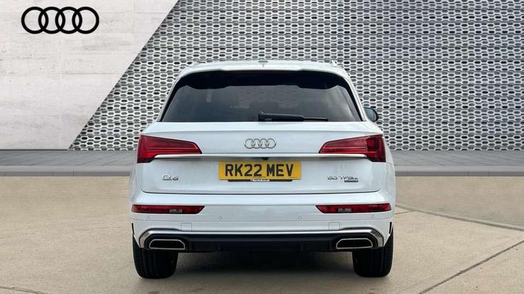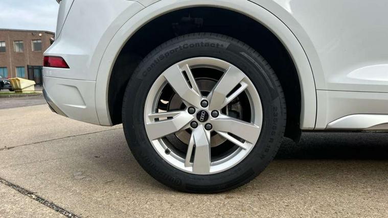 Audi connect safety and service (e-call), Audi connect with Amazon Alexa Integration, Audi drive select, Audi virtual cockpit plus with 12.3" screen and three different layout designs, Audi wireless smartphone interface, Automatic start-stop system with coasting functionality and efficiency programme, Bluetooth interface, Electro - mechanical power assisted steering, MMI navigation plus with 10.1" touch screen, Power tailgate, Reversing camera, Service interval indicator, Voice control system with Audi hotword activation "Hey Audi", 3 pin 10 amp domestic charging cable, 7.4 kW onboard charger, Dynamic suspension, Quattro on demand, Type 2 mode 3 22kW 32 amp charging cable, Type 2 socket for AC charging, 2 x USB charging port with aux input socket, DAB Digital radio, 3rd brake light, Acoustic windscreen, Aluminium roof rails, Audi matrix LED headlights with dynamic front and rear indicators, Auto dimming door mirrors, Auto dimming rear view mirror, Automatic headlights and windscreen wipers, Body colour bumpers, Body colour door mirrors, Body colour rear diffuser with matt aluminium silver surrounds, Body colour underbody protection, Chrome plated exhaust trims, Daytime running lights, Door sills in Selenite silver, Electric adjustable/heated/folding door mirrors, Front air inlet surrounds in aluminium, Front and rear electric windows, Front radiator grille in honeycomb design, Headlight washers, Lower bumpers painted in contrast Manhattan grey, Rear chrome trim strip below lights, Rear privacy glass and rear side windows, Rear side wing doors, Rear wiper, Roof bars, S Line badges on the front wings, S Line front and rear bumpers, S Line rear spoiler, S Line side skirts, 3 rear headrests, 40:20:40 split folding 3 rear bench seat in 2nd row with rear centre armrest, Black cloth headlining, Comfort front centre armrest, Contrast stitching on seats, steering wheel and gear lever gaiter, Deluxe 3 zone electronic climate control, Front/rear floor mats, Gear lever in black leather, Heated front seats, Height adjustable front head restraints, Height/reach adjustable steering column, Illuminated door sill trims with S logo, ISOFIX child seat mounting and top tether, Manual seat adjustment with 4-way electric lumbar support, Rear seat bench plus, Single front passenger seat, Sunvisors with vanity mirrors, Trunk roller cover, High gloss pack - Q5, LED interior light pack - Q5, 3 point seatbelts on all seats, 6 airbags - Driver, front passenger, curtain and side airbags, Electrically operated child locks on rear doors, Electromechanical parking brake, Electronic stabilisation control including ABS, ASR and EDL, Front passenger airbag deactivation, Hill descent control, Hill hold assist, Multi collision brake assist, Pop-up bonnet for pedestrian protection, Pre sense city, Seat belt force limiter, Seatbelt monitoring, Tyre pressure warning, Warning triangle and first aid kit, Anti theft alarm, Anti-theft wheel bolts, Keyless Go access/ignition system, Remote central locking, Matt brushed aluminium inlays, Tool kit, Tyre repair kit,