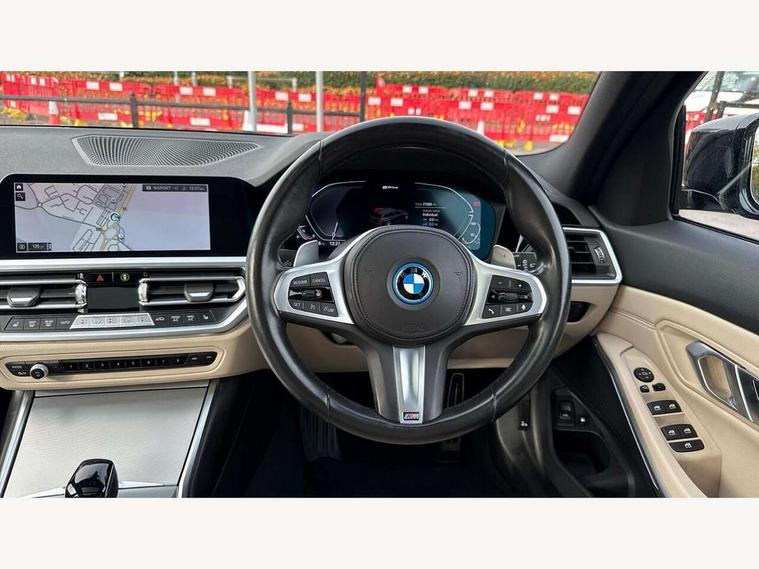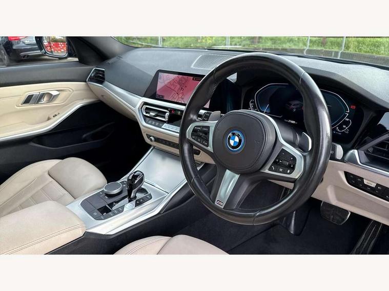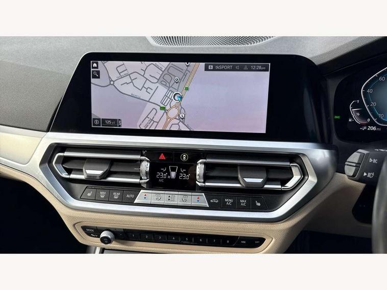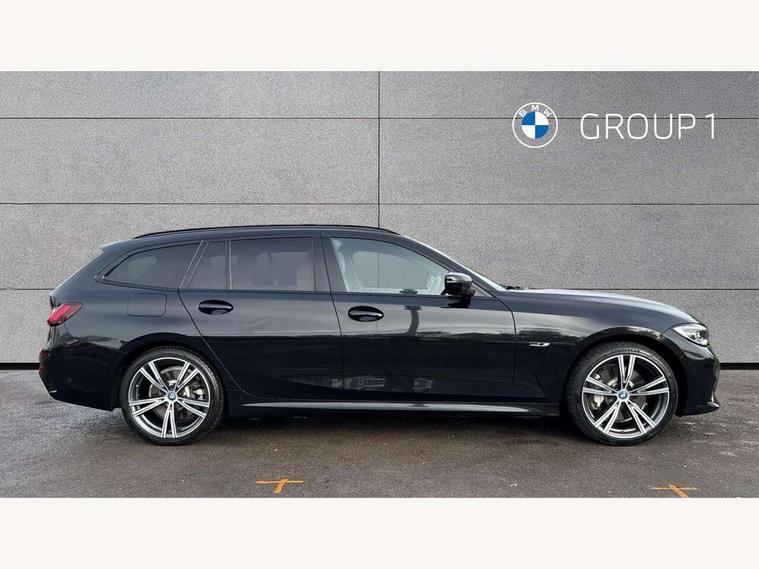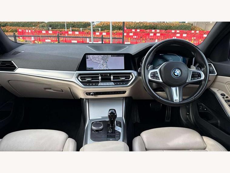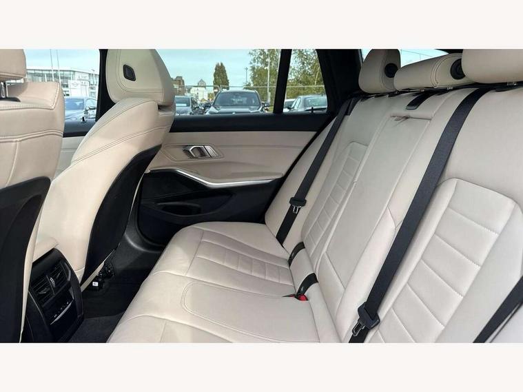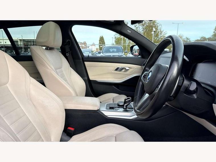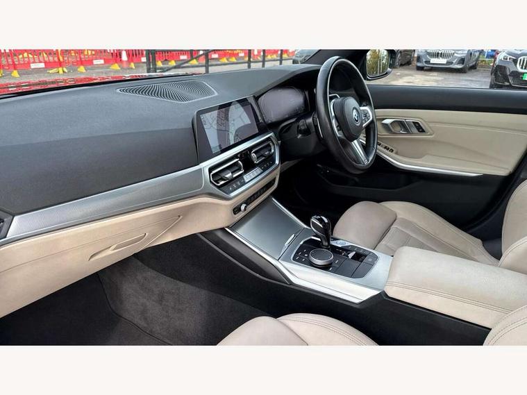 Active guard plus, Attentiveness assist, Auto start-stop, Bluetooth hands free facility with USB audio interface with audio streaming, BMW ConnectedDrive oline services with BMW apps, BMW iDrive controller on centre console, BMW service history, BMW Teleservices, Brake pad wear indicator in front and rear, Check Control warning system for monitoring of lights and door/luggage compartment open warning, Condition based service, Cruise control with brake function + speed limiter, Electric power steering with Servotronic steering optimised at all speed ranges, Gearshift time display in manual mode, Instrument cluster with speedometer with mph readout, tachometer, fuel gauge and oil temperature gauge, Integrated owners handbook, Oil sensor for level and grade, warning by check control system, On board computer - average speed+fuel consumption, service interval, clock/date, odometer/trip meter, outside temperature display and ice warning, Optimum shift indicator, Personal Profile - automatic lock when driving away selectable, Balanced 50/50 weight distribution, Battery cut-out switch, Charging cable - Mode 2, Drive performance control - ECO PRO, comfort and sport modes, EU6 emissions management, Stroke dependent dampers, DAB tuner, Electronic service booklet, Stereo speaker system with 2 mid range speakers in the front door trims and rear parcel shelf + 2 central bass speakers underneath the front seats, Acoustic glazing, Active airstream chrome frame kidney grille with 8 high gloss black vertical slats, Automatic headlight activation/adjustment, Automatic headlight beam throw control with load dependent regulating reaction, dynamic compensation of braking dive and acceleration squat, Black roof mouldings, Body colour door handles, Body colour fuel filler flap, Body colour mirror caps with bottom segment in matt black, Dynamic brake lights, Electric windows - front and rear, with open/close fingertip control, anti-trap facility and comfort closing, Exhaust tailpipe - split left and right, Exterior mirrors - electrically folding with anti-dazzle, Fading support, Front and rear bumper system with replaceable deformation elements, Front black door sill finishers with BMW designation, Green tinted heat protection glazing, High gloss black exterior B pillar, Interior rear view electrochromatic mirror with automatic anti dazzle function, LED daytime running lights, LED front fog lights, Lightweight engineering, M designation on front side panels, left and right, Model designation on right side of tailgate, Rear wiper, Shark fin antenna, Two part LED tailights in L-shape with components in smoked glass, brake light, LED turn indicator and rear fog light, Visible VIN plate, Welcome lights in interior and door handle area, Windscreen wipers with integrated washing jets, 12V power socket in front storage compartment, 2 front cupholder in centre console with clamping elements and matt black inlay, 3 zone automatic air conditioning, 4 pieces lashing eyelets in luggage compartment, 40:20:40 split folding rear seat with loading system, Ambient lighting with welcome carpet light, Anthracite headlining, Armrest integrated in front and rear door trim + front centre console armrest, Backrest width adjustment, Centred top Luggage compartment lights, Four grab handles integrated in roof lining, Front and rear door exit lighting (left / right), Front and rear door pockets, Front and rear reading lights, Front and rear velour floor mats, Front head restraints, Front sport seats, Heated front seats, Height adjustable mechanically and infinitely variable steering column, Illuminated armrest storage compartment, Illuminated glove compartment with separate small compartment, Interior lighting - front centre over interior mirror with soft light, rear centre and front and rear footwell lighting, Make-up mirror lights, Rear centre armrest with 2 cupholders, Rear centre console with storage compartment and ventilation grille, Sunvisors with vanity mirrors and ticket pocket, Three spoke multifunction M sport leather steering wheel, Toolkit located in luggage compartment, Connected pack professional - 3 Series Saloon/Touring, Live cockpit professional pack - 3 series, M sport exterior styling pack - 3 Series Saloon/Touring, 2 tone horn, 3 rear seats with non folding headrests, Airbags activation controlled with intensity and scope, BMW emergency call, Brake energy regeneration, Braking pre-tensioning, Child proof locking system in rear door, Child seat ISOFIX attachment rear outer seats, Coasting in idle in ECO PRO mode, Crash sensor activating of airbags, Unlocking doors, hazard warning lights, fuel cut off, interior lighting+activation of safety battery terminal clamp, Deactivation of fuel pump in the event of a crash, Driver and front passenger side airbags, integrated in the door side seat backrest bolsters for all seat variants, Driver/Front Passenger airbags, Dry braking, Dynamic brake control, Dynamic stability control + (DSC+) - Anti-lock Braking System (ABS) with brake assist and cornering brake control + Automatic Stability Control (ASC), Dynamic Traction Control - DTC, Electric parking brake including automatic hold function and automatic release of the parking brake when driving off, Electronic differential lock control (EDLC), Front passenger manual airbag deactivation, Head airbags for all 4 outer seats, Hill start assist, Seat belt security check for driver and front passenger, Side impact protection, Three 3 point seat belts on all seats including front belt stopper, pyrotechnic belt tensioners and belt force limiters, Tyre pressure monitoring with three level warning strategy, Ventilated front and rear disc brakes, Warning triangle and first aid kit, Alarm system (Thatcham 1) with remote control and electronic engine immobiliser, Central locking switch for all doors, fuel filler cap and luggage compartment, Remote control with integrated key one button open/close vehicle and windows, sole opening of the lugg