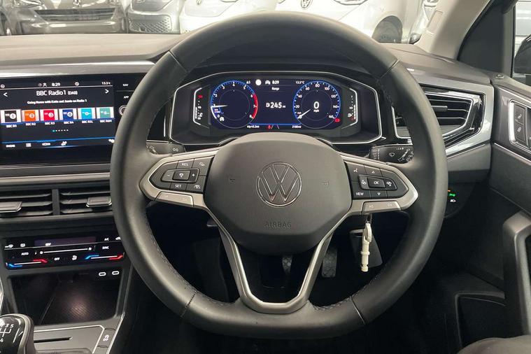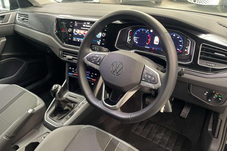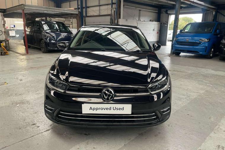 Adaptive cruise control without follow-to-stop and speed limiter, Bluetooth mobile phone interface, Digital Cockpit Pro with 10.25" Display, Driver alert system, Dynamic road sign display, Emergency call service, Power assisted speed sensitive steering, Preparation for We connect and We connect plus, Speedo and rev counter, electronic odometer, trip, service interval display and fuel gauge, Standard rear axle, Travel Assist - Lane keeping system and traffic jam assist, Travel assist including emergency assist, Trip computer, Warning signal and warning light for front and rear seatbelts not fastened, Washer fluid level indicator, Wireless app connect, Front wheel drive, Rear shock absorpion, Start-stop system with battery regeneration (recuperation - energy recovery during braking), DAB Digital radio, Diversity antenna for FM reception, Front and rear 6 speakers, Automatic dimming interior rear view mirror, Automatic headlights, Body colour door handles, Body coloured bumpers and radiator grille with chrome trims, Chrome plated radiator grille inserts, air vent surrounds and light switch surrounds, Electric front windows, Heat insulating glass in side and rear windows, Heat insulating glass windscreen, LED separate daytime running lights with coming/leaving home function, Power folding adjustable/heated exterior mirrors and front passenger exterior mirror lowering function, Rain sensor, Rear electric windows, Rear fog light, Rear side wing doors, Rear windscreen washer and wiper with interval delay, Third brake light, 12V power socket in centre console, 2 USB-C ports in the front, 2 USB-C charging sockets on the center console in the rear, 3 rear head restraints, 60/40 split folding rear seat and rear seat bench not split, Air care climatronic air conditoning system with active combination filter and 2-zone temperature control, Ambient lighting, Ceramique headliner, Door and side trim panel, Driver and front passenger seat height adjustment, Driver/passenger sunvisors with illuminated vanity mirrors, Front + rear carpet mats, Front centre armrest, Front footwell illumination, Front seat backrest storage pockets, Front sports comfort seats, Handbrake lever handle in leather, Isofix child seat preparation easy-fit (for two outer rear seats, and front passenger seat) compatible with I-size, Leather trimmed gear knob, LED interior light with switch off delay and dimmer, 2 reading lights front and rear, Luggage compartment cover, Luggage compartment floor, Luggage compartment lighting, Lumbar adjustment for front seats, Multifunction steering wheel, Single front passenger seat, Standard pedal cluster, IQ LED matrix headlights pack - Polo, Light and vision pack - Polo, 3 point height adj front seatbelts + pretensioners, 3x3 point rear seatbelts, ABS, Driver and front passenger airbag with front passenger airbag deactivation, Drivers and front passengers safety optimised head restraints, ESC (Electronic stability control) + EDL (Electronic Differntial lock) and ASR (Traction control), Extended and predictive pedestrian/ cyclist protection, Front curtain and side airbags with center airbag, Front disc brakes, Hill hold control, Manual child lock in rear doors, Rear drum brakes, Single tone horn, Tyre pressure loss indicator, Alarm with interior protection, Anti-theft alarm system with interior monitoring, backup horn, and towing protection, Anti-theft wheel bolts, Electronic engine immobiliser, Chrome applications on rotary light, mirror adjustment, window regulator switches, outlet with frame in black, Deep iron gloss decorative inserts in dash and front door panels, Low rolling resistance tyres,