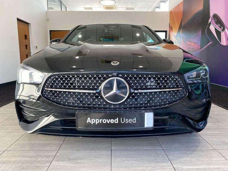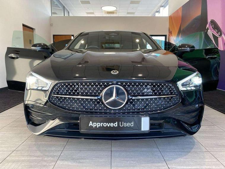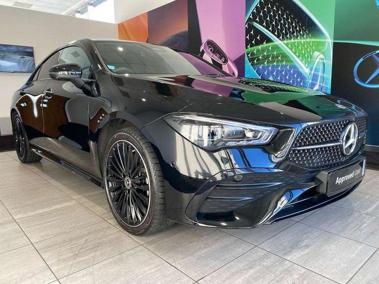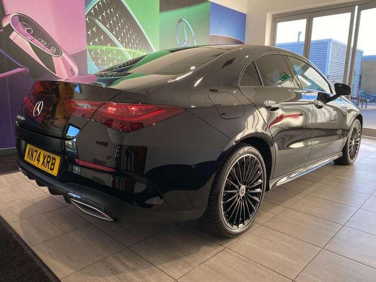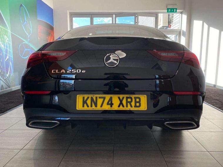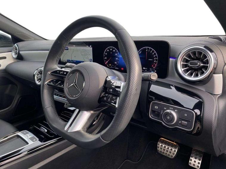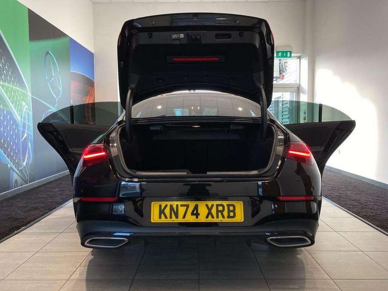 10.25 inch Instrument display with digital cockpit, 10.25 inch touchscreen central media display, Acoustic ambient protection, Active lane keeping assist, Attention assist - Monitors steering behaviour and long journey fatigue, Bluetooth connection, Car wash mode, Cruise control with limiter, Direct steer system, DYNAMIC SELECT with a choice of driving modes (ECO, Comfort, Sport and Individual), ECO start/stop function, Fingerprint sensor, Fluid level warning indicator for fuel, oil, coolant and washer fluid, Hard-disk navigation, Head up Display, Hey Mercedes Voice activation, Lamp failure indicator, MBUX augmented reality for navigation, Mercedes me connect including emergency call system, accident recovery, breakdown and maintenance management, Mercedes me remote and charging services plus, Outside temperature gauge, Owners manual in English, Pre-installation of private car share, Radio aerial integrated into front and rear windshields, Service indicator (ASSYST), Smartphone integration with Apple CarPlay and Android auto, Traffic sign assist, Trip computer in multifunction display with current consumption indicator, Wireless charging in the front centre console, Charging system - AC charging system rated at 11kW, Charging system - DC charging system rated at 22kW, Comfort suspension, Mode 3 charging cable for wallbox and public charging stations with 5m upto 11kW, Rear axle torsion beam, Burmester lettering on the speakers, Burmester surround sound system (710W) with dolby atmos, speakers - 1 central, 1 woofer, 1 tweeter, 1 subwoofer with 60W, 2 in C pillar, DAB digital radio tuner, MBUX multimedia system, Pre installation for Mercedes Benz Link, Adaptive brake lights, AMG body styling with AMG front apron and rear apron and visible exhaust tailpipe in chrome trim elements, Body colour door handles, Electric panoramic sunroof with automatic tilt and convenience closing fuinctions, rain sensor auto closing and electronic roller sunblind, Electric windows, Electrically adjustable and heated door mirrors with integrated LED indicators, Exhaust system with 2 Visible tailpipe trim elements and rear apron with trim in chrome, Hand free access, Headlamp assist automatic headlamp activation, Heated glass rear windscreen + timer control, High level LED third brake light, Integrated LED daytime running lights, Interior mirror with black reading lamps and frameless, LED tail lamp, Multibeam LED headlamps with adaptive highbeam assist plus, Privacy glass with dark tinting on rear side windows and rear window, Radiator grille with Mercedes-Benz pattern in chrome and central Mercedes star, single louvre in high-gloss black with chrome inserts, Rain sensing windscreen wipers with two sensitivity settings, Rear boot, Rear fog lamp, Rear side wing doors, Variable front intermittent wipers, 3 seat bench in 2nd row, 3 twin spoke flattened multifunction steering wheel in nappa leather - horizontal twin spoke in high gloss black, vertical twin spoke in silver chrome, 40:20:40 split folding rear seat backrests, Air conditioning - Two zone thermotronic luxury automatic climate control with display, Air vents with surround in silver chrome, Automatic child seat recognition sensor, Black roof lining, Brushed stainless steel sports pedals with rubber studs, Charging socket, Electrically adjustable front memory seats including 4 way lumbar support, Floor mats with stitched AMG lettering, Fluorescent jacket, Front centre armrest with stowage, Galvanished gear shift paddles in silver chrome, Illuminated front door sills with Mercedes Benz lettering and changeable cover, Interior lighting - 64 colour Ambient lighting, Luggage net on driver/front passenger seat backrest, Manually height and reach adjustable steering column, Pre-entry climate control, Rear armrest with two integral cup holders for drinks, Rear head restraints, Single front passenger seat, Sport seats with fixed head restraints, Stowage compartment in centre console with retractable cover, Sunvisors with illuminated vanity mirrors, Twin front cupholders, Two outer rear seat isofix and top tether child seat fixing points, Keyless go comfort pack - CLA, Light and sight pack - CLA, Mirror pack - CLA, Night package - CLA, Parking pack with 360 degree camera - CLA, Seat comfort pack - CLA, USB package plus - CLA, Winter pack - CLA, Active bonnet pedestrain safety measure which detects an impact and raises bonnet by 65mm, Adaptive brake assist with hold function and hill start assist, Anti lock braking system (ABS) with brake assist, Black seat belts, Bonnet with power domes, Brake calipers with Mercedes-Benz lettering, Brake pad wear warning indicator, Childproof locks manually operated for rear doors and electrically operated for rear power windows, Crash responsive emergency lighting, Driver and front passenger head and sidebags, Driver and front passenger windowbags, Drivers knee airbag, Dual stage driver and front passenger airbags, Electric parking brake, Electronic stability programme with acceleration skid control, ESP curve dynamic assist, Exit warning, Front and rear seatbelt reminder, Front passenger seat occupancy sensor, Perforated front brake discs, Radar-based recuperation, Sports braking system, Three point rear seat belts, Tyre pressure monitoring system, Warning triangle and first aid kit, Alarm system with immobiliser and interior protection -Thatcham category 1, Guard 360 deg vehicle protection - tow away protection with visual, acoustic warning, interior monitoring, preinstallation for parking damage, Remote central locking and crash sensor with emergency opening function, Light aluminium with longitudinal grain interior trim, 19" AMG multi-spoke black painted light alloy wheels with high sheen rim finish, Summer tyres, Tirefit tyre sealant kit,