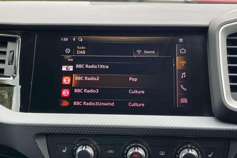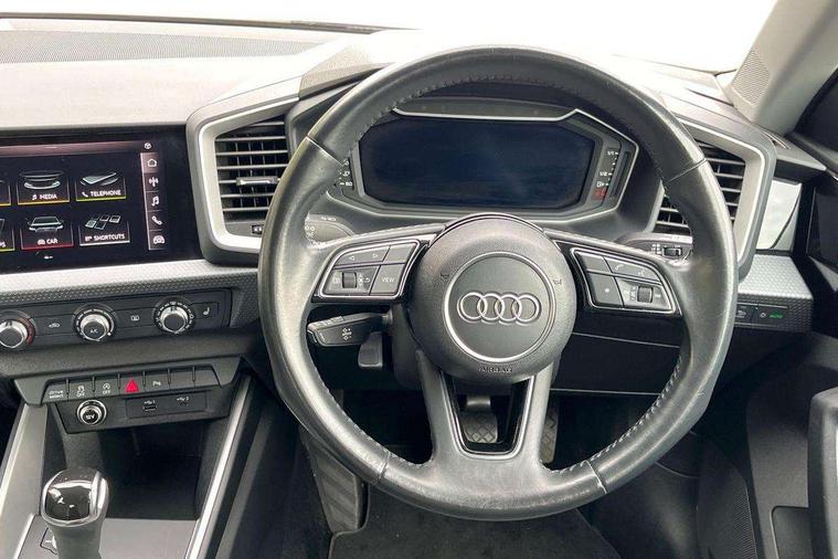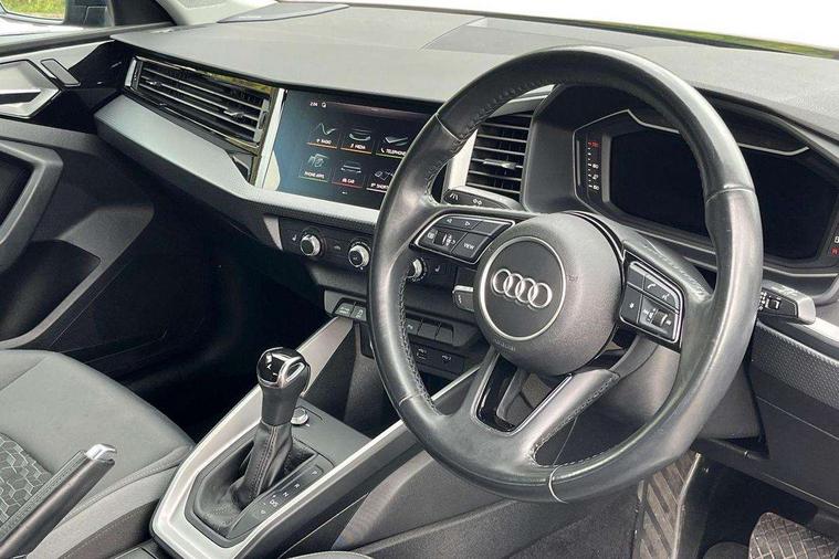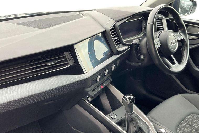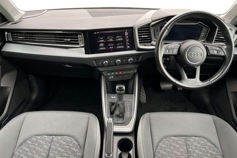 10.25" Digital instrument cluster display classis style instrument dials + speed, odometer, time, outside temperature, telephone menu + fuel level warning, Audi connect safety emergency and service including E-call, Audi drive select - power steering assistance + engine + gear shift 3 preset modes (auto, dynamic, efficiency and an Individual mode), Audi smartphone interface with connect compatible smartphone via USB directly MMI display + Nav, music, third party apps controlled via MMI controller, Automatic start/stop system, Bluetooth interface, Cruise control, Driver's information system, Electromechanical power steering, Lane departure warning system, Rear parking sensor, Service interval indicator, Speed limiter, Voice control system, Washer fluid level indicator, Dynamic suspension, 1 x SDXC card reader, 1 x USB type C and 1 USB type A charging points, DAB Digital radio, MMI radio plus with 8.8" colour MMI display screen and MMI touch, Auto dimming rear view mirror, Body coloured bumpers, Body coloured door mirrors, Electric front and rear windows, Electrically adjustable, heated, folding door mirrors with integrated LED side indicator, Front side air inlets in grained matt black and C frame in titanium black, Heat insulating glass windscreen and side windows, Heated rear windscreen, LED headlights with LED rear lights + dynamic rear indicators + headlight adjustment and high beam, turning light + LED daytime running lights, Radiator grille and rear diffuser in matt titanium black, Radiator protective grille frame in matt aluminium silver, Rain and light sensors, Rear fog lights, Rear wiper, Scandium grey tailpipe trim, Side front spoiler lips in grained matt black, 12V socket in centre console with two cup holders, 3 rear seats with headrests, 40:60 Split folding rear seat or folded fully, Door sill trims with aluminium inlay, Driver and passenger seat with manual height adjust with forward and backwards adjustment, Front head restraints, Front/rear floor mats, Height and reach adjustable steering wheel, ISOFIX child seat mounting for front passenger and outer rear seats including top tether attachment point of outer rear seats, Leather gear knob with aluminium trim, Leatherette handbrake grip, Luggage compartment light with front and rear reading lights, Manually adjustable lumbar support in front seats, Novum cloth upholstery with front sport seats, Titanium grey cloth headlining, Luggage compartment pack - A1, 3x3 point rear seatbelts, Audi pre-sense front with pedestrain and cyclist recognition, Brake assist function, Driver and front passenger airbag with front side and head airbags, Electronic Stability Control including ABS, EBD, ASR and EDL, Front and rear seatbelt reminder, Front passenger airbag deactivation switch, Hill hold assist, Seatbelt height adjustment for front seats, Seatbelt monitoring, Tyre pressure warning light, Warning triangle and first aid kit, Anti theft alarm, Anti theft wheel bolts and loose wheel warning, Immobiliser, Remote central locking with 2 foldaway keys, Aluminium trim for control switches, air vents and digital instrument cluster, Silver grey accent areas including air vents, door handle recesses and centre console in diamond paint finish, Slate grey inlays polygon structure in fine paint finish,