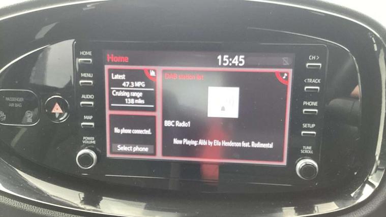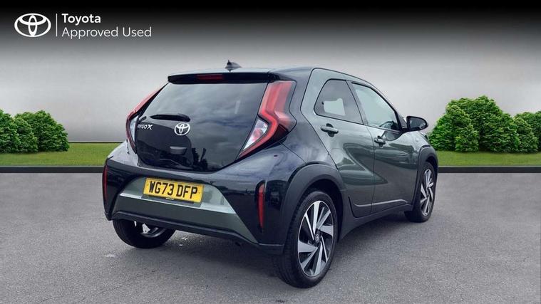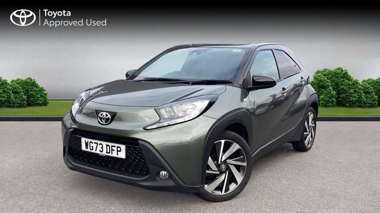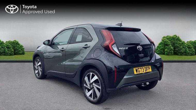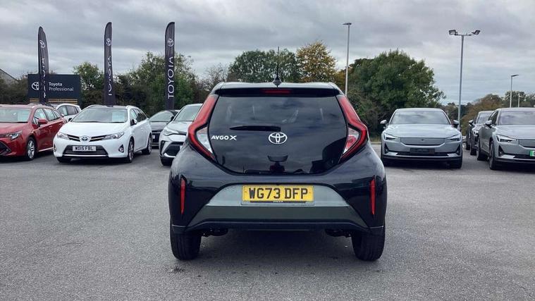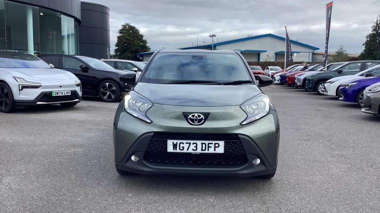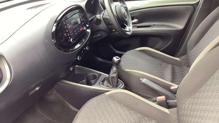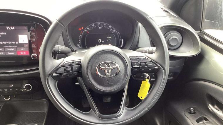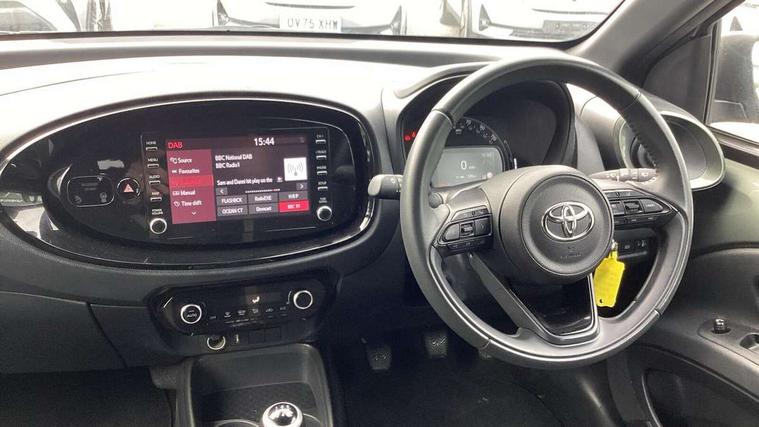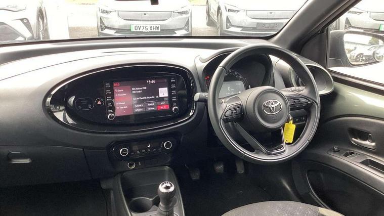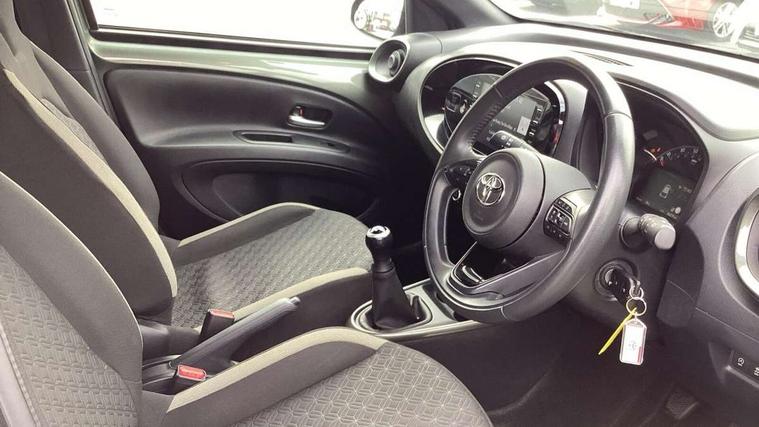 4.2" TFT colour screen, Adjustable speed limiter, Analogue speedometer, Bluetooth connectivity, Digital tachograph, Driver attention alert system, eCall emergency call system, Electric power steering, Intersection turn assist, Key reminder warning, Noise reduction kit, Pre collision system with emergency steering assist, Reversing camera with static guide lines, Smart phone integration with Apple car play/Android Auto, Speed limit display, Start and stop, Vehicle Stability Control (VSC), 4 speakers, 9" HD multimedia display touch screen with Toyota smart connect, DAB digital audio broadcast, USB connector, Auto headlights, Auto wipers, Automatic headlights cut-off, Bicycle towing hook, Black contrast roof, Black side protection mouldings, Black wheel arch mouldings, Body colour door handles, Body coloured front bumper, Boot door scuff plate, Eclipse black rear bumper, Electric heated door mirrors, Follow me home headlights, Front fog lights, Front power windows, Gloss black door mirrors, Gloss black upper front grille, Headlight cut-off reminder, LED daytime running lights, LED front light guide, LED High mounted stop lamp, Manual day/night rear view mirror, Manual headlight levelling, Pagoda roof, Power adjustable door mirrors, Power back door, Privacy glass, Projector halogen headlights, Rain sensor, Rear combination lights LED bulb type, Rear side wing doors, Rear windscreen defogger, Rear windscreen wiper, Short antenna, Variable intermittent windscreen wipers, 12v power outlet - front, 2 seat bench in 2nd row, 3 spoke leather steering wheel, 50/50 split folding rear seat, Adhesive roof headlining, Adjustable speed limiter switch on steering wheel, Audio and telephone switches on steering wheel, Auto air conditioning, Black insert on steering wheel, Black roof lining, Boot light, Centre room light, Chrome interior door handles, Chrome surround on air conditioning buttons, Clean air filter, Console box storage in body color, Fabric upholstery, Floor mats, Front and rear cup holders, Front head rest deco art, Front head restraints, Height adjustable driver seat, Intelligent adaptive cruise control switch on steering wheel, ISOFIX child restraint system on rear seats, Lane departure alert switch on steering wheel, Leather gearshift knob, Manual tilt steering wheel, Manually reclining and sliding driver seat, Manually reclining and sliding front passenger seat, Multimedia switches on steering wheel, Pollen filter, Rear door pockets, Rear head restraints, Satin silver insert on gear shift knob, Single compartment glovebox with lights, Single front passenger seat, Soft tonneau cover, Sun visors with mirror on driver and passenger side, Voice recognition switch on steering wheel, Toyota safety sense pack - Aygo X, Anti lock braking system + Electronic brake force distribution, Child safety door lock, Emergency brake light signal (EBS), Hill start assist control (HAC), Passenger airbag on/off switch, Seat belt reminder for front and rear seats, Supplement restraints system (SRS) - 6 airbags, Traction control, Tyre pressure warning system, Immobiliser, Remote power door locks, Black wheel centre caps, Tyre repair kit,