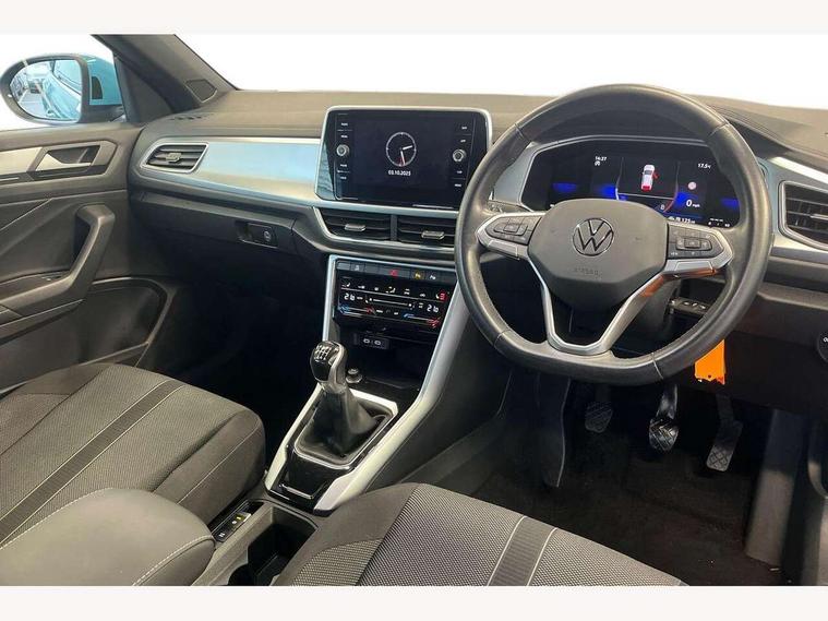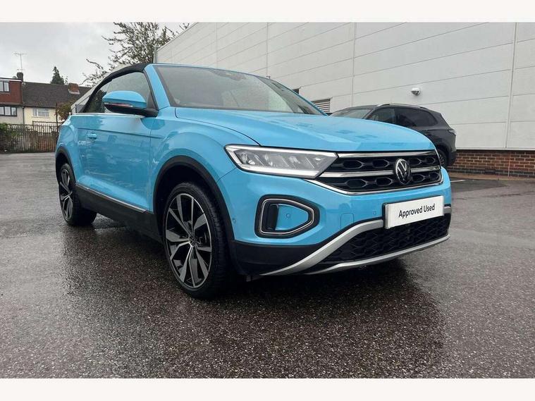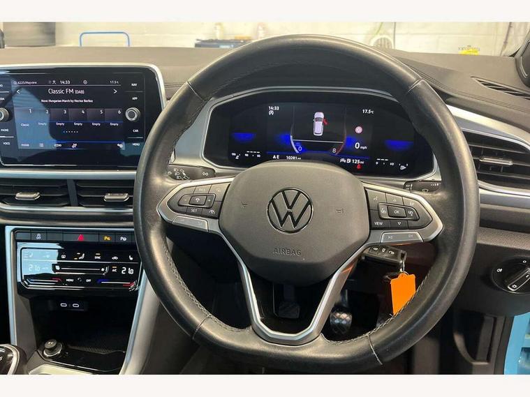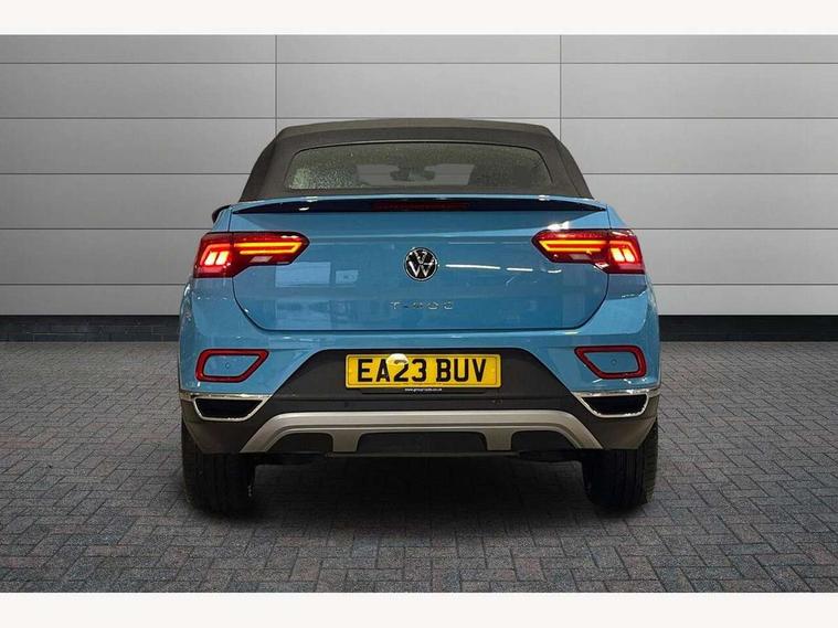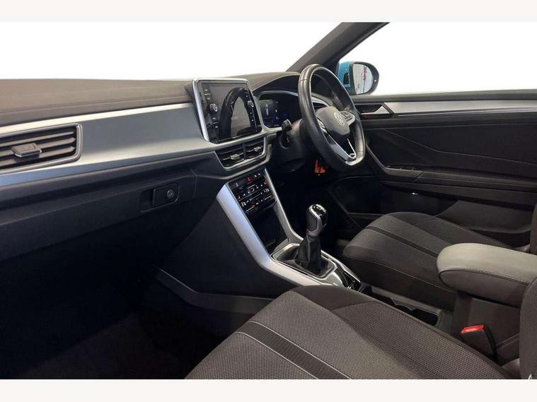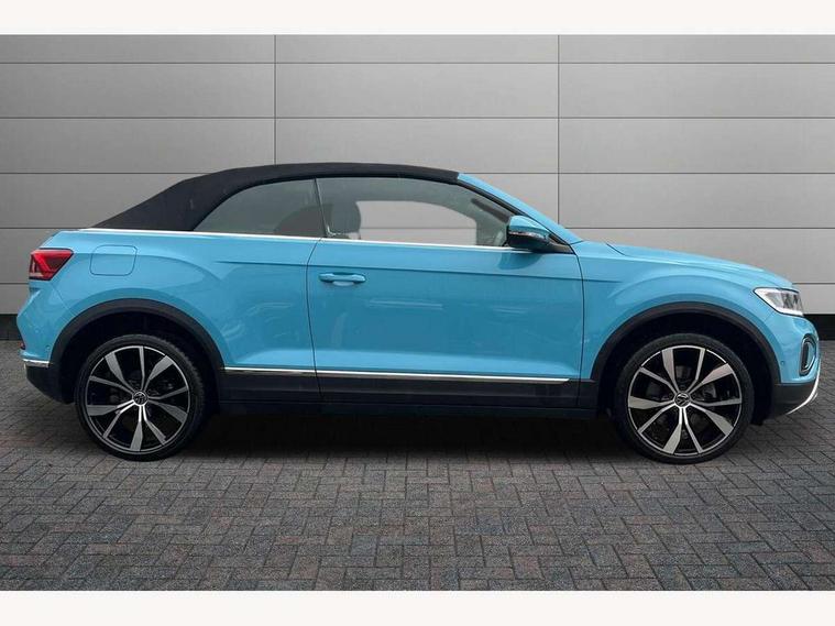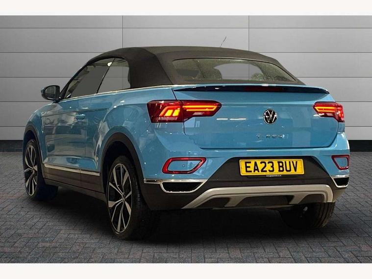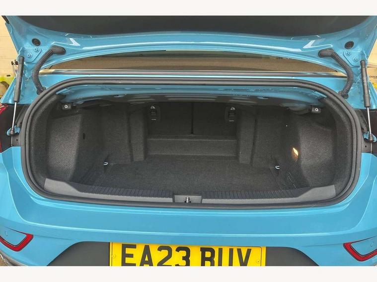Adaptive cruise control and speed limiter, Bluetooth mobile phone interface, Brake pad wear indicator, Car information display, Driver alert system with fatigue detection, Driver tips and journey analysis, Dusk sensor, Emergency call service, Modified key software - reduce switch off time for key status change to Long no motion, Multifunction computer with visual gear change recommendation for fuel consumption, Multifunction front facing camera, Park assist including front and rear parking sensors, Speedo and rev counter, electronic odometer, trip, service interval display and exterior temperature gauge, Start/stop system with brake energy recovery, Tailgate/trunk lid release from outside, Warning sound and light for front seatbelts unfastened, Diversity antenna for FM reception, Music playback - MP3, WMA and AAC files, SMS functionality - read, compose and send SMS messages using touch-screen display, Title and cover art display, USB-C Interface and USB charging socket, We Connect and We Connect Plus functionality, Auto dimming interior rear view mirror, Automatic hazard lights activation under emergency braking, Automatic headlight control with LED separate daytime running lights with coming/leaving home function, Black roof, Body colour door handles, Body colour rear spoiler, Body coloured bumpers and radiator grille with chrome trim and front fog lamps with chrome bezel, Chrome effect left and right trapezoid exhaust tailpipe fascia surround, Dark red rear combination lamps in LED technology, Exterior mirrors aspherical on driver side, convex on front passenger side, Headlight range control, Heat insulating glass windscreen, High level 3rd brake light, LED Headlights, LED rear number plate lights, Power operated canvas convertible top, Power windows with comfort operation and circuit breaker, Rain sensor, Rear boot, Rear exhaust tailpipe, Rear fog light on one side and reversing lights on both sides, Remote electrically foldable door mirrors, puddle lights and reverse activated passenger door mirror, Volkswagen roundel, Windscreen wiper with intermittent wipe light, Without exterior ambient lighting, 12V socket in centre console storage area, 2 LED front reading lights, 2 seat bench in 2nd row, 50:50 Split folding rear seat backrests with fixed rear seat bench, Air care climatronic air conditoning system with active combination filter and 2-zone temperature control, Ambient lighting with logo projection, Black door lower parts with chrome trim, Chrome plated surround to light, mirror and window switch, Door and side trim panel with leatherette insert, Easy entry backrest release, Front and rear carpet mats with black stitching, Front centre armrest, Front cupholders x 2, Front door pockets, Front seat back storage pockets, Heated multi function steering wheel, Height/reach adjust steering wheel, Instrument lighting, white adjustable panel illumination, Interior light delay, Interior light in footwell, Interior lighting with switch off delay and contact switches on all doors, Interior white ambient lighting and surround lighting, Isofix child seat preparation, Lockable glove compartment with light, Luggage compartment lighting, Rear head restraints, Single front passenger seat, Sun visors with illuminated vanity mirrors, Driver assistance pack without proactive passenger protection - T-Roc cabriolet, 2 x 3-point seatbelts/outer rear seats with ECE label, Driver and front passenger airbag with front passenger airbag deactivation, Driver and front passenger safety-optimised head restraints, Drivers seatbelt reminder, Electronic parking brake, Electronic Stability Control (ESC) including ABS, ASR and EDL, Front and rear disc brakes, Front assist with autonomous emergency braking, Pedestrian monitoring, Predictive pedestrian protection, Rigid safety cell with front and rear crumple zones, Side airbag/thorax airbag system, for front passengers, Single tone horn, Three point height adjust front seatbelts + pretensioners, Tyre pressure loss indicator, Volkswagen roadside assistance, Anti-theft alarm system with interior protection and central locking system with SAFELOCK, radio remote control and 2 remote control folding keys, Electronic engine immobiliser, Trims for alloy wheels,