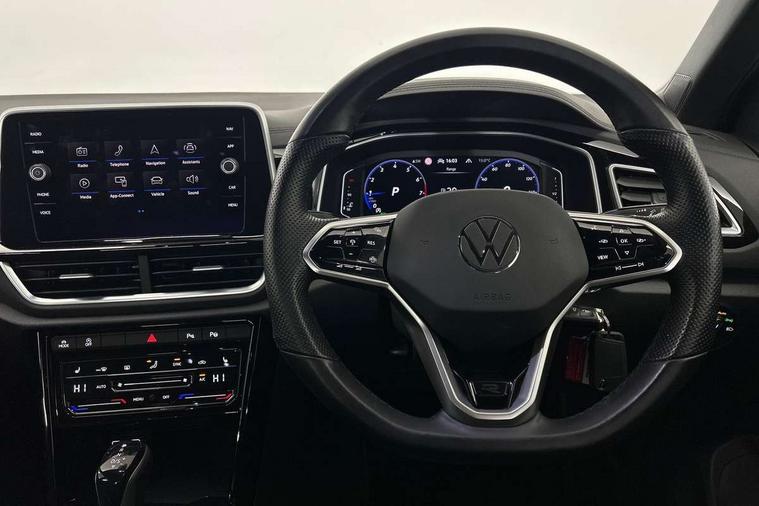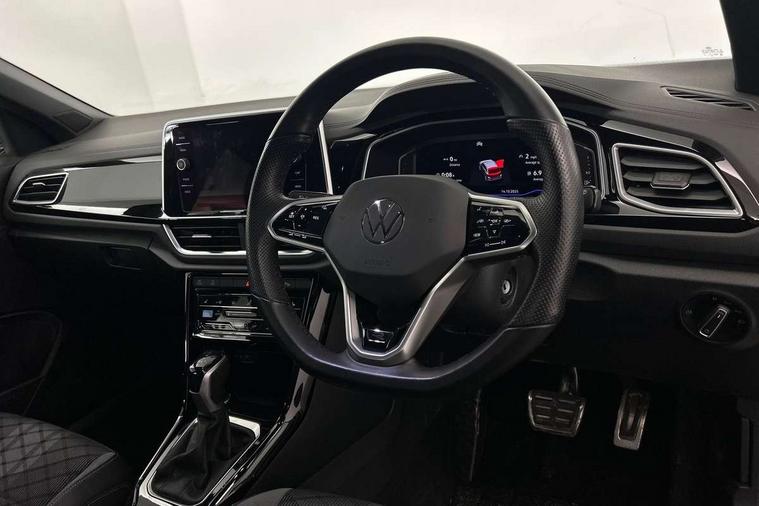 10.25" Digital cockpit pro, Bluetooth mobile phone interface, Driver alert system with fatigue detection, Driver tips and journey analysis, Emergency call service, Lane keeping system Lane Assist, Modified key software - reduce switch off time for key status change to Long no motion, Online services, Park assist including front and rear parking sensors, Service interval indicator, Tailgate/trunk lid release from outside, Think blue trainer driver tips and journey analysis, Warning sound and light for front seatbelts unfastened, Wireless app connect, Battery regeneration during braking, Start/stop function with battery regeneration, Diversity antenna for FM reception, Front and rear 6 speakers, Music playback - MP3, WMA and AAC files, Premium USB cable in choice of either Apple or Android smartphone compatibility, SD card slot, Simultaneous pairing of 2 compatible mobile devices, Title and cover art display, We Connect and We Connect Plus functionality, 3rd brake light, Auto dimming interior rear view mirror, Automatic hazard lights activation under emergency braking, Automatic headlight control with LED separate daytime running lights with coming/leaving home function, Extended roof spoiler, Exterior mirrors aspherical on driver side, convex on front passenger side, External USB type C socket and charging sockets, Front windscreen wiper with intermittent wipe and 4 position delay, Heated rear window, LED Plus headlamps, LED rear combination lamps, LED rear number plate lights, LED tail lamp rear comination lamps, Power windows with comfort operation and circuit breaker, R-Line design body coloured bumpers, Rain sensor, Rear exhaust tailpipe, Rear fog light on one side and reversing lights on both sides, Rear side wing doors, Rear wash/wipe with intermittent wipe setting, Remote electrically foldable door mirrors, puddle lights and reverse activated passenger's door mirror, 12V power socket in centre console, 3 rear head restraints, 3 seat bench in 2nd row, 4 load lashing points in luggage compartment, Air care climatronic air conditoning system with active combination filter and 2-zone temperature control, Black roof lining, Chrome plated radiator grille inserts, air vent surrounds and light switch surrounds, Door and side trim panel with leatherette insert, Drawer under drivers seat, Front + rear carpet mats, Front centre armrest, Front cupholders x 2, Front footwell illumination, Front reading light, Front scuff plates with R logo, Instrument lighting, white adjustable panel illumination, Interior ambient lighting and surround lighting, Interior light delay, Isofix child seat preparation, Leather gearshift handle, Load-through provision with cup holder when folded down ('Unsplit rear seat bench, split folding backrest, with centre armrest), Luggage compartment lighting, Single front passenger seat, Stainless steel pedals, Storage compartment in left and right luggage area, Storage compartment in rear doors, Storage compartments in driver and front passenger doors, Sunvisors with illuminated vanity mirrors, Variable boot floor, height adjustable and removable, Driver assistance pack without proactive passenger protection - T-Roc, 3 point height adj front seatbelts + pretensioners, 3 point seatbelts in outer rear with ECE label, ABS, Child locks on rear doors, Driver and front passenger airbag with front passenger airbag deactivation, Driver and front passenger safety-optimised head restraints, Drivers seatbelt reminder, Electronic parking brake, Electronic Stability Control (ESC) inc EDL (Electronic Differential Lock) and ASR (Traction Control), Front and rear passengers curtain airbag system including front side airbags, Front assist with city emergency braking and pedestrian monitoring, Front seat side impact airbags, Hill start assist, Predictive pedestrian protection, Rear disc brakes, Single tone horn, Tyre pressure loss indicator, Volkswagen roadside assistance, Alarm with interior protection, Anti-theft alarm system with interior monitoring, backup horn, and towing protection, Remote central locking with SAFELOCK, radio remote control with 2 remote control folding keys, Trims for alloy wheels,