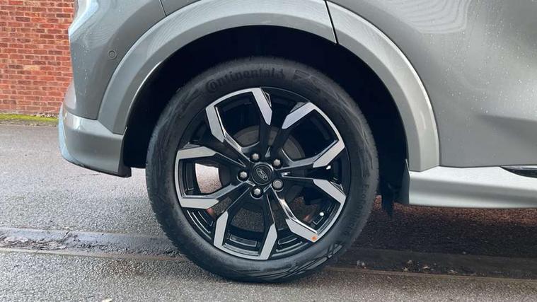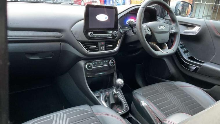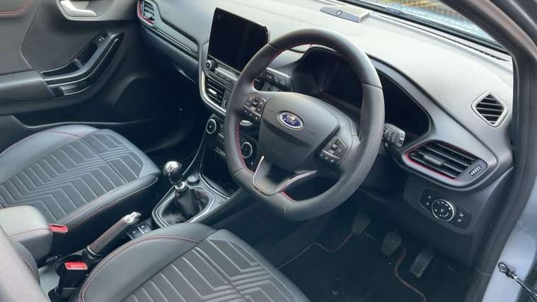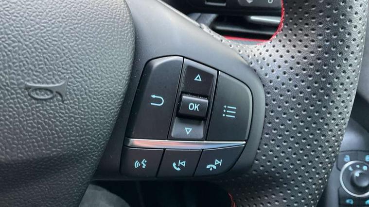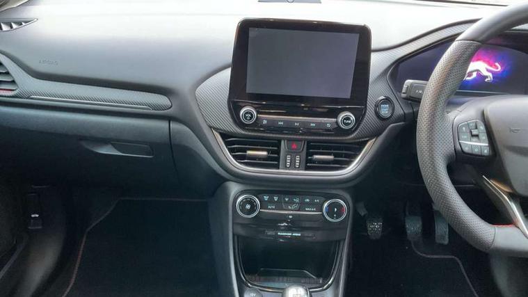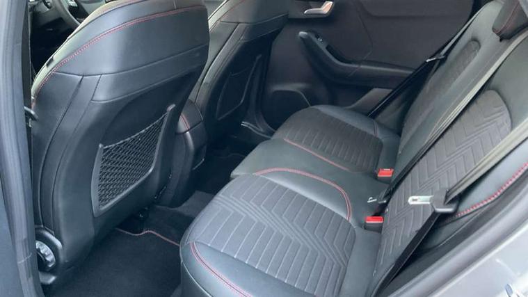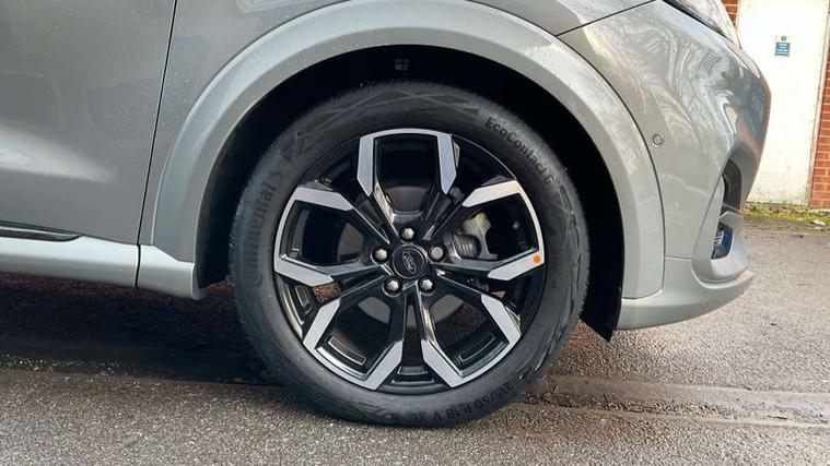 Driver impairment monitor, Emergency call service, Ford easy fuel, Full digital 12.3" instrument cluster, Lane keeping aid with lane departure warning, Power assist steering, Power start button, Rear parking sensor, Selectable drive modes(Normal, sport, Eco, trail, slippery), Speed sign recognition, Sport suspension, Automatic headlights with auto high beam, Automatic rain sensing wipers, Front fog lamps, LED daytime running lights, LED rear lamps, Power foldable heated door mirrors with puddle lamps, Privacy glass to side rear windows and tailgate glass, Quickclear heated windscreen, Rear side wing doors, Rear wiper, ST-Line body styling kit with unique grille and large body colour rear spoiler, Third brake light, 3 seat bench in 2nd row, Centre console with armrest and stowage, Ford megabox extended bootspace, Front and rear head restraints, Front floor mats, Manual 4 way driver seat adjust with lumbar adjustment, Manual 4 way passenger seat with lumbar seat adjustment, Sensico partial premium upholstery, Single front passenger seat, ST-Line flat bottomed sensico leather steering wheel with leather handbrake and aluminium gear knob, Wireless charging pad with electronic air temperature control (EATC), B&O Premium Audio system + Ford SYNC 3 navigation pack - Puma, 3 rear seatbelts, Child safety lock, Electronic stability control (ESC) and hill start assist, Pedestrian/cyclist detection & post-collision braking, Pre collision assist system, Tyre pressure monitoring system (TPMS), Thatcham alarm, Carbon look interior deco spears,