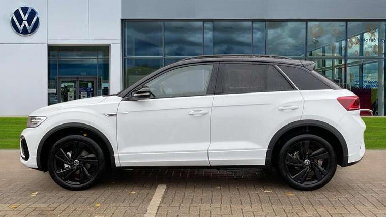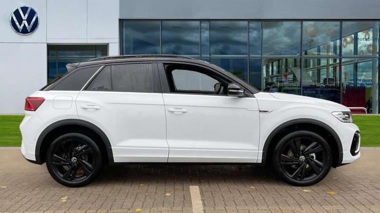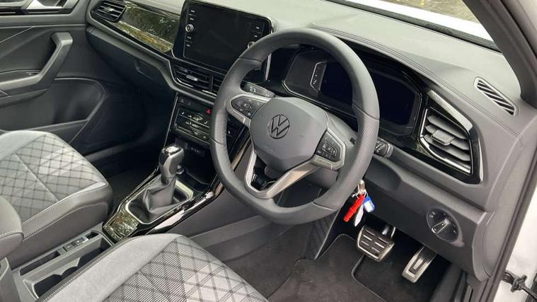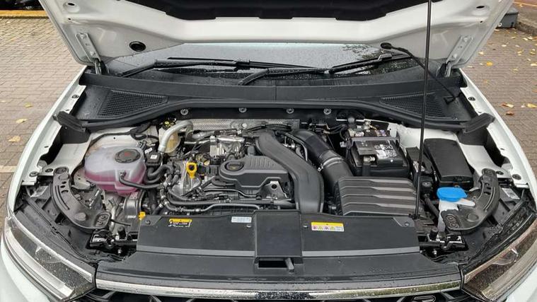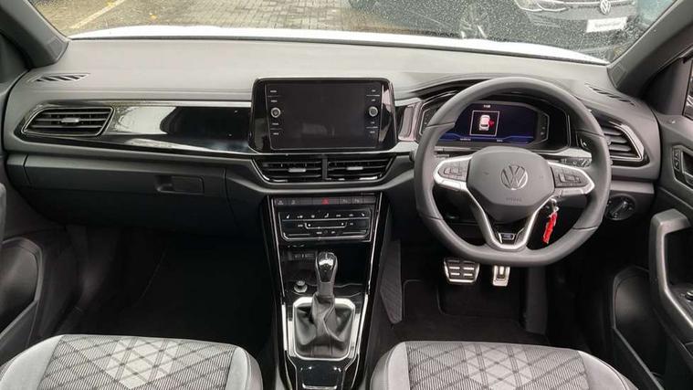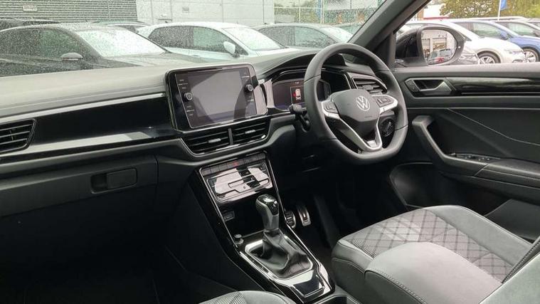 10.25" Digital cockpit pro, Advanced driver attention and drowsiness monitor, Emergency call service, Lane keeping system Lane Assist, Mobile phone interface, Modified key software - reduce switch off time for key status change to Long no motion, Online services, Park assist including front and rear parking sensors, Power assisted speed sensitive steering, Service interval indicator, Tailgate/trunk lid release from outside, Think blue trainer driver tips and journey analysis, Warning sound and light for front seatbelts unfastened, Wireless app connect, Battery regeneration during braking, Rear shock absorption chassis with increased ride height, Start/stop function with battery regeneration, DAB Digital radio, Diversity antenna for FM reception, Front and rear 6 speakers, Music playback - MP3, WMA and AAC files, Premium USB cable in choice of either Apple or Android smartphone compatibility, SD card slot, Simultaneous pairing of 2 compatible mobile devices, Title and cover art display, We Connect and We Connect Plus functionality, Auto dimming interior rear view mirror, Automatic hazard lights activation under emergency braking, Automatic headlight control with LED separate daytime running lights with coming/leaving home function, Dynamic cornering light, Electrically adjustable and heated door mirrors, Extended roof spoiler, Exterior mirrors aspherical on driver side, convex on front passenger side, External USB type C socket and charging sockets, Front windscreen wiper with intermittent wipe and 4 position delay, Heated rear window, Illuminated front grille, IQ LED matrix headlights, LED 3rd brake light, LED rear number plate lights, LED rear tail lights with dynamic turn signal, Light mode for poor weather, rain, fog or snow, Power windows with comfort operation and circuit breaker, R-Line design body coloured bumpers, Rain sensor, Rear exhaust tailpipe, Rear fog light on one side and reversing lights on both sides, Rear side wing doors, Rear wash/wipe with intermittent wipe setting, Remote electrically foldable door mirrors, puddle lights and reverse activated passenger's door mirror, 12V power socket in centre console, 3 rear head restraints, 3 seat bench in 2nd row, 4 load lashing points in luggage compartment, Air care climatronic air conditoning system with active combination filter and 2-zone temperature control, Artvelours cloth upholstery, Black roof lining, Chrome plated radiator grille inserts, air vent surrounds and light switch surrounds, Door and side trim panel with leatherette insert, Drawer under drivers seat, Driver seat height adjust, Driver's seat lumbar support, Front + rear carpet mats, Front centre armrest, Front comfort sports seats, Front cupholders x 2, Front footwell illumination, Front reading light, Front scuff plates with R Line logo, Front seat back storage pockets, Glove compartment door with light, Instrument lighting, white adjustable panel illumination, Interior ambient lighting and surround lighting, Interior light delay, Isofix child seat preparation, Leather gearshift handle, Leather wrapped multifunction steering wheel with paddle shift, Load-through provision with cup holder when folded down ('Unsplit rear seat bench, split folding backrest, with centre armrest), Luggage compartment lighting, Non-folding front passenger seat backrest, Passenger seat height adjuster, Passenger seat lumbar support, Single front passenger seat, Stainless steel pedals, Storage compartment in left and right luggage area, Storage compartment in rear doors, Storage compartments in driver and front passenger doors, Sunvisors with illuminated vanity mirrors, Variable boot floor, height adjustable and removable, Winter pack without heated windscreen washer jets - T-Roc, 3 point height adj front seatbelts + pretensioners, 3 point seatbelts in outer rear with ECE label, ABS, Child locks on rear doors, City emergency braking and pedestrian monitoring, Driver and front passenger airbag with front passenger airbag deactivation, Driver and front passenger safety-optimised head restraints, Drivers seatbelt reminder, Electronic parking brake, Electronic Stability Control (ESC) inc EDL (Electronic Differential Lock) and ASR (Traction Control), Front and rear passengers curtain airbag system including front side airbags, Front disc brakes, Hill start assist, Predictive pedestrian protection, Rear disc brakes, Two tone horn, Tyre pressure loss indicator, Volkswagen roadside assistance, Tool kit, Trims for alloy wheels, Tyre mobility kit including compressor and sealing foam,