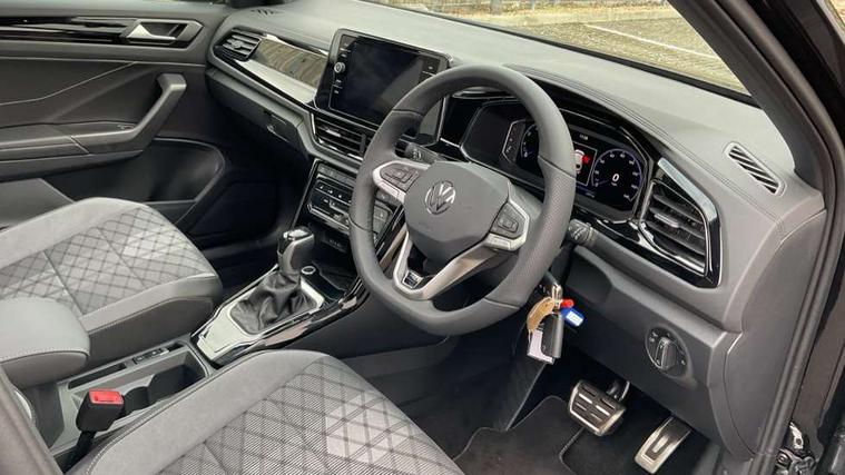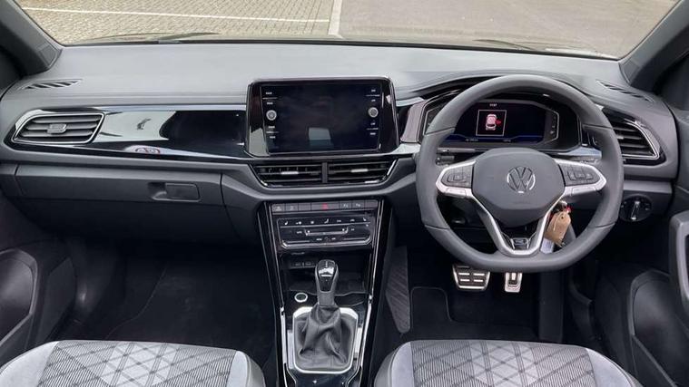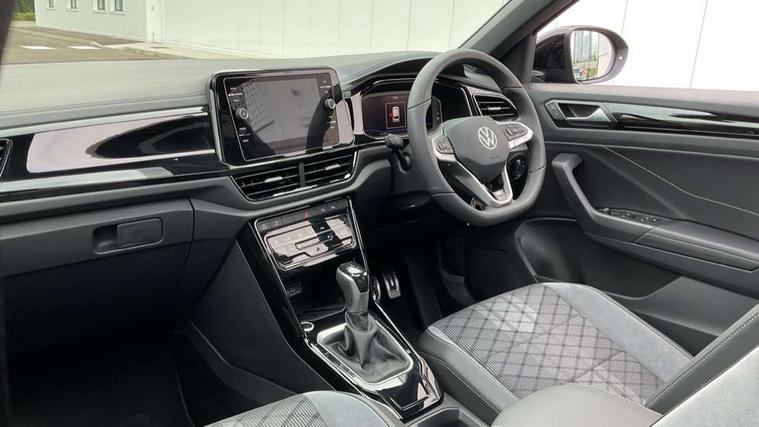 10.25" Digital cockpit pro, Advanced driver attention and drowsiness monitor, Emergency call service, Lane keeping system Lane Assist, Mobile phone interface, Modified key software - reduce switch off time for key status change to Long no motion, Online services, Park assist including front and rear parking sensors, Power assisted speed sensitive steering, Service interval indicator, Tailgate/trunk lid release from outside, Think blue trainer driver tips and journey analysis, Warning sound and light for front seatbelts unfastened, Wireless app connect, Battery regeneration during braking, Rear shock absorption chassis with increased ride height, Start/stop function with battery regeneration, DAB Digital radio, Diversity antenna for FM reception, Front and rear 6 speakers, Music playback - MP3, WMA and AAC files, Premium USB cable in choice of either Apple or Android smartphone compatibility, SD card slot, Simultaneous pairing of 2 compatible mobile devices, Title and cover art display, We Connect and We Connect Plus functionality, Auto dimming interior rear view mirror, Automatic hazard lights activation under emergency braking, Automatic headlight control with LED separate daytime running lights with coming/leaving home function, Dynamic cornering light, Electrically adjustable and heated door mirrors, Extended roof spoiler, Exterior mirrors aspherical on driver side, convex on front passenger side, External USB type C socket and charging sockets, Front windscreen wiper with intermittent wipe and 4 position delay, Heated rear window, Illuminated front grille, IQ LED matrix headlights, LED 3rd brake light, LED rear number plate lights, LED rear tail lights with dynamic turn signal, Light mode for poor weather, rain, fog or snow, Power windows with comfort operation and circuit breaker, R-Line design body coloured bumpers, Rain sensor, Rear exhaust tailpipe, Rear fog light on one side and reversing lights on both sides, Rear side wing doors, Rear wash/wipe with intermittent wipe setting, Remote electrically foldable door mirrors, puddle lights and reverse activated passenger's door mirror, 12V power socket in centre console, 3 rear head restraints, 3 seat bench in 2nd row, 4 load lashing points in luggage compartment, Air care climatronic air conditoning system with active combination filter and 2-zone temperature control, Artvelours cloth upholstery, Black roof lining, Chrome plated radiator grille inserts, air vent surrounds and light switch surrounds, Door and side trim panel with leatherette insert, Drawer under drivers seat, Driver seat height adjust, Driver's seat lumbar support, Front + rear carpet mats, Front centre armrest, Front comfort sports seats, Front cupholders x 2, Front footwell illumination, Front reading light, Front scuff plates with R Line logo, Front seat back storage pockets, Glove compartment door with light, Instrument lighting, white adjustable panel illumination, Interior ambient lighting and surround lighting, Interior light delay, Isofix child seat preparation, Leather gearshift handle, Leather wrapped multifunction steering wheel with paddle shift, Load-through provision with cup holder when folded down ('Unsplit rear seat bench, split folding backrest, with centre armrest), Luggage compartment lighting, Non-folding front passenger seat backrest, Passenger seat height adjuster, Passenger seat lumbar support, Single front passenger seat, Stainless steel pedals, Storage compartment in left and right luggage area, Storage compartment in rear doors, Storage compartments in driver and front passenger doors, Sunvisors with illuminated vanity mirrors, Variable boot floor, height adjustable and removable, Winter pack without heated windscreen washer jets - T-Roc, 3 point height adj front seatbelts + pretensioners, 3 point seatbelts in outer rear with ECE label, ABS, Child locks on rear doors, City emergency braking and pedestrian monitoring, Driver and front passenger airbag with front passenger airbag deactivation, Driver and front passenger safety-optimised head restraints, Drivers seatbelt reminder, Electronic parking brake, Electronic Stability Control (ESC) inc EDL (Electronic Differential Lock) and ASR (Traction Control), Front and rear passengers curtain airbag system including front side airbags, Front disc brakes, Hill start assist, Predictive pedestrian protection, Rear disc brakes, Two tone horn, Tyre pressure loss indicator, Volkswagen roadside assistance, Tool kit, Trims for alloy wheels, Tyre mobility kit including compressor and sealing foam,