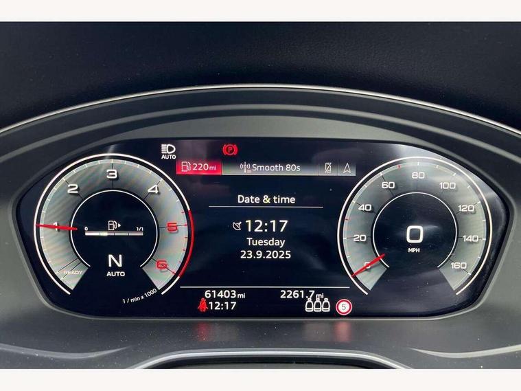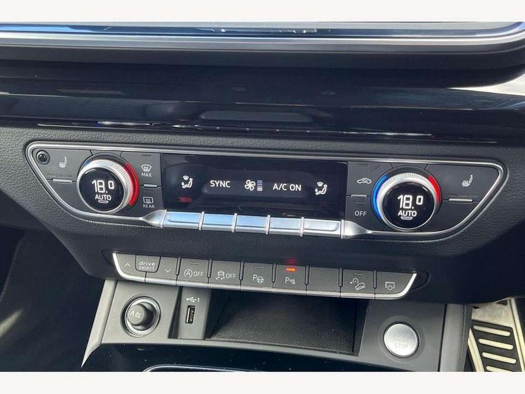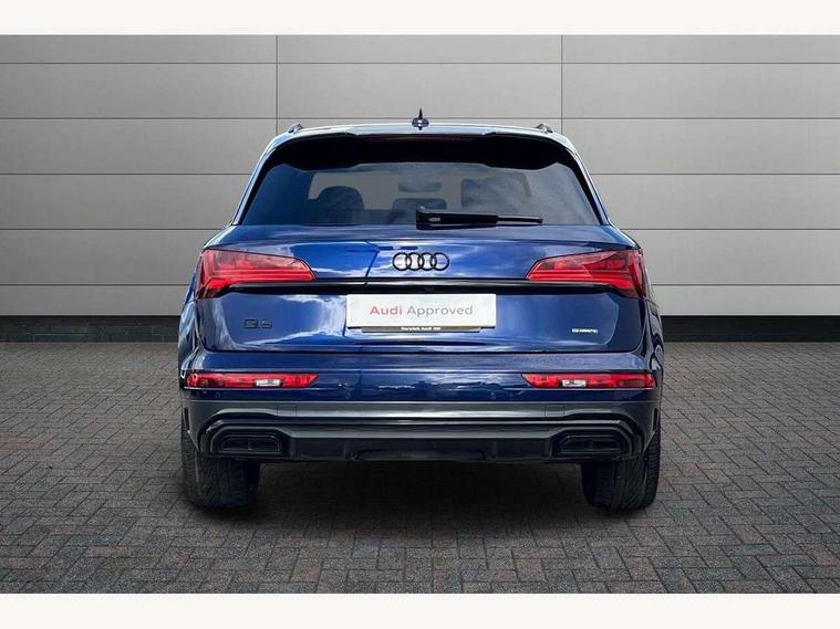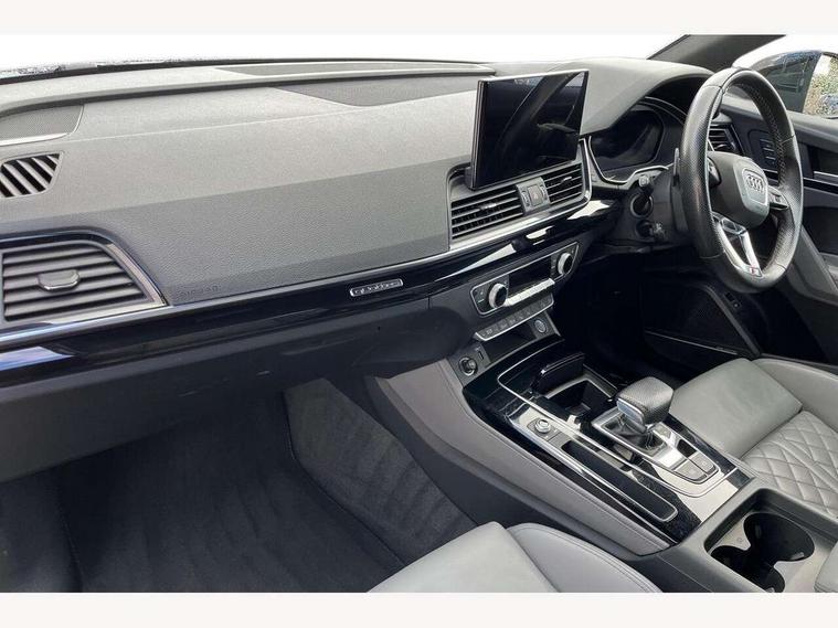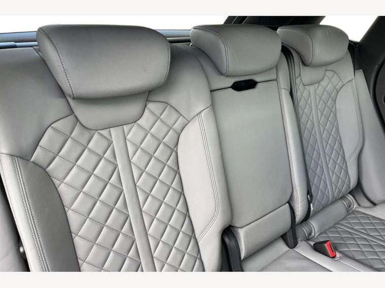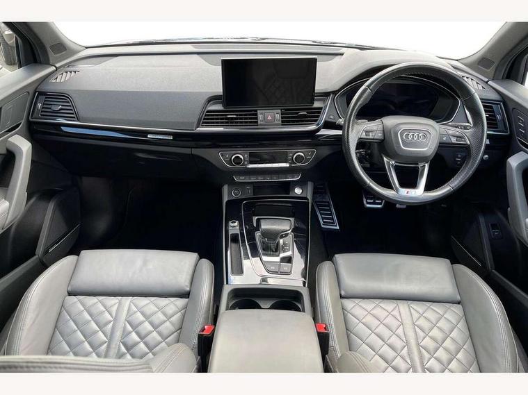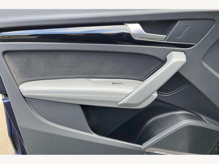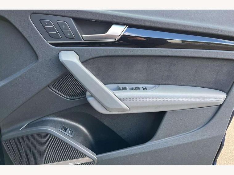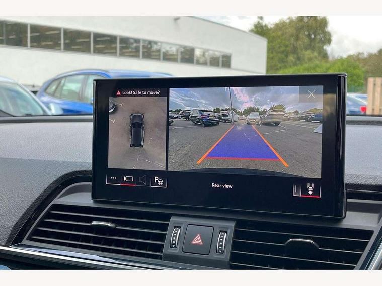 360 degree camera with top view, Advanced key with electric hands free boot opening system, Audi connect safety and service (e-call), Audi connect with Amazon Alexa Integration, Audi drive select, Audi virtual cockpit plus with 12.3" screen and three different layout designs, Audi wireless smartphone interface, Automatic start-stop system with coasting functionality and efficiency programme, Electro - mechanical power assisted steering, Head up Display, MMI navigation plus with 10.1" touch screen, Mobile telephone preparation - bluetooth interface, Park assist with parking aid plus, Power tailgate, Service interval indicator, Voice control system with Audi hotword activation "Hey Audi", Adaptive air suspension, Diesel particulate filter, Quattro on demand, 2 x USB charging port with aux input socket, Bang + Olufsen sound system, DAB Digital radio, Acoustic windscreen, Audi beam with 'Vorsprung' logo, Auto dimming door mirrors, Auto dimming rear view mirror, Automatic headlights and windscreen wipers, Black roof rails, Body colour bumpers, Body colour underbody protection, Chrome plated exhaust trims, Daytime running lights, Door sills in Selenite silver, Electric adjustable/heated/folding door mirrors, Front air inlet surrounds in titanium black, Front and rear electric windows, Gloss black finish for Audi rings and Q5 logos without engine badging, Headlight washers, High gloss black B pillar trims and triangular rear door trim, High level LED brake light, Lower bumpers painted in contrast Manhattan grey, Matrix LED headlights with dynamic front and rear indicators, Rear chrome trim strip below lights, Rear privacy glass and rear side windows, Rear side wing doors, Rear wiper, Roof bars, Running boards, S Line rear spoiler, 3 rear headrests, 3 spoke heated leather multi-function steering wheel, 4 way electric lumbar support for driver and front passenger, 40:20:40 split folding 3 rear bench seat in 2nd row with rear centre armrest, Black cloth headlining, Comfort front centre armrest, Contrast stitching on seats, steering wheel and gear lever gaiter, Deluxe 3 zone electronic climate control, Electrically adjustable front seats with driver memory, Fine Nappa leather upholstery with diamond pattern contrast stitching + front sport seats with S embossed logo, Front/rear floor mats, Gear lever in black leather, Heated front and outer rear seats, Height adjustable front head restraints, Illuminated door sill trims with aluminium inlays, ISOFIX child seat mounting and top tether, Massage function for front seats, Rear seat bench plus, Removable luggage compartment floor, Single front passenger seat, Stainless steel pedals, Sunvisors with vanity mirrors, Black styling package - Q5, City Assist pack - Q5, Extended interior upholstery pack - Q5, Extended LED Interior multi coloured Lighting Pack - Q5, Tour pack - Q5, 3 point seatbelts on all seats, 6 airbags - Driver, front passenger, curtain and side airbags, Electrically operated child locks on rear doors, Electromechanical parking brake, Electronic stabilisation control including ABS, ASR and EDL, Front passenger airbag deactivation, Hill descent control, Hill hold assist, Multi collision brake assist, Pop-up bonnet for pedestrian protection, Pre sense city, Seat belt force limiter, Seatbelt monitoring, Tyre pressure warning, Warning triangle and first aid kit, Anti theft alarm, Anti-theft wheel bolts, Keyless Go access/ignition system, Remote central locking, Piano black finish inlay, Tool kit, Tyre repair kit,