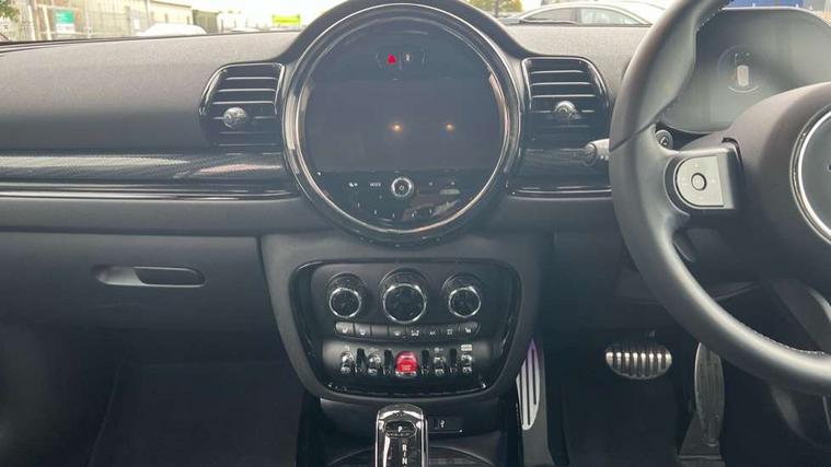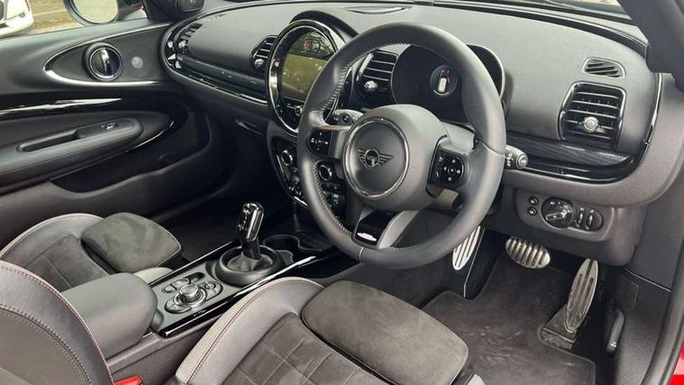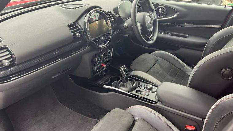Active Guard incl speed limiting and lane departure functions with auto steering, and front collision warning with brake intervention, Automatic start/stop function with brake energy recuperation, Compatible mobile phone bluetooth with audio streaming, Digital cockpit, Electro-mechanical speed dependant steering assistance, Instrument cluster, Mini E-call, MINI TeleServices, On board computer, Rear parking distance control, Double Vanos system, Fully variable valve control, High precision injection, Performance Control, Steptronic sport transmission with double clutch and steering wheel paddles, FM tuner and DAB digital radio, Bonnet scoop, Chrome fuel filler cap, Dynamic brake lights, Electric windows, Heated rear window, Heated windscreen washer jets, John Cooper Works - aerodynamic kit (front and rear apron, spoiler), front and rear sport bumpers and part-painted side sills with door sill finishers, John Cooper Works rear spoiler, LED headlights with closed ring as daytime driving lights, LED rear light with union jack design, Metal door sill strips with Cooper S imprint, Model logo, Model logo on rear doors, Radiator grille, Rain sensor with auto headlights, Rear fog lights, Rear window wiper, Side scuttle panel with integrated indicator, Split rear doors, Sun/heat protection glass, Twin exhaust tailpipe, White indicator lenses, 12V Accessory socket in centre console, 360L luggage compartment capacity, 4 lashing eyes in luggage compartment, 60/40 split folding rear seat, Anthracite headlining with grab handles and clothes hooks, Chrome interior highlights, Cupholders, English handbook, Glove compartment, Height and length steering column adjustment, Interior lighting with 12 basic colours selectable via toggle switch in roof, Isofix rear child seat preparation, John Cooper Works perforated leather steering wheel with contrast stitching in chilli red and John Cooper Works logo, John Cooper Works sports seat with integrated headrest, adjustable thigh support and John Cooper Works logo, Leather gearshift lever and handbrake gaiters, LED reading lights, vanity mirror lights, front foot well light and spotlight on front seats, Manual air conditioning, Multifunction steering wheel, Storage compartments in doors, Sunvisors with vanity mirrors, Toolkit, Excitement pack - Clubman, Navigation pack - Clubman, 2 tone horn, 3 point seatbelts on all seats, 6 Airbags - front, side, head and seat belt tensioners, Anti-lock braking system (ABS), DSC - Dynamic Stability Control, Electronic handbrake, Front and rear disc brakes, Tyre pressure monitoring system, Alarm system with tilt sensor, monitoring doors, bonnet interior and tailgate, Auto drive away locking, Deadlocking function, Electronic vehicle immobiliser, Locking wheel bolts, Start/stop toggle with keyless go,