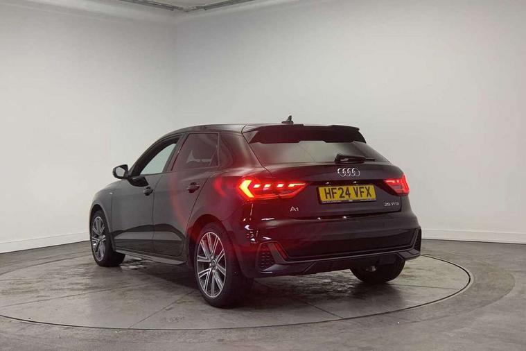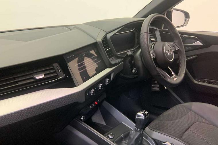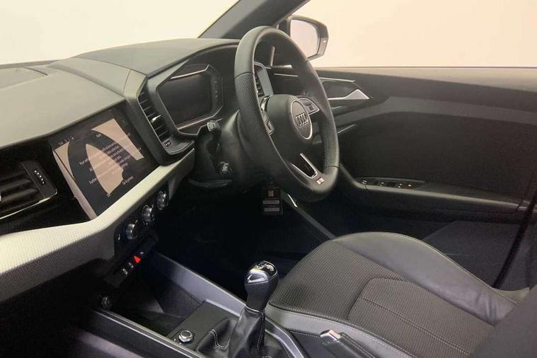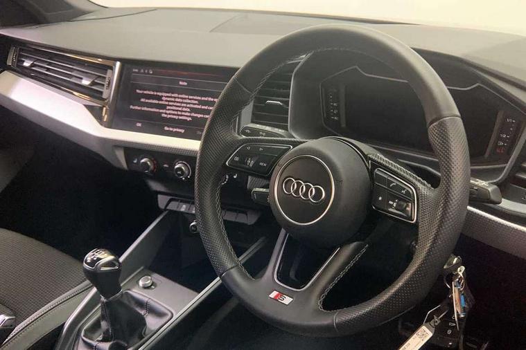 10.25" Digital instrument cluster display classis style instrument dials + speed, odometer, time, outside temperature, telephone menu + fuel level warning, Advanced driver attention and drowsiness monitor, Audi remote connect and control, Audi smartphone interface, Bluetooth interface, Camera based traffic sign recognition, Cruise control, Driver's information system, Electromechanical power steering, Emergency e-call, Lane departure warning system, Rear parking sensor, Service interval indicator, Speed limiter, Start stop system with recuperation, Voice control system, Washer fluid level indicator, Sports suspension, 2 x USB type C connection points, 6 loudspeakers, DAB Digital radio, MMI radio plus with 10.1" colour MMI display screen and MMI touch, Auto dimming rear view mirror, Body coloured door mirrors, Door sill trims with aluminium inlays and S line logo in front, Electric front and rear windows, Electrically adjustable, heated, folding door mirrors with integrated LED side indicator, Front side air inlets in grained matt black and C frame in anthracite black, Headlight cleaning system, Heat insulating glass windscreen and side windows, Heated rear windscreen, High level LED brake light, LED daytime running lights, LED headlights with range control LED rear lights + dynamic rear indicators, Privacy glass, Radiator grille and rear diffuser in matt anthracite black, Radiator protective grille frame in matt aluminium silver, Rain and light sensors, Rear fog lights, Rear side wing doors, Rear wiper, S line badges on front wings, Side front spoiler lips in grained matt black, 12V socket in centre console with two cup holders, 3 rear seats with headrests, 3 seat bench in 2nd row, 3 spoke leather multi-function plus steering wheel features S badging and grips in perforated leather with contrast stitching, 40:60 Split folding rear seat or fully collapsed, Black cloth headlining, Black velour floor mats, Front and rear velour black floor mats with contrast stitching in fine silver, Front head restraints, Front passenger seat, Height and reach adjustable steering wheel, Interior lighting includes roof module, front and rear reading lights and right luggage compartment lighting, ISOFIX child seat mounting for front passenger and outer rear seats including top tether attachment point of outer rear seats, Leather gear knob with aluminium trim, Leather handbrake grip, Manual air conditioning, Manual height adjustable for driver and front passenger seat, Manually adjustable lumbar support in front seats, Stainless steel pedals, Ambient lighting package - A1, Luggage compartment pack - A1, S line exterior styling pack - A1 Sportback, 3x3 point rear seatbelts, Audi pre-sense front with pedestrain and cyclist recognition, Brake assist function, Driver and front passenger airbag with front side and head airbags, Electronic Stability Control including ABS, EBD, ASR and EDL, Front passenger airbag deactivation switch, Hill hold assist, Manual rear child locks, Seatbelt height adjustment for front seats, Seatbelt monitoring, Tyre pressure loss indicator, Warning triangle and first aid kit, Anti theft alarm, Anti theft wheel bolts, Immobiliser, Remote control key with safelock, Aluminium trim for control switches, air vents and digital instrument cluster, Black dashboard, Silver grey inlays polygon structure in diamond paint finish, Structured grey accent surfaces insert of air vents, interior door handle recesses and centre console in quartz paint finish,