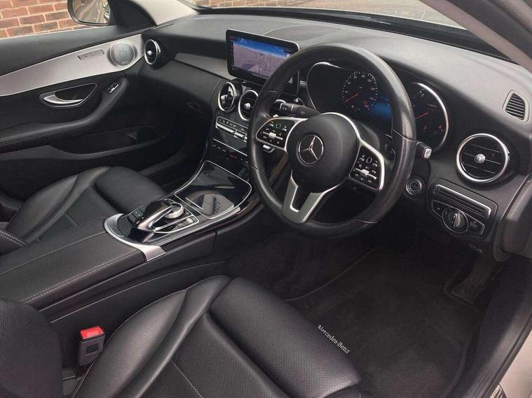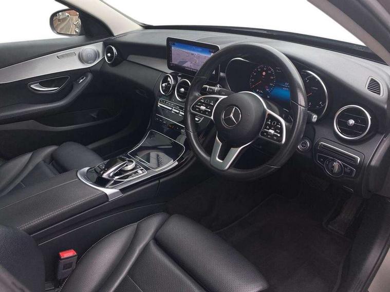 12.3" digital instrument cluster display, 360 degree parking camera, Active park assist with parktronic system, Attention assist, Bluetooth system, Collision prevention assist plus, Comand Online HDD Nav with media interface, radio/CD/DVD/MP3, 10.25 screen, linguatronic voice control, DYNAMIC SELECT with a choice of driving modes (ECO, Comfort, Sport, Sport+ and Individual), Multi function trip computer, Outside temperature gauge, Remote boot release, Service indicator (ASSYST PLUS), Smartphone integration with Apple CarPlay and Android auto, Wireless charging, Diesel particulate filter, 2 USB ports in centre console, Burmester surround sound system, DAB Digital radio, SD card slot, Steering wheel mounted audio controls, Adaptive brake lights, Aerial in rear window, Body coloured bumpers, Body coloured door mirrors, Electric front sliding and fixed rear panoramic glass sunroof, Electric windows one touch open/close, Electrically adjustable and heated door mirrors, Green tinted glass, Heated windscreen washers, LED daytime running lights, LED Indicators, LED tail lights, LED third brake light, Multi beam LED headlights, Radiator grille with integral star and 2 louvres in matt iridium silver with chrome trim, Rain sensor windscreen wipers, Side windows surround in polished aluminium, 2 cupholders in front centre console, 3 spoke leather multi function steering wheel with silver chrome trim, 40:20:40 split folding rear seats, Artico man-made leather upholstery, Auto Mercedes-Benz child seat recognition sensor, Black floor mats, Dual zone automatic climate control, Electric front seat height adjustment, Front and rear head restraints, Front centre armrest with storage compartment, Front door sills with Mercedes Benz lettering, Gearshift paddles, Heated front seats, Illuminated glovebox, Interior lighting - 64 colour Ambient lighting, Rear top tether child seat ISOFIX attachment, Sports seats, Sunvisors with illuminated vanity mirrors, Lighting pack - C class, Mirror pack - C Class, Seat comfort pack - C Class, Stowage space pack - C Class, 3 rear 3 point seatbelts, ABS with Brake Assist, Active bonnet, Adaptive brake system, Black seat belts, Child proof door locks, Crash sensor, Drivers knee airbag, Drivers pelvis airbag, Dual stage driver/passenger airbags, Electronic parking brake, ESP with ASR, Front passenger seat occupancy sensor, Front side airbags, Hill start assist, Rear seatbelt warning indicator, Tyre pressure monitoring system, Warning triangle and first aid kit, Window airbags, Alarm system/interior protection/immobiliser, Chrome surround electric key, Keyless entry and keyless start, Remote central locking, Brushed aluminium trim, 17" 5 spoke aero alloy wheels in Silver, Tyre inflation kit,