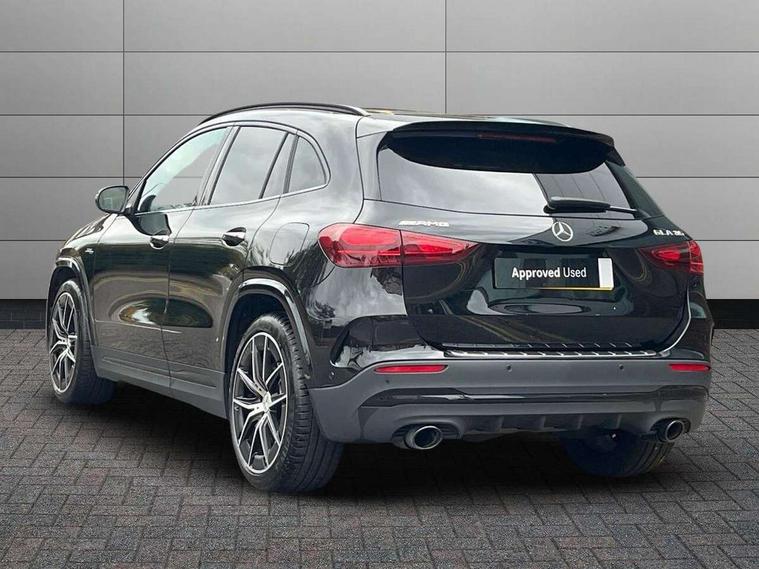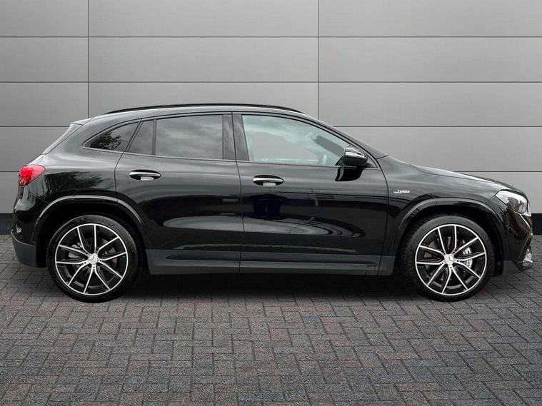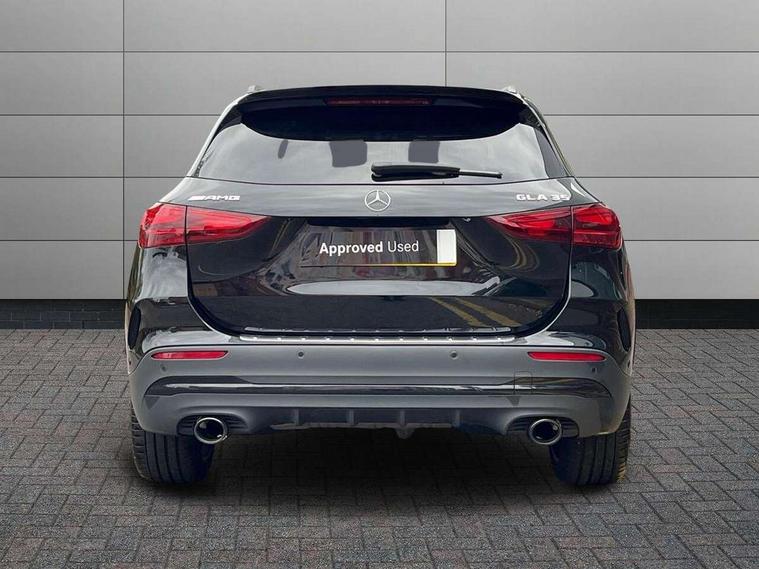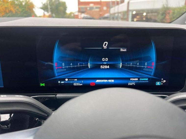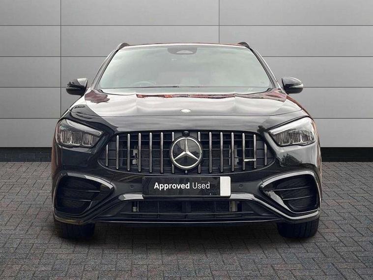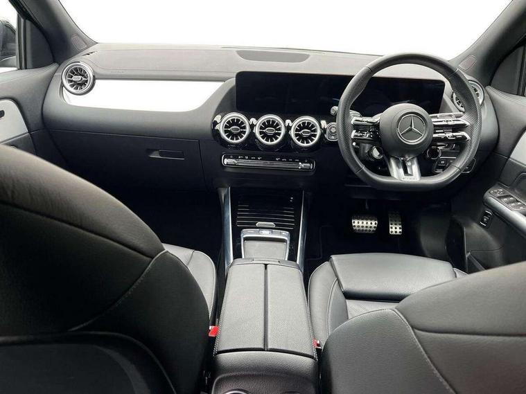 10.25 inch touchscreen central media display, 10.25" Digital instrument cluster display screen, AMG DYNAMIC SELECT with driving programs (Slippery, Comfort, Sport, Sport+, Individual and Race) including drift mode via steering wheel shift paddles, AMG speed sensitive steering with two sets of steering characteristics, Attention assist, Blind spot assist, Cruise control + speed limiter, Direct steering, Easy-pack tailgate, ECO start/stop function, Fingerprint scanner, Fluid level warning indicator for fuel, oil, coolant and washer fluid, Hard-disk navigation, Hey Mercedes Voice activation, Lamp failure indicator, Lane keeping assist (LKA), MBUX augmented reality for navigation, Mercedes me connect including emergency call system, accident recovery, breakdown and maintenance management, Mercedes me remote services, Multi function trip computer, Outside temperature gauge, Owners manual and service booklet in English, Pre-installation of private car share, Radio aerial integrated into front and rear windshields, Service indicator (ASSYST), Smartphone integration with Apple CarPlay and Android auto, Speed limit assist, Wireless charging, AMG performance 4MATIC+ with torque control, Rear axle multi-link, Suspension with adaptive damping system, Bluetooth connectivity including audio streaming, DAB Digital radio, MBUX multimedia system, Mercedes-Benz (225w) sound system with 10 speakers, Adaptive brake lights, Adaptive highbeam assist, AMG body styling - Front apron with air deflectors on the outer air intakes, AMG emblem on the front instead of the "Mercedes-Benz" laurel wreath badge, AMG Rear apron with specific diffuser look with four vertical fins and two round chrome plated tailpipe trim elements with a diameter of 90 mm, AMG sports exhaust system with two round tailpipes attached to the rear apron, Automatic headlamp activation, Beltline strips in High gloss Black, Body colour bumpers, Body coloured door handles with chrome insert for keyless entry, Car wash function, Dark privacy glass from B-pillar backwards, Electric front windows, Electric rear windows, Electrically adjustable and heated door mirrors with integrated LED indicators, Front wings with TURBO 4MATIC lettering, Heated glass rear windscreen + timer control, Interior mirror with black reading lamps and frameless, LED high performance headlamps with integrated LED daytime running lights, LED tail lights, LED third brake light, Rain sensor windscreen wipers, Rear fog lights, Rear side wing doors, Rear wiper, Roof spoiler, Window line in high gloss black, 3 seat bench in 2nd row, 40:20:40 split folding rear seat backrests, Adjustable head restraints, Air conditioning - air vents with silver chrome surround, Air conditioning - Two zone thermotronic luxury automatic climate control with display, Aluminium geashift paddles in silver colour, AMG floor mats with AMG lettering in front, AMG illuminated door sills with changeable cover, AMG Performance steering wheel in nappa leather, Auto Mercedes-Benz child seat recognition sensor, Black roof lining, Courtesy light in boot, Electrically adjustable front memory seats with four way lumbar support, Front centre armrest with stowage, Heated front seats, Illuminated glovebox, Interior lighting - 64 colour Ambient lighting, Luggage net on driver/front passenger seat backrest, Manually height and reach adjustable steering column, Rear armrest with two integral cup holders for drinks, Single front passenger seat, Sport seats with fixed head restraints, Sports pedals in brushed stainless steel with black rubber studs, Stowage compartment in centre console, Stowage compartment with retractable cover, Sunvisors with illuminated vanity mirrors, Topstitching on the dashboard and beltline significantly enhance the high quality impression, Twin front cup holders, Two outer rear seat isofix and top tether child seat fixing points, AMG Night package - GLA, Comfort seat pack - GLA Class, Interior lighting with light and sight pack - GLA, Keyless go comfort package - GLA, Mirror pack - GLA Class, Parking package with reversing camera - GLA, USB package plus - GLA, 3 rear 3 point seatbelts, ABS with Brake Assist, Active bonnet pedestrain safety measure which detects an impact and raises bonnet by 65mm, Active brake assist includes forward collision warning system with autonomous braking, Adaptive brake assist with hold function and hill start assist, AMG high performance brake system with red painted brake callipers and black AMG lettering at the front, ventilated and perforated brake discs, Black seatbelts, Brake pad wear warning indicator, Childproof locks manually operated for rear doors and electrically operated for rear power windows, Crash responsive emergency lighting, Driver and passenger head and side airbags, Drivers knee airbag, Dual stage driver/passenger airbags, Electronic parking brake, ESP curve dynamic assist, ESP with ASR, Front and rear seatbelt reminder, Front passenger seat occupancy sensor, Tyre pressure monitoring system, Warning triangle and first aid kit, Window airbags, Alarm system with immobiliser and interior protection -Thatcham category 1, Guard 360 degree vehicle protection, Keyless Go starting function, Remote central locking and crash sensor with emergency opening function, Light longitudinal grain aluminium trim, 20" AMG 5 twin spoke light alloy wheels aerodynamically optimised and painted in matt black with high-sheen finish RTX, Summer tyres, Tirefit tyre sealant kit, Wheel arches wider for AMG wheels,