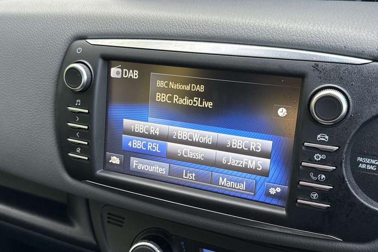 Bluetooth system, Cruise control, External temperature gauge, Fuel indicator with low level warning, Lane departure warning system, Lights on warning, Multi-information display, Power Steering, Push button starter, Rear parking sensor, Rear view camera, Road sign assist - RSA, TFT display screen, Touch 2 Go navigation system, Trip computer, 6 speakers, Auxiliary input socket, DAB Digital radio, Steering wheel mounted audio/telephone controls, Touch 2 touchscreen Radio with iPod connectivity, USB connection, 2 speed front wipers + intermittent wipe, Auto high beam, Auto up and down function on drivers window, Body colour bumpers, Body colour door handles, Body coloured door mirrors, Chrome fog light surround, Daytime running lights, Door mirror integrated indicators, Drivers window one touch up/down, Electric adjustable heated door mirrors, Electric front windows, Follow me home headlights, Front fog lights, Green tinted glass, Heated rear windscreen, Projector headlamps, Rain sensitive windscreen wipers, Rear wiper, Turning signal integrated indicators in door mirrors, 3 spoke leather steering wheel, 60/40 split folding rear seat, Active headrests, Boot light, Cloth upholstery, Driver seat height adjust, Driver/passenger vanity mirrors with covers, Dual zone automatic climate control, Front cupholders x 2, Front map reading lights, Front seats with lumbar support, Glovebox, Height adjustable front head restraints, Height adjustable rear seat head restraints (x3), Isofix system on outer rear seats, Leather gear knob, Leather parking brake handle, Rear cupholder, Removable rear parcel shelf, Sliding front seats, Tilt/telescopic steering column, 3 point seatbelts on all rear seats, ABS+EBD+Brake assist, Collision mitigation braking system, Curtain airbags, Driver and passenger airbags, Drivers knee airbag, Emergency brake light system (EBS), Front passenger airbag on/off switch, Front seatbelt reminder, Front side airbags, Height adjustable front seatbelts with pre-tensioners and load limiters, Hill start assist control (HAC), Passenger airbag deactivate switch, Rear child proof door locks, Rear seat belt reminder, Road sign information display, Seatbelt warning lamp and buzzer, Toyota safety sense including Road sign assist, Pre collision system, auto high beam and lane departure alert), Tyre pressure monitoring system, Vehicle stability control VSC + traction control, Engine immobiliser, Remote central locking, Instrument panel in grey, Space saver spare wheel,