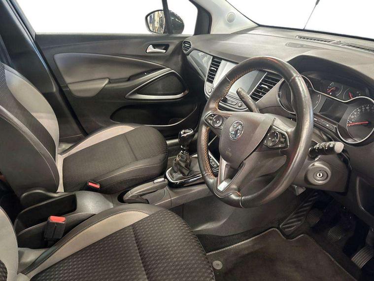 3.5" colour information display, Audible lights on warning, Cruise control + speed limiter, Digital clock, Front camera system, Lane departure warning system, Low fuel level warning light, Multi function trip computer, Nav 5.0 Intellilink sat nav system + 8" colour touchscreen+DAB radio+RDS traffic programme+2 USB+bluetooth audio streaming+Apple CarPlay/Android auto, Outside temperature display, Rev counter, Service interval indicator, Speed sensitive power steering, Traffic sign recognition, Vauxhall connect including Ecall and connected services, Voice control system, 6 speakers, Steering wheel mounted audio controls, Wi-Fi hot spot, 2 speed wipers/wash wipe/intermittent wipe, Alloy effect front and rear skid plates, Auto dimming interior mirror with anti-dazzle function, Automatic lighting control, Body colour door handles, Chrome effect bar on front grille, Chrome side window trim, Dark tinted rear windows, Door to door illumination, ecoLED daytime running lights, EcoLED headlamps, Electric front/rear windows with one touch, Electrically adjustable and heated door mirrors, Front fog lights, Hazard warning lamps, Headlamp levelling, Heated rear screen with timed cut off, Intermittent rear wash/wipe, Manually foldable door mirrors, Rain sensitive windscreen wipers, Rear fog lights, Rear spoiler, Side protection mouldings, Side window demist vents, Solar glass windscreen, Tunnel detection for auto light control, Welcome lighting, Windscreen demist vents, 12V power point front, 3 spoke leather covered steering wheel with satin chrome effect bezel, Active carbon filter, Air filter, Anti submarining front seats, Carpeted loadspace, Centre console with storage/cupholders, Chrome interior door handles, Driver's centre armrest, Driver/passenger sunvisors with illuminated vanity mirrors, Dual zone electronic climate control, Flex floor multi-level adjustable load compartment, Front door pockets with bottle holders, Front map reading lights, Front seat back storage pockets, Glovebox with lid, Height adjustable front/rear head restraints, Illuminated load area, Interior courtesy light operated by all doors, Isofix system on outer rear seats, LED ambient lighting, Luggage compartment cover, Odour filter, Passenger assist handles, Pollen filter, Reach + rake adjustable steering column, Rear door pockets with bottle holders, Rear reading lights, 3x3 point rear seatbelts, ABS, Child locks on rear doors, CSC - Cornering stability control, Deformation zones front and rear, Driver/Front Passenger airbags, EBD + Brake Assist, Energy absorbing steering column, ESP + traction control, Front and rear outer seat belt pre-tensioners, Front and rear seatbelt reminder, Front seat side impact airbags, Full size curtain airbags, Hill start assist, Passenger airbag deactivate switch, Reinforced passenger safety cell, Seatbelt load limiter, Side impact protection beams, Tyre pressure monitoring system, 2 remote folding keys, Engine immobiliser, Locking wheel nuts, Remote central deadlocking, Remote central locking + deadlocks, Remote security alarm system, Black door panels with medium grey premium leather effect inserts, Infotainment surround in piano black, Tioga grey inserts on facia and door panel, 17" Multi spoke diamond cut alloy wheels in technical grey,