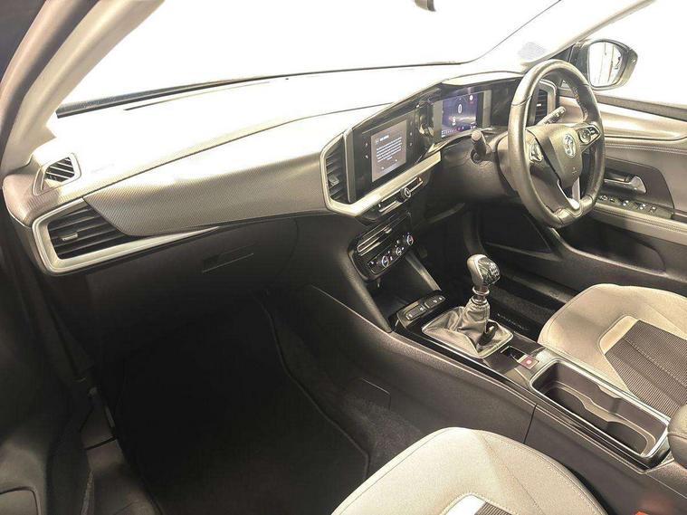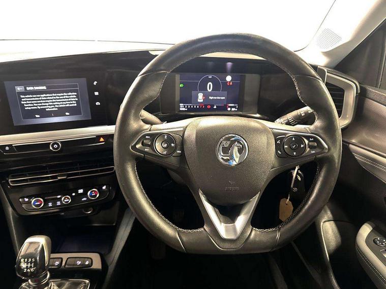 Automatic adaptive cruise control, Driver drowsiness alert system, Front camera system, Lane keep assist system (LAS) with Lane departure warning system (LDWS), Lights on audible warning, Multi function trip computer, Panoramic rear view camera, Power assisted speed sensitive steering, Rear parking distance sensors, Smartphone integration compatible with Apple CarPlay and Android Auto, Speed sign recognition, Start/stop system, Vauxhall connect with e-Call, 6 speed manual transmission, Chassis drive line front wheel drive, Electronic fuel system, Front chassis equipment, Rear chassis equipment, Standard chassis suspension system ride handling, Bluetooth A2DP audio streaming, Flexible Roof Mounted Radio Aerial, Front USB connection, Mobile phone portal - bluetooth connect, vehicle microphone, handsfree calls, SMS read out and reply, phone book access, Multimedia Navi infotainment with satellite nav, 7" colour touchscreen and instrument panel, 6 speakers, DAB digital radio, Apple carplay/Android auto, Steering wheel mounted controls, Two rear USB sockets, 3rd brake light, Adaptive brake lights, Automatic lighting control with tunnel detection, Automatically dimming anti dazzle rear view mirror, Black door mirror housings, Black rear spoiler, Body colour door handles, Body colour front and rear bumpers, Chrome effect skid plates, Chrome effect upper window moulding, Electrically adjustable and heated door mirrors, Electrically operated front and rear windows with safety auto reverse and one touch up/down facility, Hazard warning lights, Heated rear window+rear wash/wipe, High beam assist, LED daytime running lights, LED front fog lamps, LED side repeat indicators, LED tail lights, Manual headlamp level control, Rear foglight, Rear side wing doors, Rear wiper, Reversing light, Solar heat absorbing windscreen and windows, Two speed rain-sensitive windscreen wipers with variable intermittent wipe, Windscreen and side window demist vents, 12V Accessory socket, 3 seat bench in 2nd row, 3 spoke flat bottomed leather steering wheel with satin chrome bezel, 4 speed fan with illuminated controls, 6 way manual adjustable driver fore/aft, up/down with reclining seatback, 6 way manual adjustable front passenger fore/aft, up/down with reclining seatback, Air recirculation system, Cabin particulate filter - removes dust, airborne particles and pollen, Centre console with two cup holders at front and one in rear, Chrome effect interior door handles, Door pockets with two litre capacity, Driver and passenger seat pocket, Driver and passenger sun visors with vanity mirror, Electronic climate control (ECC), Fabric/leather upholstery with jet black fabric side bolsters, Four adjustable facia vents, Four load restraint lashing eyes, Front centre armrest with storage, Front map reading lights, Front seat back storage pockets, Fully carpeted load area, Heated front seats, Heated steering wheel, Height adjustable front/rear head restraints, Illuminated load area, Interior courtesy light, Interior tailgate handle, Luggage compartment cover, Luggage compartment lighting, Reach + rake adjustable steering column, Single front passenger seat, Twin gas assisted tailgate struts, 2x Isofix child seat fitting on outer rear seats, 3x3 point rear seat belts, Anti-lock braking system (ABS), Automatic emergency city braking, Child proof locks on rear doors, Cornering brake control, Deactivation switch for front passenger front and side impact airbags, Drag torque control, Driver and front passenger airbags, front seat side impact airbags, full size curtain airbags, Electronic brake force distribution, Electronic Stability Programme (ESP), Emergency brake assist, Forward collision alert at all speed, Hill start assist, Inertia reel lap and diagonal seatbelts for all seats, Seatbelt unfastened audible warning and warning light, Straight line stability control, Traction control, Tyre pressure monitoring system, Electronically protected audio equipment, Freewheeling door locks, Immobiliser, Key left in ignition audible warning, Locking wheel nuts, Remote control central locking, Visible vehicle identification number, Atlantis black trim inserts of front doors, Black facia with silver trim insert, Instrument panel bar in Light Gravel, 17" bi colour alloy wheels,