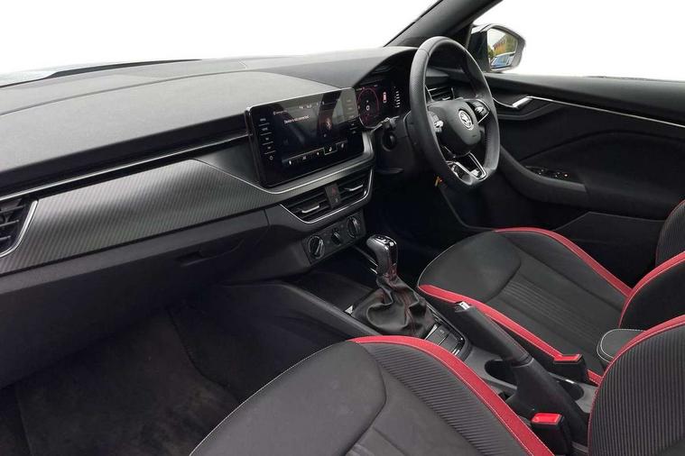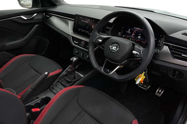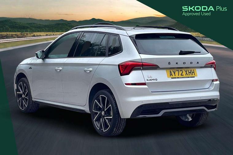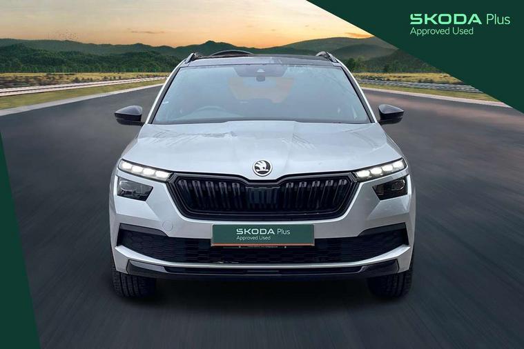Amundsen satellite navigation with 9.2" glass colour touchscreen display, voice control, virtual cockpit, web radio and traffic sign recognition, Bluetooth system, E-call, Front assist system, Gesture control, PAS, Service indicator, Speed limiter, Virtual cockpit with 10.25" display, Wireless SmartLink for apple car play, android auto and mirrorlink, 8 Speakers, Auxiliary input socket, DAB Digital radio, Black door mirrors, Black radiator grille, Black rear diffuser, Body colour bumpers, Body colour door handles, Body colour roof spoiler, Boot lettering in black, Chrome grille surround, Dimming rear view mirror with black surround, Electrically adjustable and heated door mirrors, Front and rear electric windows, Front sport bumper, Full LED headlights with adaptive front light system and front cornering fog lights, Headlight range control, Heated rear window, High functionality rear led lights with dynamic indicators, KAMIQ Door sills, LED daytime running lights, Light sensors, Monte carlo plaque, Panoramic sunroof with black roof rails, Privacy glass, Rear fog lights, Rear side wing doors, Rear wiper, 12V Accessory socket in centre console, 3 seat bench in 2nd row, Aluminium pedals, Black ceiling for black/beige interior, Black roof lining, Chrome inner door handles, Cloth upholstery, Front head restraints, Glove compartment with illumination, Ice scraper, Isofix child seat fittings on outer rear seats, ISOFIX on front passenger seat, Leather gear lever, Manual lumbar support for front seats, Rake/reach adjustable steering wheel, Reading lights, Single front passenger seat, Sports seats, Sun visors with illumination on front passenger, Textile floor mats, Third rear headrest, Top tether for front passenger seat, Umbrella in driver's door, 3x3 point rear seatbelts, Airbags - driver and front passenger, ESP, Front passenger airbag deactivation switch, Front side airbags with curtain airbags, Hill hold control, Manual parking brake, Manual rear child locks, One tone horn, Rear disc brakes, Seatbelt reminder for driver an co-driver, Traction control, Tyre pressure monitor, Anti-theft alarm system with interior monitoring, backup horn, towing protection and remote central locking with SAFE system, Anti-theft wheel bolts, Electronic engine immobilizer, Chrome air vent surrounds, 18" Vega alloy wheels in black,