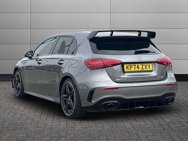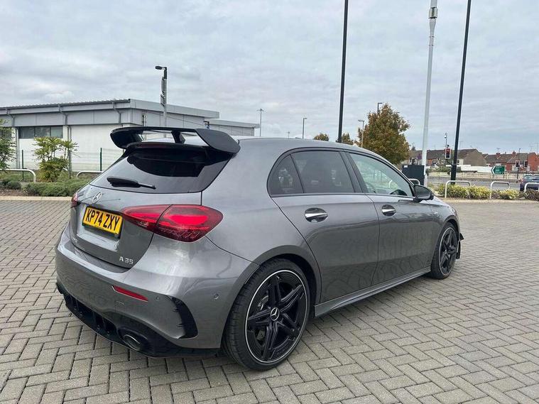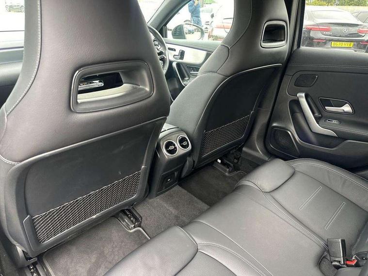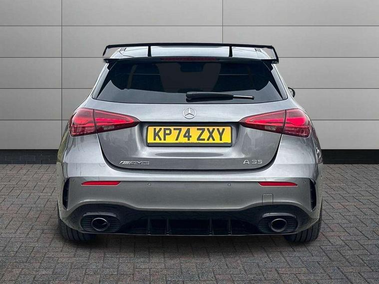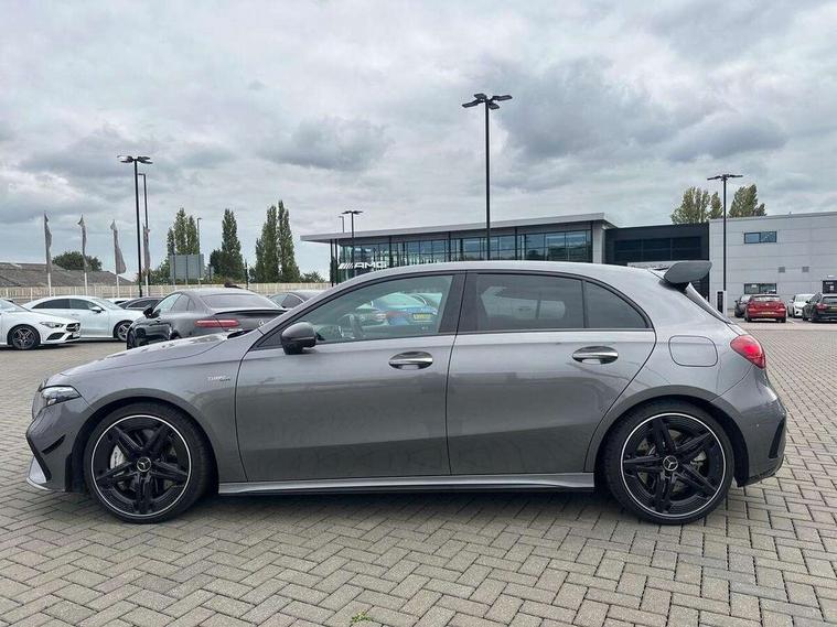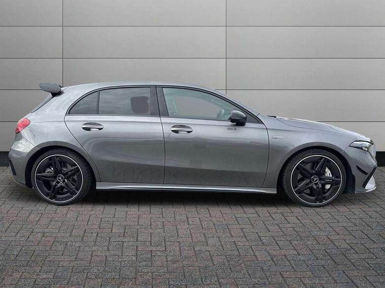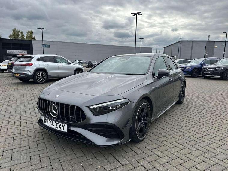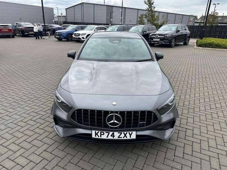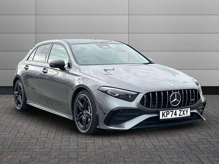 10.25 inch touchscreen central media display, 10.25" Digital instrument cluster display screen, Attention assist, Brake pad wear indicator warning light, Car wash mode, Direct steering, Direction indicators with lane change function, Dual bluetooth interfaces, DYNAMIC SELECT with driving programs (Slippery, Comfort, Sport, Sport+ and Individual), Easy pack tailgate hands-free access, ECO start/stop function, Engine start/stop button, Fingerprint scanner, Fluid level warning indicator for fuel, oil, coolant and washer fluid, Fluorescent jacket for driver, Hard-disk navigation, Head up Display, Hey Mercedes Voice activation, Lamp failure indicator, MBUX augmented reality for navigation, MBUX Interior assistant, Mercedes me connect including emergency call system, accident recovery, breakdown and maintenance management, Mercedes me remote services, Outside temperature gauge, Owners manual in English, Pre-installation of private car share, Preinstallation for Mercedes Benz link, Remote boot closing, Service indicator (ASSYST), Smartphone integration with Apple CarPlay and Android auto, Speed sensitive power steering, Tailgate, Traffic sign assist, Trip computer in multifunction display with current consumption indicator, Wireless charging, AMG suspension, Suspension with adaptive damping system, DAB Digital radio, MBUX multimedia system, Mercedes Benz advanced sound system (225 W) with 10 speakers, 1 central speaker, speakers on doors, a tweeter on door, one sub woofer + boost amplifier, 4 Electric Front and Rear windows, Adaptive brake lights, AMG body styling - AMG front apron with front splitter and AMG rear apron and visible exhaust tailpipe trim elements, AMG Front apron with flics as air deflector elements on the outer air intakes, AMG radiator grille with twin blade lamella and AMG Lettering, AMG Rear apron with specific diffuser look with four vertical fins and two round chrome plated tailpipe trim elements with a diameter of 90 mm, AMG spoiler lip on roof, Beltline strips in High gloss Black, Body colour bumpers, Body colour door handles with chrome inserts, Body colour side skirt, Electric adjustable and heated door mirrors with integrated LED side indicators, Front splitter and trim elements on the louvres in the outer air inlets, Front wings wheel arches with TURBO 4MATIC lettering, Headlamp assist automatic headlamp activation, Heat insulating dark tinted rear and rear side windows, Heated glass rear windscreen + timer control, LED daytime running lights, LED High level third brake light, LED tail lamp, Multibeam LED headlamps with adaptive highbeam assist and cornering function, Panoramic sliding sunroof, Privacy glass, Radio aerial, Rain sensing windscreen wipers with two sensitivity settings, Rear fog lights, Rear side wing doors, Rear windscreen wiper, Surround lighting with logo projection, Wider wheel arches for AMG wheels, Window line trim strip in black, 3 seat bench in 2nd row, 40:20:40 split folding rear seats, Air conditioning - Two zone thermotronic luxury automatic climate control with display, AMG floor mats, AMG Performance steering wheel in nappa leather, Automatic child seat recognition sensor, Black air vents with surround in silver chrome, Black roof lining, Brushed stainless steel sports pedals with rubber studs, Electrically adjustable front memory seats including lumbar support and backrest inclination, Front centre armrest with stowage, Front seat backs luggage nets, Height/reach adjustable steering column, Illuminated AMG front door sills with changeable cover, Interior lighting - 64 colour Ambient lighting, Interior mirror with reading lamps in black and frameless, Rear armrest with 2 cupholders, Seat occupancy sensor for front passenger seat, Silver coloured aluminium gear shift paddles on steering wheel, Single front passenger seat, Sports seats with integrated headrests, Stowage compartment in centre console with retractable cover, Sunvisors with illuminated vanity mirrors, Twin front cupholders, Aerodynamic pack - A Class, AMG night pack - A Class, Light and sight package - A Class, Mirror package - A Class, Parking pack with 360 degree camera - A Class, Seat comfort pack - A Class, USB pack plus - A Class, Winter pack - A Class, 3 rear 3 point seatbelts, ABS with Brake Assist, Active bonnet, Adaptive brake assist with hold function and hill start assist, Black seatbelts, Bonnet with power domes, Childproof locks manually operated for rear doors and electrically operated for rear power windows, Crash responsive emergency lighting, Driver and passenger head and side airbags, Drivers knee airbag, Dual stage driver/passenger airbags, Electronic parking brake, ESP curve dynamic assist, ESP with ASR, Exit warning, Front and rear seatbelt reminder, Front brake calipers with AMG lettering, ISOFIX and top tether child seat fixing points in two outer rear seats, Tyre pressure monitoring system, Warning triangle and first aid kit, Window airbags, Alarm system/interior protection/immobiliser, Guard 360 degree vehicle protection, Keyless entry lock/unlock, Keyless Go, Remote central locking and crash sensor with emergency opening function, Light longitudinal grain aluminium trim, 19" AMG 5 twin spoke light alloy wheels aerodynamically optimised painted in matt black with high sheen rim flange, Summer tyres, Tirefit sealant kit,