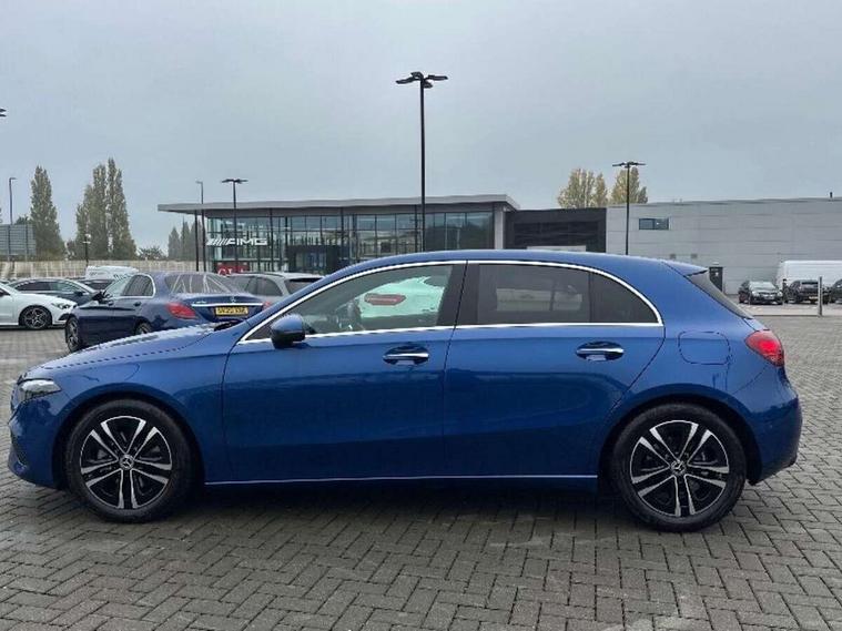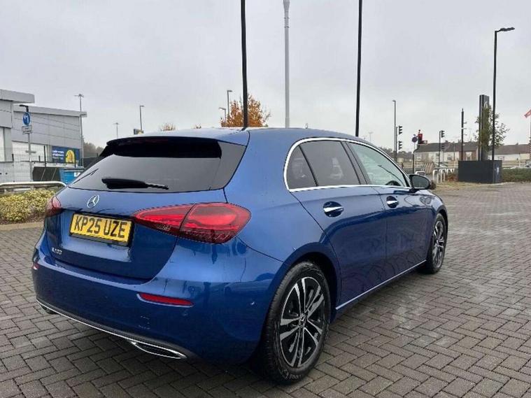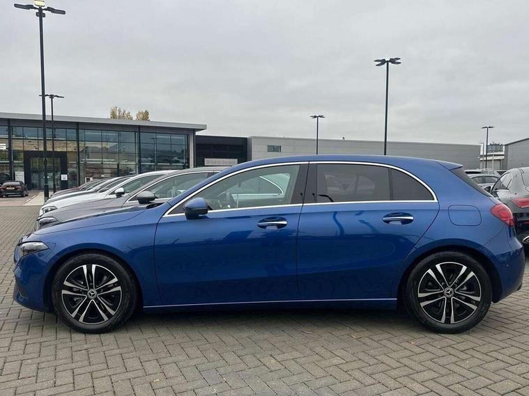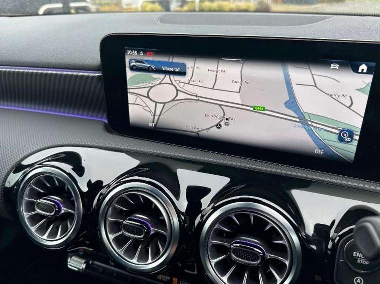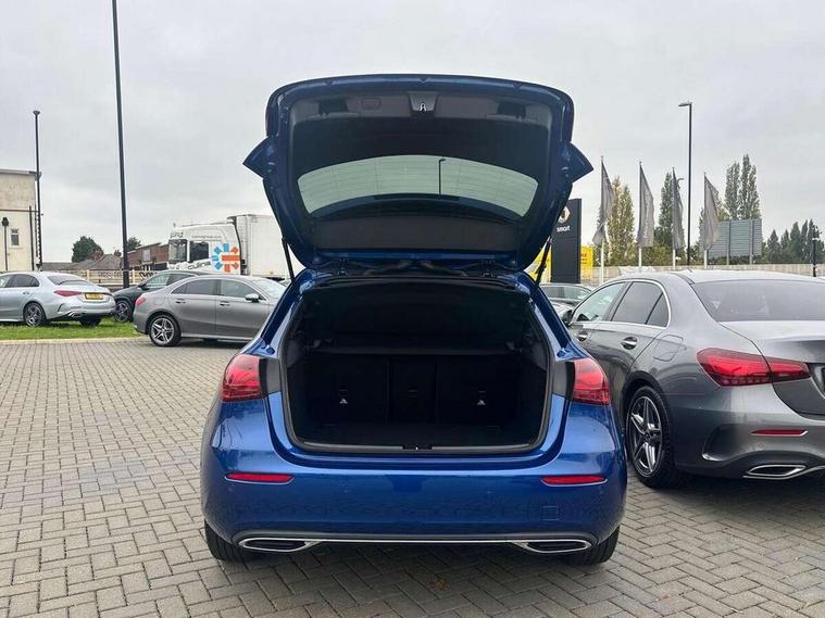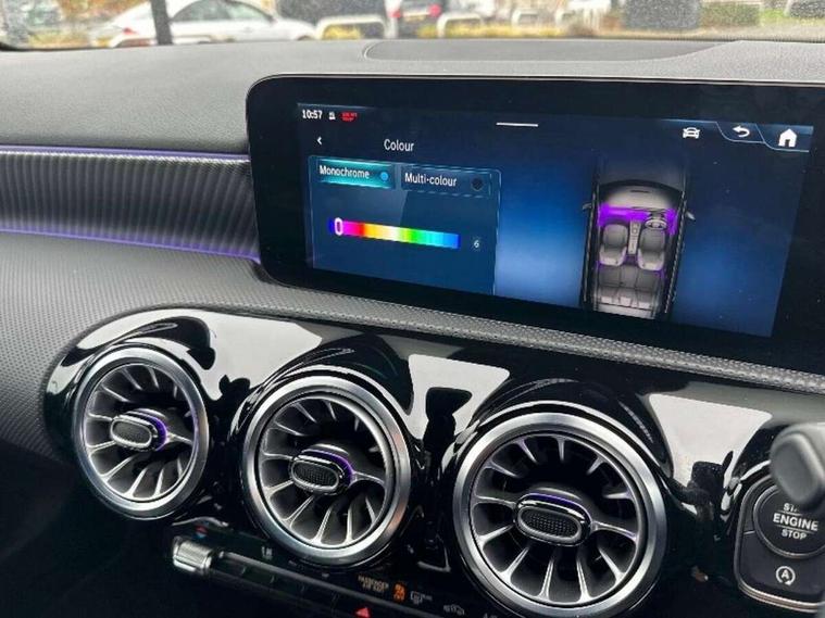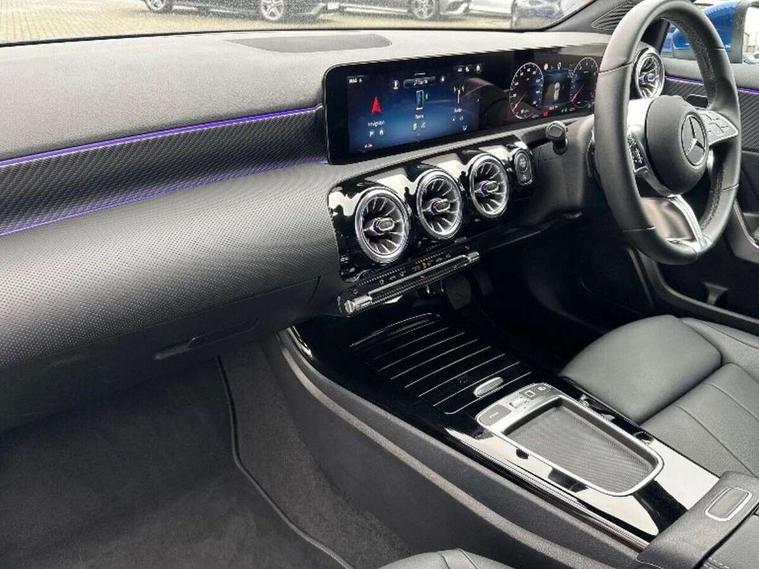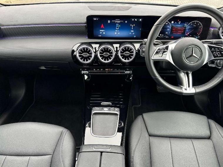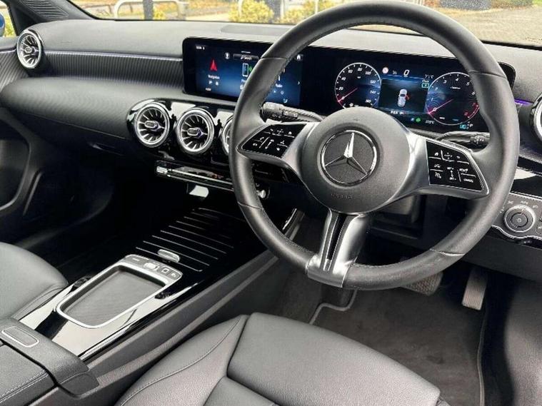 10.25 inch touchscreen central media display, 10.25" Digital instrument cluster display screen, Attention assist, Blind spot assist, Brake pad wear indicator warning light, Car wash mode, Cruise control + speed limiter, Direct steering, Direction indicators with lane change function, Dual bluetooth interfaces, DYNAMIC SELECT with a choice of driving modes (ECO, Comfort, Sport and Individual), ECO start/stop function, Engine start/stop button, Fingerprint scanner, Fluid level warning indicator for fuel, oil, coolant and washer fluid, Fluorescent jacket for driver, Hard-disk navigation, Hey Mercedes Voice activation, Lamp failure indicator, Lane keeping system, Mercedes me connect including emergency call system, accident recovery, breakdown and maintenance management, Mercedes me remote services, Outside temperature gauge, Owners manual in English, Pre-installation of private car share, Remote boot closing, Service indicator (ASSYST), Smartphone integration with Apple CarPlay and Android auto, Speed limit assist, Speed sensitive power steering, Tailgate, Trip computer in multifunction display with current consumption indicator, Wireless charging, Lowered comfort suspension, DAB Digital radio, MBUX multimedia system, Mercedes Benz sound system (100 W) with 6 speakers, 4 Electric Front and Rear windows, Adaptive brake lights, Body colour bumpers, Body colour door handles with chrome inserts, Body colour side skirt, Body coloured door mirrors, Chrome beltline strips, Diamond radiator grille with pins in fine star pattern, Electric adjustable and heated door mirrors with integrated LED side indicators, Exhaust system with 2 visible tailpipe trim elements and rear apron, Headlamp assist automatic headlamp activation, Heat insulating dark tinted rear and rear side windows, Heated glass rear windscreen + timer control, LED High level third brake light, LED High Performance headlamps including integral LED daytime running lamps and adaptive highbeam assist, LED tail lamp, Privacy glass, Radio aerial, Rain sensing windscreen wipers with two sensitivity settings, Rear fog lights, Rear side wing doors, Rear windscreen wiper, Window line trim strip in chrome, 3 seat bench in 2nd row, 3 spoke ARTICO man-made leather multifunction sports steering wheel, 4 way lumbar support, 40:20:40 split folding rear seats, Air conditioning - One zone thermatic automatic climate control with automatically controlled air distribution, Artico man-made leather upholstery, Automatic child seat recognition sensor, Black air vents with surround in silver chrome, Black roof lining, Front centre armrest with stowage, Front comfort seats with adjustable head restraints, Front door sills with Mercedes Benz lettering, Front seat backs luggage nets, Gearshift paddles on steering wheel, Heated front seats, Height/reach adjustable steering column, Interior lighting - 64 colour Ambient lighting, Interior mirror with reading lamps in black and frameless, Rear armrest with 2 cupholders, Rear head restraints, Seat occupancy sensor for front passenger seat, Single front passenger seat, Stowage compartment in centre console with retractable cover, Sunvisors with illuminated vanity mirrors, Twin front cupholders, Velour floor mats, Light and sight package - A Class, Mirror package - A Class, Parking pack with 180 degree view - A Class, Seat comfort pack - A Class, USB pack plus - A Class, 3 rear 3 point seatbelts, ABS with Brake Assist, Active bonnet, Active brake assist includes forward collision warning system with autonomous braking, Adaptive brake assist with hold function and hill start assist, Black seatbelts, Bonnet with power domes, Childproof locks manually operated for rear doors and electrically operated for rear power windows, Crash responsive emergency lighting, Driver and passenger head and side airbags, Drivers knee airbag, Dual stage driver/passenger airbags, Electronic parking brake, ESP curve dynamic assist, ESP with ASR, Front and rear seatbelt reminder, ISOFIX and top tether child seat fixing points in two outer rear seats, Tyre pressure monitoring system, Warning triangle and first aid kit, Window airbags, Alarm system/interior protection/immobiliser, Guard 360 degree vehicle protection, Keyless entry lock/unlock, Keyless Go, Remote central locking and crash sensor with emergency opening function, Dark carbon fibre interior trim, 17" 5 spoke light alloy wheels, aerodynamically optimised, painted in black with high sheen finish, Summer tyres, Tirefit sealant kit,