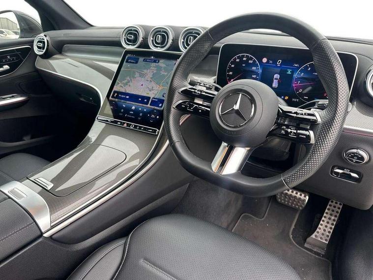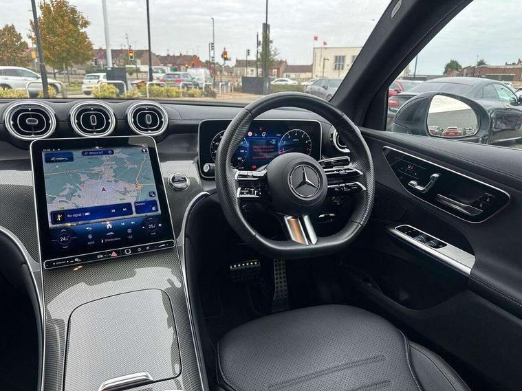 11.9" high resolution multimedia colour display, 12.3" Digital individually configurable instrument display, Acoustic presence indicator, Active lane keeping assist, Attention assist, Blind spot assist, Bluetooth interface for hands free telephone, Collision prevention assist plus, Cruise control with speedtronic variable speed limiter, Direct steer speed sensitive steering, DYNAMIC SELECT with a choice of driving modes (ECO, Comfort, Sport and Individual), Easy pack automatic powered tailgate, eCall emergency call system, ECO start/stop function, Fingerprint scanner, Fluorescent jacket for driver, Hard disc navigation, Instrument display in miles with English lettering, MBUX navigation premium, MBUX voice control activated by keywords "Hey Mercedes", Mercedes me connect, Multi function trip computer, Outside temperature display, Remote boot release, Remote services plus, Service indicator (ASSYST), Smartphone integration, Speed limit assist, Status display for rear seat belts in instrument cluster, Tailgate, Traffic sign assist, Wireless charging system for mobile devices in the front, 48V Mild hybrid technology, 4MATIC permanent four wheel drive, 62 litre fuel tank, 9G TRONIC plus automatic transmission, Petrol Particulate Filter (PPF), Sport suspension, DAB digital radio tuner, MBUX extended functions, Mercedes benz sound system, Pre installation for Mercedes Benz Link, Adaptive brake lights, Adaptive high beam assist, Aluminium look running boards with rubber studs, Aluminium roof rails, AMG bodystyling front apron, rear apron and side skirts, AMG Line exterior, Auto headlights, Body colour bumpers, Body colour door mirrors, Electrically adjustable door mirrors, Front and rear electric windows, Headlight washers, Heat insulating dark tinted glass, Heated rear window, High level LED brake light, LED high performance headlamps with integrated LED daytime running lights, LED indicator lights, LED rear fog lights, LED tail lamp, Radiator grille with Mercedes Benz pattern and integreated Mercedes star and louvre in dark grey matt with chrome inlay and black frame, Rain sensor windscreen wipers, Range adjustable headlights, Rear side wing doors, Rear wiper, Two chrome plated tailpipe trim elements, Variable front intermittent wipers, Welcome and follow-me home light functionality, Wheel arch liners in the vehicle colour, 3 seat bench in 2nd row, 4 way lumbar support, 40:20:40 split folding rear seats, Ambient lighting, AMG floor mats, AMG line interior, Artico man-made leather upholstery, Audio and onboard settings control on multifunction steering wheel, Automatic child seat recognition sensor, Black fabric roof lining, Double cup holder in centre console, Easy-pack removable load compartment cover, Electrically height/reach adjustable steering column, Front centre armrest with stowage compartment, Front head restraints, Galvanised steering wheel gearshift paddles, Heated front seats, Illuminated door sill panels with Mercedes Benz lettering, Illuminated glove compartment, Instrument panel and beltlines in ARTICO manmade leather in nappa look, Multifunction sports steering wheel in nappa leather, Partition net, Rear centre headrest, Rear head restraints, Rear top tether child seat ISOFIX attachment, Single front passenger seat, Sports pedals with stainless steel surfaces and rubber studs, Sports seats, Sun visors, THERMATIC 2 zone automatic climate control, Anti theft protection package - GLC, Boot comfort package - GLC, Exterior chrome package - GLC, Interior chrome package - GLC, Interior lighting pack - GLC, Memory pack - GLC, Mirror pack - GLC, Parking package with reversing camera - GLC, Stowage space package - GLC, USB Plus Pack - GLC, 3 rear 3 point seatbelts, Active braking assist, Anti-lock braking system (ABS), ASR traction control, Automatic front passenger airbag deactivation, Black seat belts, Brake calipers with Mercedes-Benz lettering + perforated brake discs, Braking system with larger brake discs on the front axle, Child proof door locks, Dual-stage airbags - driver and front passenger, driver knee bag and window bags for driver, front passenger and rear passengers, Electronic parking brake, Electronic stability programme (ESP) with curve dynamic assist and cross wind assist, Front and rear seatbelt reminder, Front passenger seat occupancy sensor, Front seatbelt pretensioners, Hill start assist, Tyre pressure monitoring system, Warning triangle and first aid kit, Automatic door locking, Guard 360 degree vehicle protection plus, Interior protection/immobiliser, Keyless Go starting function, Remote central locking, Metal structure trim element with centre console in metal structure finish, 19" AMG 5 spoke aerodynamically optimised light alloy wheels in painted black with high sheen finish, Summer tyres, TIREFIT with tyre inflation compressor,