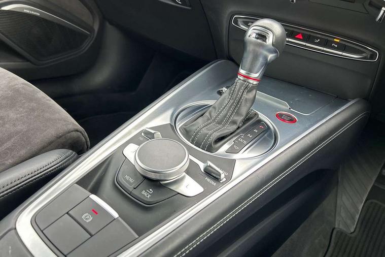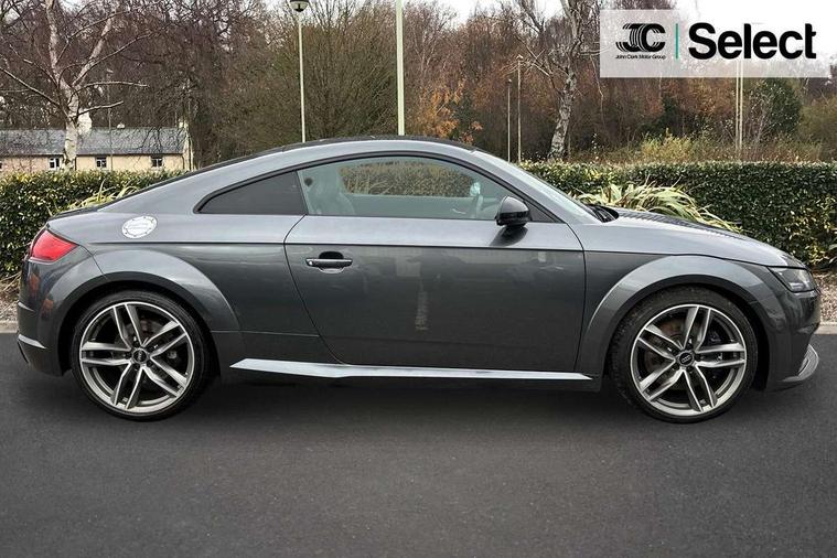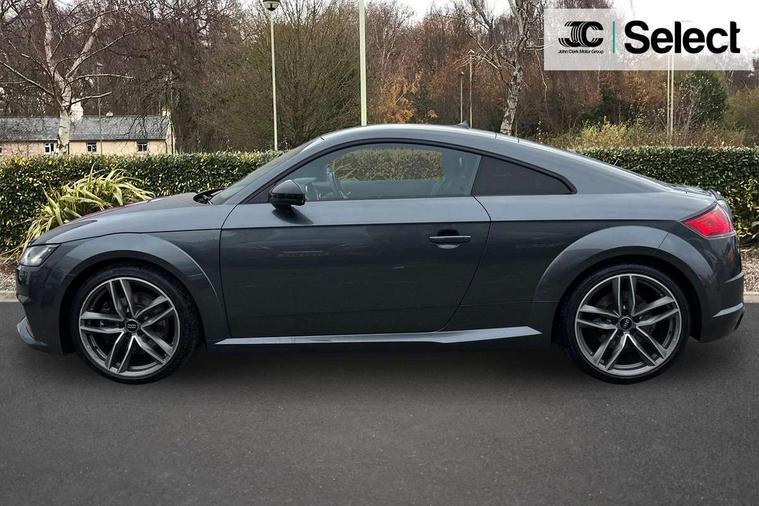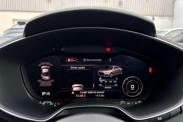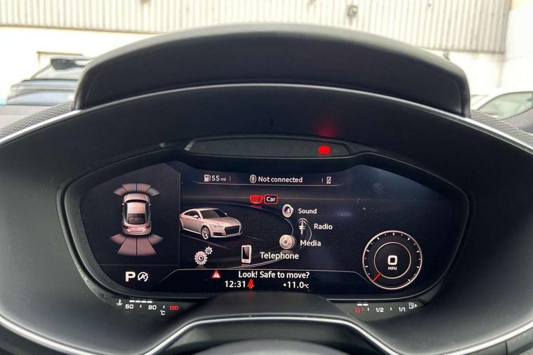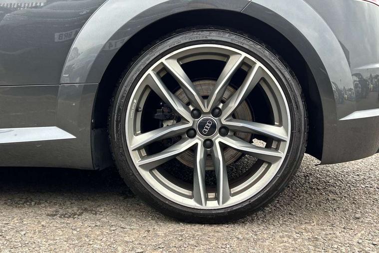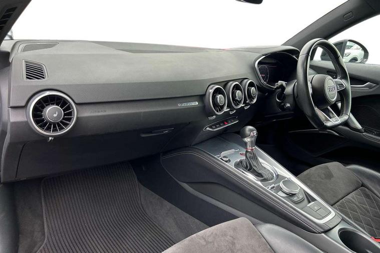 Audi active lane assist, Audi drive select, Audi virtual cockpit - 12.3" high-resolution LCD display with fully customisable instrument cluster, Cruise control + speed limiter, MMI touch panel, Mobile phone preparation with bluetooth interface, Progressive power assisted steering, Service interval indicator, Audi magnetic ride, Audi music interface, Auxiliary input socket, Bang + Olufsen advanced sound system, Bluetooth audio streaming, DAB Digital radio, MMI Radio with CD player and SD/XC card slot, Audi Beam uses LEDs to project the Audi Sport logo, Auto headlight range control, Black door mirrors, Body colour bumpers, Electric front windows, Green tinted heat insulating glass, LED daytime running lights, LED rear lights, Matt black radiator grille and number plate holder, Privacy glass, Rear diffuser, Retractable rear boot spoiler, S body styling, Sunband for windscreen, 3 spoke leather multi-function sport steering wheel including paddle shift, Aluminium door sill trims, Black headlining, Electric lumbar support, Extended aluminium look with stainless steel pedals, Front centre armrest, Front head restraints, Front passenger seat isofix location point, Heated front seats, Height/reach adjust steering wheel, ISOFIX on outer rear seats, Split folding rear seat, Top tether anchor plate for isofix child seat, Auto dimming rear view mirror with light and rain sensors pack - TT, LED interior light pack - TT/TT RS, Non smoking pack - TT/TT RS, 3 point front seat belts, ABS, ASR traction control, Curtain airbags, Driver/Front Passenger airbags, EDL traction control, Electromechanical parking brake, ESP, First aid kit, Front passenger airbag deactivation, Front side airbags, Head airbags, Seatbelt warning, Tyre pressure warning, Warning triangle, Anti theft alarm, Immobiliser, Keyless Start, Locking wheel bolts, Remote central locking, Matt brushed aluminium inlays, Tyre repair kit,