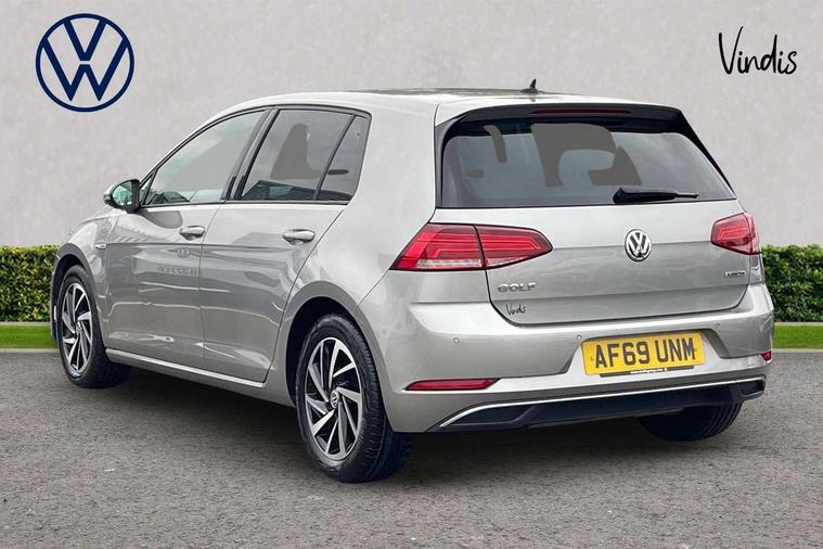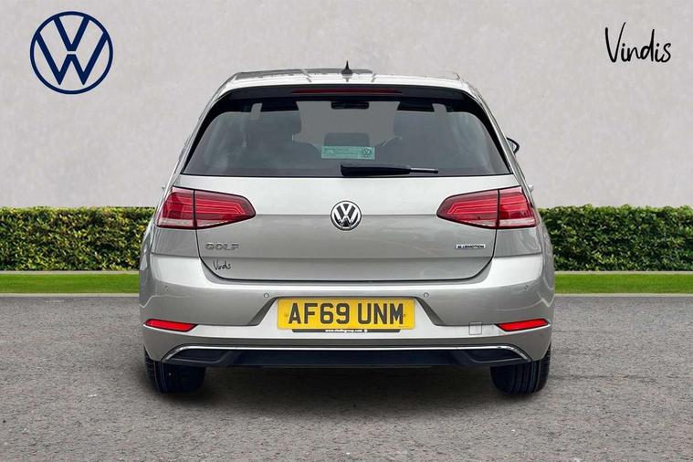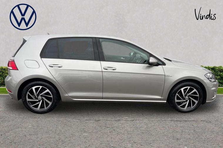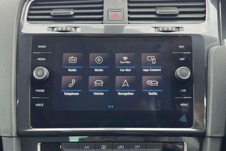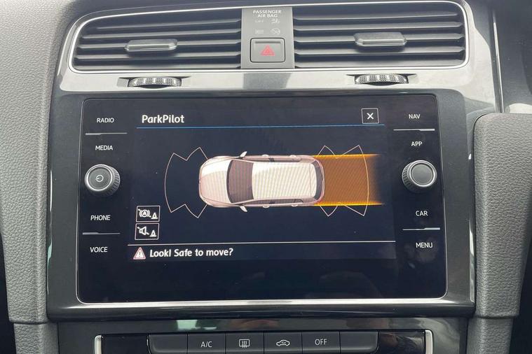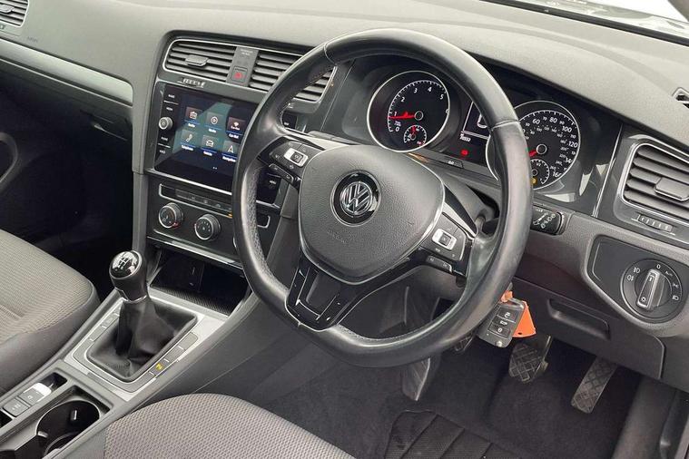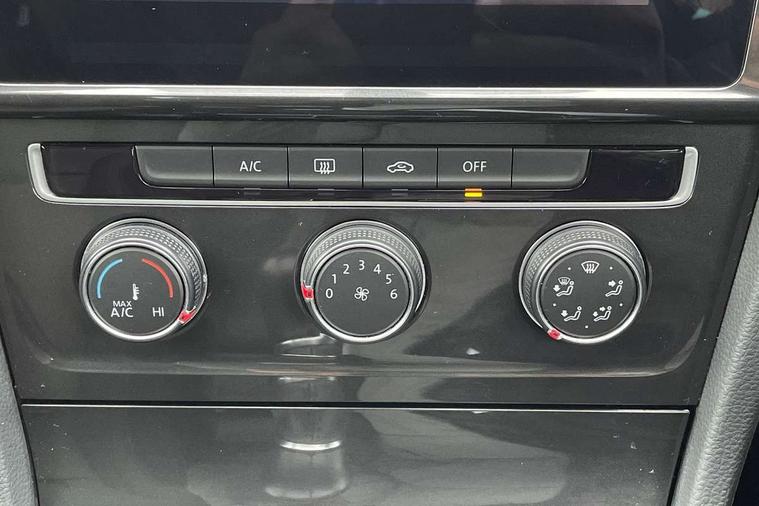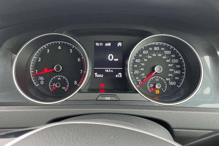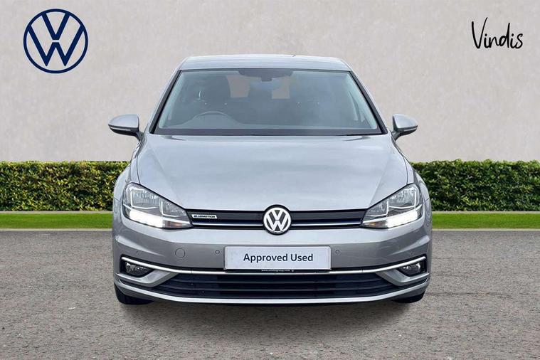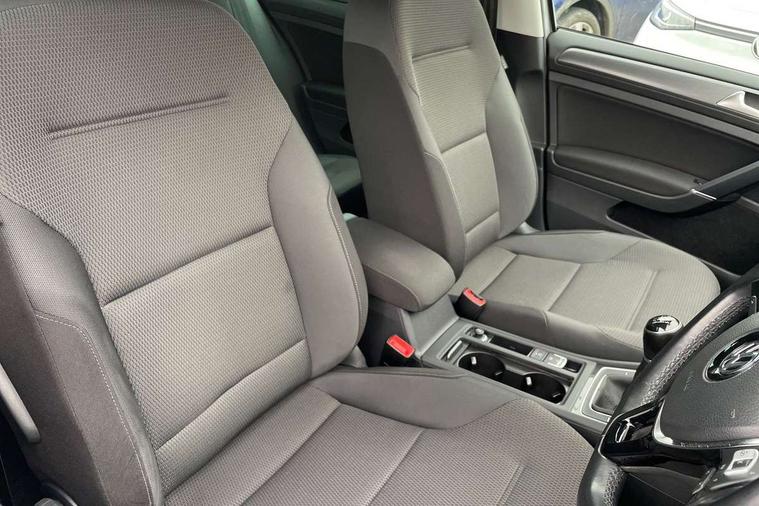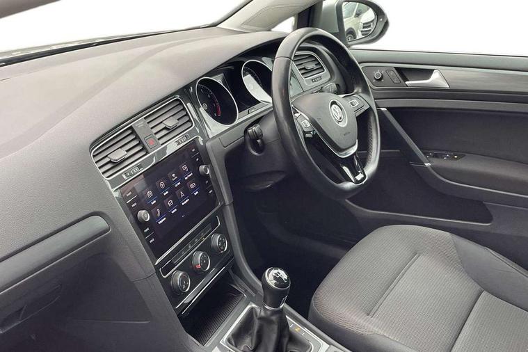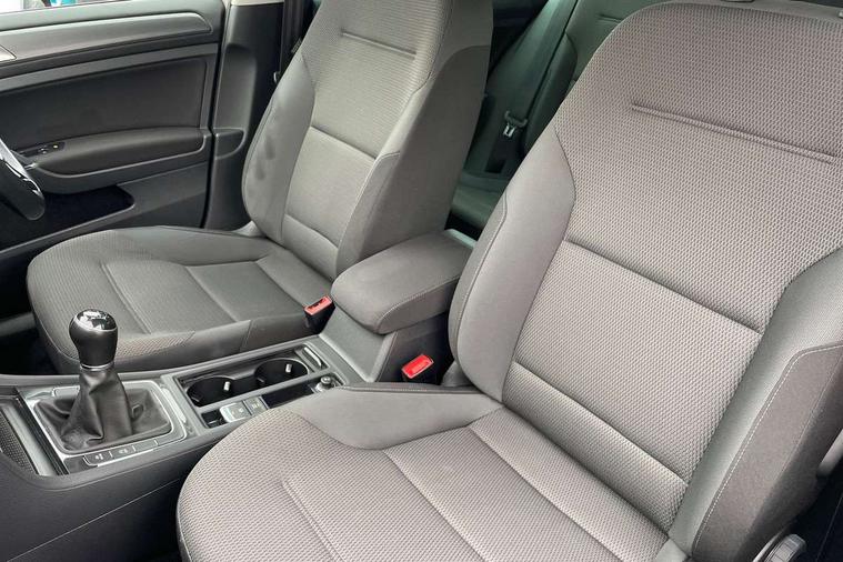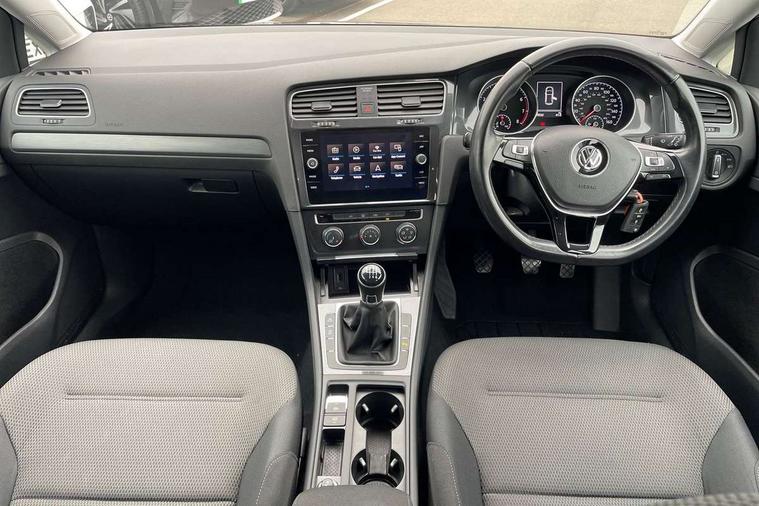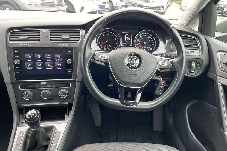 'Lights On' Reminder warning buzzer, ACC - Adaptive cruise control with front assist, forward collision warning, distance monitoring, city emergency brake and speed limiter, Bluetooth telephone and audio connection for compatible devices, Brake pad wear indicator warning light, Driver alert system, Driving Mode Selection with four preset modes - Eco, normal, sport or individual modes, Instrument cluster in white, Multifunction computer with visual gear change recommendation for fuel consumption, Power assisted speed sensitive electro-mechanical steering, Push tank flap, Speed limit display, Speedo, rev counter, electronic odometer, trip, service interval display, exterior temperature and fuel gauge, Stop/start system, Think blue trainer driver tips and journey analysis, Warning buzzer and light for front seatbelts unfastened, We Connect Go Dongle, Battery regeneration during braking, Standard suspension, XDS electronic differential lock, Composition media system, DAB Digital radio receiver, Driver Personalisation profile selection, MP3/WMA compatability, Multi device interface (MDI) with USB connection, Personalisation 1.1 profile for media, Premium USB cable in choice of either Apple or Android smartphone compatibility, SMS Functionality, Title and cover art display, 4 X 20W output, USB connection and socket, USB and SD card connectivity, Aerodynamic black radiator grille with chrome trimmed insert, Auto dimming rear view mirror, Black rear diffuser, Body colour bumpers, Body colour door handles, Body colour door mirrors with integrated indicators, Dusk sensor + automatic driving lights, Electric front windows, Electric rear windows, Electrically adjustable and heated door mirrors, Fully galvanised body, Heated rear windscreen, Hidden exhaust pipe, High level 3rd brake light incorporating LED Technology, LED front fog lights with static cornering light function, Range adjustable headlights via infotainment system with LED daytime running lights, Rear fog lamp, Rear number plate lights incorporating LED technology, Rear tinted glass 65% light absorbing from B pillar backwards, Rear window aerial, Rear window wash/wipe with intermittent wipe, Reflectors in all doors, Remote electrically foldable door mirrors, door mirror puddle lights and reverse activated kerb-view adjustment on passengers door mirror, Tailgate with integrated rear roof spoiler, Windscreen wipers/ intermittent wipe + 4 position delay, 12V socket in luggage compartment, 3 rear headrests, 4 load lashing points in luggage compartment, 60/40 split folding rear seat backrest, Auto fold down lever in rear seat backrest, Bag hook in luggage compartment x 2, Cooled glovebox, Cover for storage compartment in centre, Cupholder cover, Dust/pollen filter, Front and rear reading lights X 2, Front centre armrest with storage compartment and two rear air vents, Front seat back storage pockets, Grab handles front x 2, rear x 2 with integrated coat hooks, Height and reach adjustable steering wheel, Illuminated vanity mirrors, Instrument lighting white adjustable panel illumination, Interior light delay, Isofix preparation for 2 rear child seats, Load through provision with rear centre armrest and cupholders x2, Luggage compartment lighting, Overhead storage box, Passenger underseat drawer, Pearl grey headlining, Storage box in luggage compartment, Storage compartment in roof console with cover, Storage compartments in centre console, Storage compartments in front doors, Storage compartments in rear doors, Stowable luggage compartment cover, Sun visors, Variable boot floor, height adjustable and removable, Convenience Pack - Golf, Light and Sight pack - Golf, Mirror pack - Golf, 3 rear three point seatbelts, Airbags - Driver's and front passenger's, curtain airbag, Driver's knee, front side impact and passenger's airbag deactivation switch, Anti-lock Braking System (ABS) with Hydraulic Brake Assist (HBA), Automatic post collision braking system, Child locks on rear doors, Driver/Passenger optimised head restraints, Electronic parking brake with auto hold, Electronic stability control (ESC) including Electronic differential lock (EDL) and ASR (Traction control) with deactivation via infotainment system, Front ventilated disc brakes and rear disc brakes, Pre crash preventive occupant protection, Three point height adjustable front seatbelts with tensioners, Tyre pressure loss indicator, Alarm with interior protection and deactivation via infotainment system, Electronic engine immobiliser, Brushed dark silver decorative inserts in dash and door panels, Chrome plated air vent surround, Chrome-plated light switch surround, Polar night black decorative inserts in centre console, Steel space saver spare wheel,