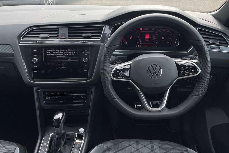 Adaptive cruise control ACC stop and go including speed limiter, App-Connect incl. App-Connect Wireless for Apple CarPlay and Android Auto, Bluetooth phone integration system, Distance control assist, Driver alert system, Driver profile selection, Dynamic road sign display, eCall emergency call system, Electromechanical speed sensitive power steering, Engine start/stop button, Lane keeping system Lane Assist, Lights on warning, Multifunction front facing camera, Outside temperature display, Premium multifunction display with multi colour display, Remote control boot opening, Rev counter, Revision / skills operating concept travel assistant, Service interval indicator, Speed limit display, Start/stop system with regenerative braking, Trip computer, Warning sound and light for doors and tailgate open, All wheel drive - 4Motion, Battery regeneration during braking, Diesel particulate filter, Misfuel prevention device for diesel engine, Selective Catalytic Reduction, XDS electronic differential lock for improved traction and handling, 4 X 20 watt output, 8 Speakers, Diversity antenna for FM reception, Radio, SD card slot, Simultaneous pairing of 2 compatible mobile devices, SMS functionality - read, compose and send SMS messages using touch-screen display, Title and cover art display, USB C ports, Auto dimming interior rear view mirror, Automatic headlight control system, Body colour door handles, Chrome moldings on the side windows, Coming/leaving home lighting function, Dynamic headlight range control, Front and rear electric windows, Heated rear window, High level 3rd brake light, Laminated safety glass windshield, heat and sound insulating, LED headlamps with LED separate daytime running light and dynamic cornering light, LED rear combination lamps, LED rear number plate lights, License plate carrier in front and rear, Poor weather light and cornering light, R Line body kit, R Line side sills, Rain sensor windscreen wipers, Rear exhaust tailpipe, Rear fog lamp, Rear side wing doors, Rear spoiler in R style, Rear windscreen washer and wiper with interval delay, Side and rear windows in heat insulating glass, Trailer Stability Programme, Unique R Line badging, Windscreen wipers/ intermittent wipe + 4 position delay, 12V outlet in center console rear and in luggage compartment, 12V outlet in front and tray, 2 cup holders in front, 2 LED front reading lights, 2 LED rear reading lights, 3 bench rear seats in 2nd row, 3 rear headrests, 4 load lashing points, 40:20:40 split folding rear seats, Air Care Climatronic 3 zone automatic climate control with enhanced air filter and controls in the rear, Backrest release for left front seat, Black headlining, Brushed stainless steel pedals and footrest, Carpet mats in front and rear with decorative stitching in Gray, Climate control unit rear with touch function, Door and side trim panel in foam film, insert in leatherette, Front centre armrest, Front footwell illumination, Front seats head restraints (x-adjustment), Height adjustable front seats, Height/reach adjust steering wheel, Instrument lighting white adjustable panel illumination, Interior light with delay, Isofix Preparation 2 Rear child seats, Leather gear knob, Lockable cooled glovebox, Luggage compartment lighting, Luggage net, Rear bench seat asymetrically split folding, longitudinally movable and folding with load-through hatch and center armrest, Remote unlocking for rear seat backrest, Removable luggage cover, Removable rear headrests, Safety optimised front head restraints, Single front passenger seat, Sliding/reclining rear seats, Standard rear seat release, Storage compartment in driver's door, Storage compartment in passenger's door, Storage compartment in rear doors, Storage compartments in luggage area left and right, Storage tray on dashboard, Sun visors with illuminated vanity mirrors, Top front comfort seats, Variable boot floor, height adjustable and removable, Driver assistance pack plus - Tiguan DSG, 3 point seat belt for centre rear seats, 3 point seat belts with seat belt pretensioners for the outer rear seats, Active bonnet, Curtain airbags for front and rear passengers, Driver/Front Passenger airbags, Drivers knee airbag, Electronic parking brake with auto hold, Electronic Stability Control with driver steering recommendation, ABS, ASR, EDL, EDTC and trailer stabilization, Front assist with autonomous emergency braking (for Adaptive Cruise Control ACC up to 130 mph), Front disc brakes, Front passenger airbag deactivation, Front side airbags, Height adjustable front 3 point seatbelts + pretensioners, Hill hold control, Manual child proof rear door locks, Pedestrian monitoring system, Power assisted brakes, Proactive passenger protection system in combination with front assist, Rear disc brakes, Rigid safety cell with front and rear crumple zones, Two tone horn, Warning sound and light for front seat belts if unfastened, Anti theft alarm system with interior monitoring, backup horn and towing protection, Anti theft wheel bolts, Electronic engine immobiliser, Tool kit,