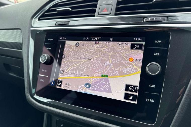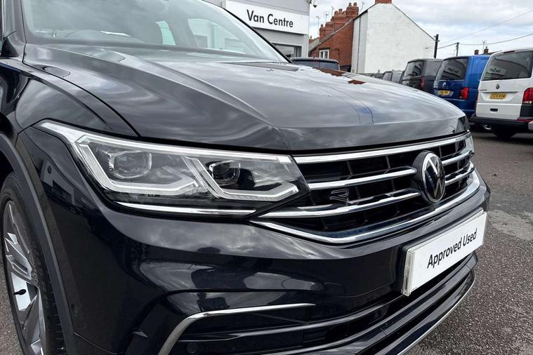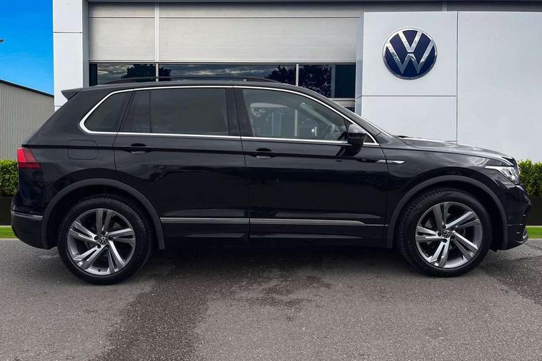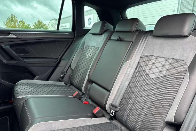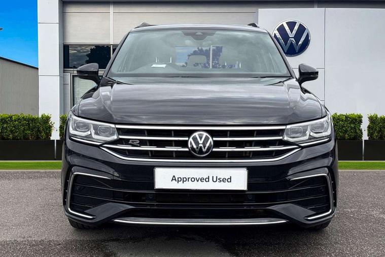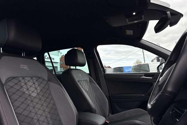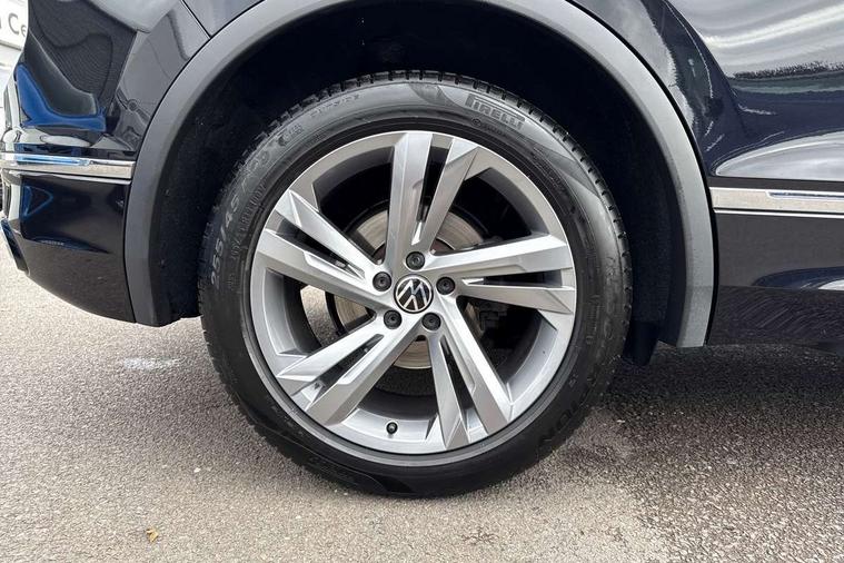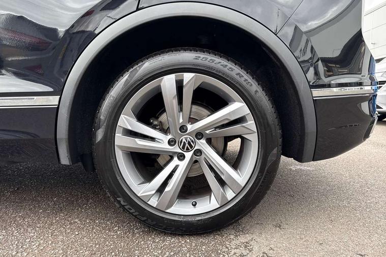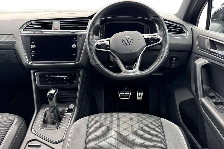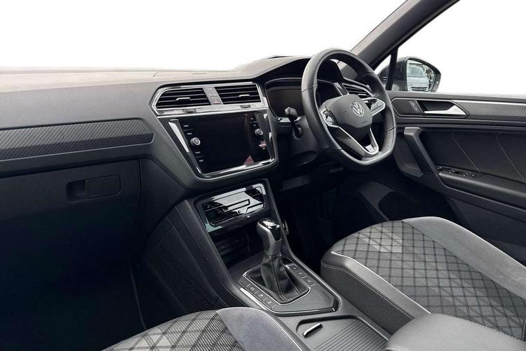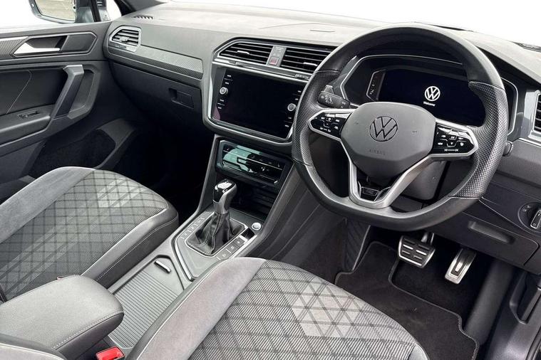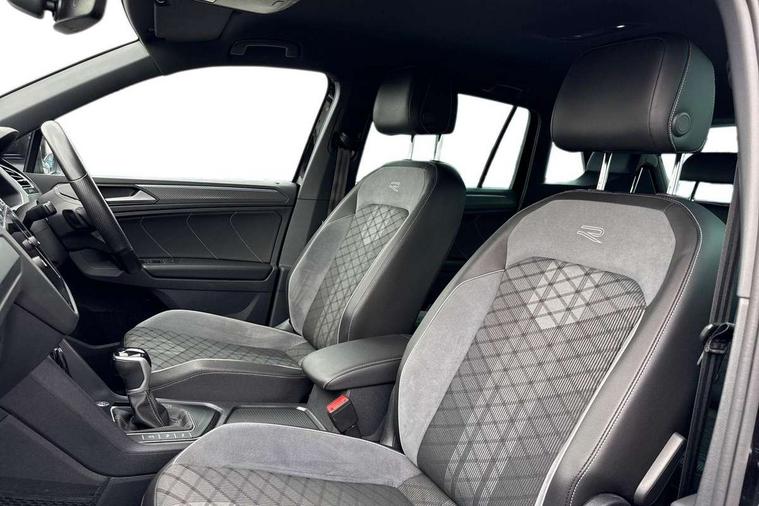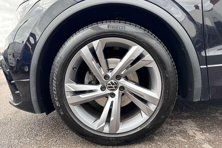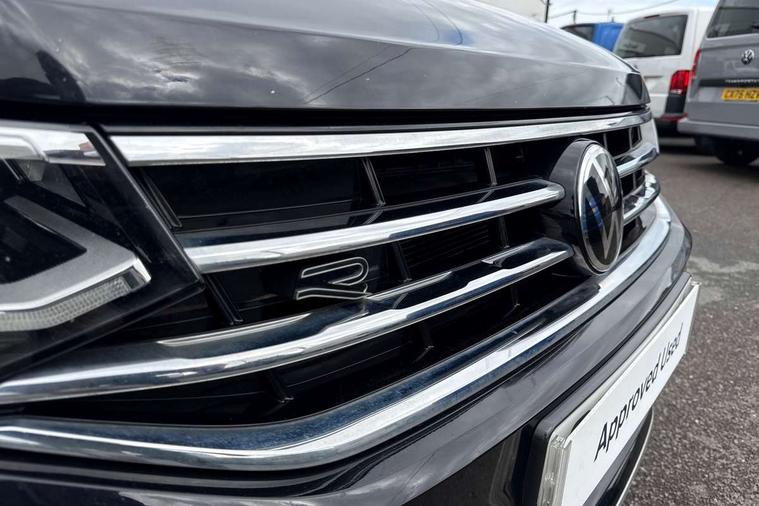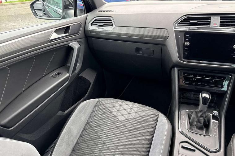 Adaptive cruise control ACC stop and go including speed limiter, App-Connect incl. App-Connect Wireless for Apple CarPlay and Android Auto, Bluetooth phone integration system, Comfort drive travel assist, Digital cockpit pro, Driver alert system, Driver profile selection, Dynamic road sign display, eCall emergency call system, Electromechanical speed sensitive power steering, Emergency assist, Front and rear parking distance sensors, Instrument cluster mph speedometer Great Britain, Lane keeping system Lane Assist, Lights on warning, Multifunction front facing camera, Outside temperature display, Premium multifunction display with multi colour display, Preparation for subsequent activation Navigation feature Discover Media includes Streaming and Internet, Remote control boot opening, Rev counter, Service interval indicator, Speed limit display, Start/stop system with regenerative braking, Tailgate/trunk lid unlocking from outside, Trip computer, Warning sound and light for doors and tailgate open, Battery regeneration during braking, Sports suspension, 8 Speakers, Digital radio reception DAB+, Diversity antenna for FM reception, Radio, Auto dimming interior rear view mirror, Automatic headlight control system, Body colored bumpers in R-Line style, Body colored exterior mirror housings, Body colour door handles, Chrome moldings on the side windows, Coming/leaving home lighting function, Dynamic headlight range control, Front and rear electric windows, Heated rear window, High level 3rd brake light, Laminated safety glass windshield, heat and sound insulating, LED headlamps with LED separate daytime running light and dynamic cornering light, LED rear combination lamps, LED rear number plate lights, License plate carrier in front and rear, Poor weather light and cornering light, Power adjustable, folding and heated door mirrors with surround lighting, front passenger exterior mirror lowering function, Privacy glass for rear side windows and rear window, R Line body kit, R Line side sills, Rain sensor, Rear exhaust tailpipe, Rear fog lamp, Rear side wing doors, Rear spoiler in R style, Rear windscreen washer and wiper with interval delay, Side and rear windows in heat insulating glass, Trailer Stability Programme, Unique R Line badging, Windscreen wipers/ intermittent wipe + 4 position delay, 12V outlet in center console rear and in luggage compartment, 12V outlet in front and tray, 2 LED front reading lights, 2 LED rear reading lights, 3 bench rear seats in 2nd row, 3 rear headrests, Air Care Climatronic 3 zone automatic climate control with enhanced air filter and controls in the rear, Art Velours greyson sports cloth upholstery, Backrest release for left front seat, Black headlining, Brushed stainless steel pedals and footrest, Carpet mats in front and rear with decorative stitching in Gray, Climate control unit rear with touch function, Door and side trim panel in foam film, insert in leatherette, Driver + front passenger lumbar support, Front footwell illumination, Front scuff plates in aluminum with R-Line logo, Front seats head restraints (x-adjustment), Height adjustable front seats, Height/reach adjust steering wheel, Isofix Preparation 2 Rear child seats, Leather gear knob, Rear bench seat asymetrically split folding, longitudinally movable and folding with load-through hatch and center armrest, Remote unlocking for rear seat backrest, Single front passenger seat, Sun visors with illuminated vanity mirrors, Top front comfort seats, Winter pack - Tiguan, 3 point seat belt for centre rear seats, 3 point seat belts with seat belt pretensioners for the outer rear seats, Curtain airbags for front and rear passengers, Driver/Front Passenger airbags, Drivers knee airbag, Electronic parking brake with auto hold, Electronic Stability Control with driver steering recommendation, ABS, ASR, EDL, EDTC and trailer stabilization, Front assist with autonomous emergency braking (for Adaptive Cruise Control ACC up to 130 mph), Front disc brakes, Front passenger airbag deactivation, Front side airbags, Height adjustable front 3 point seatbelts + pretensioners, Manual child proof rear door locks, Pedestrian monitoring system, Proactive passenger protection system in combination with front assist, Rear disc brakes, Two tone horn, Tyre pressure loss indicator, Warning sound and light for front seat belts if unfastened, Warning triangle, Anti theft alarm system with interior monitoring, backup horn and towing protection, Anti theft wheel bolts, Electronic engine immobiliser, Keyless locking and starting system keyless access with safelock, Chrome elements on the mirror switch power window switches and door pulls, Decorative inserts Carbon Gray for dashboard and front door trim panels, Interior door handle in matte chrome, 19" Valencia alloy wheels with AirStop tyres, Tool kit, Tyre mobility kit Includes 12V compressor and tyre sealant,